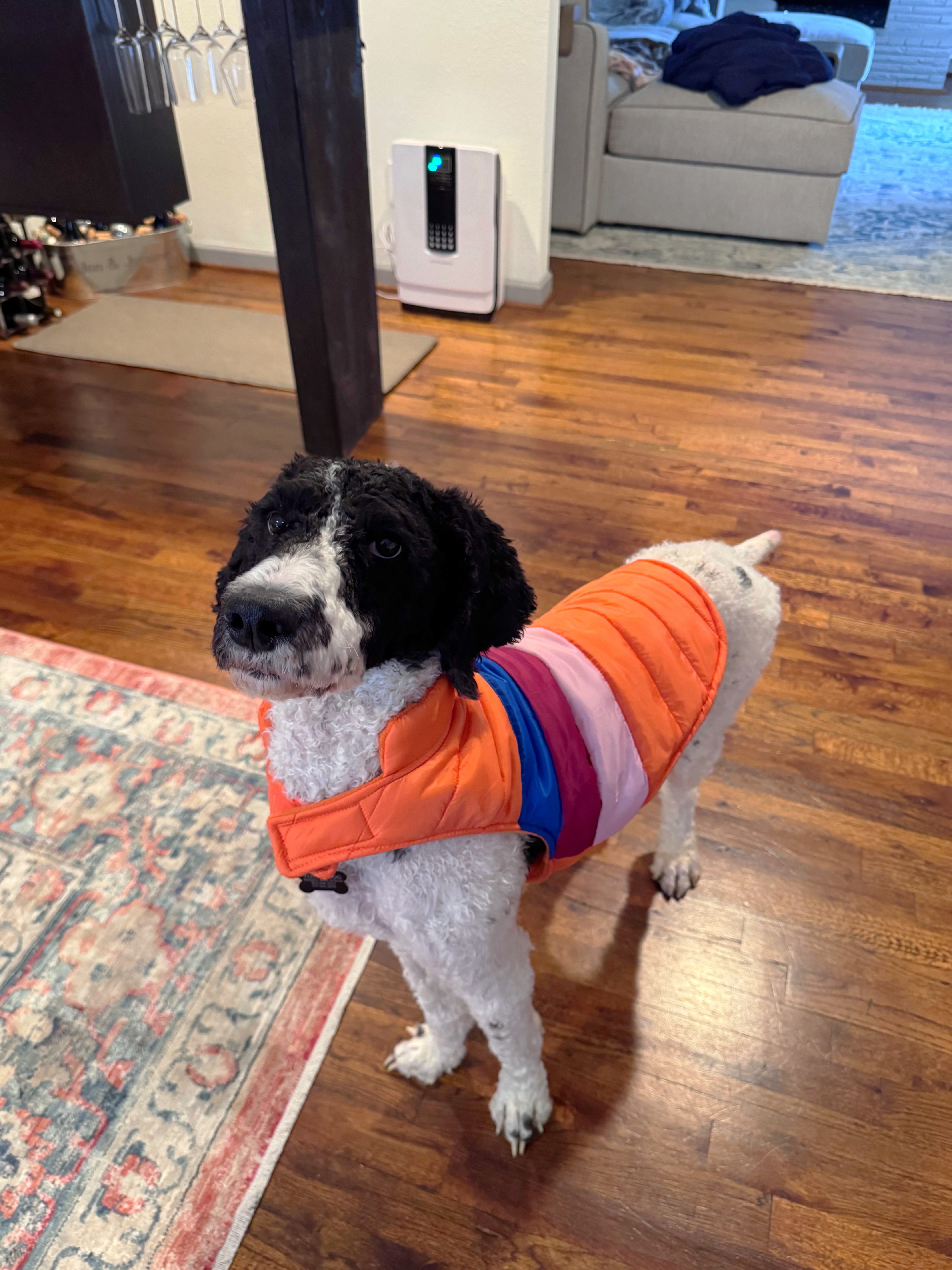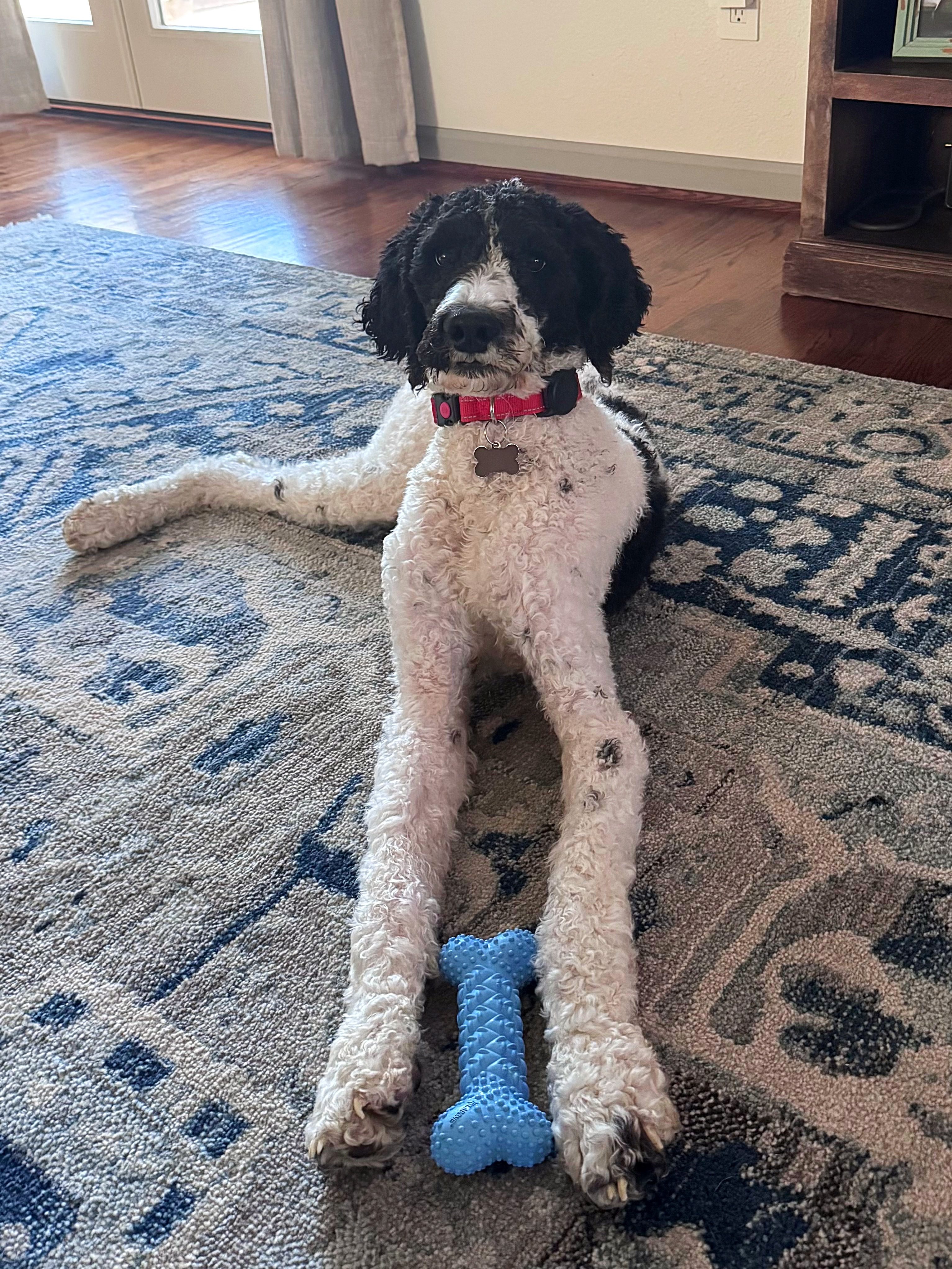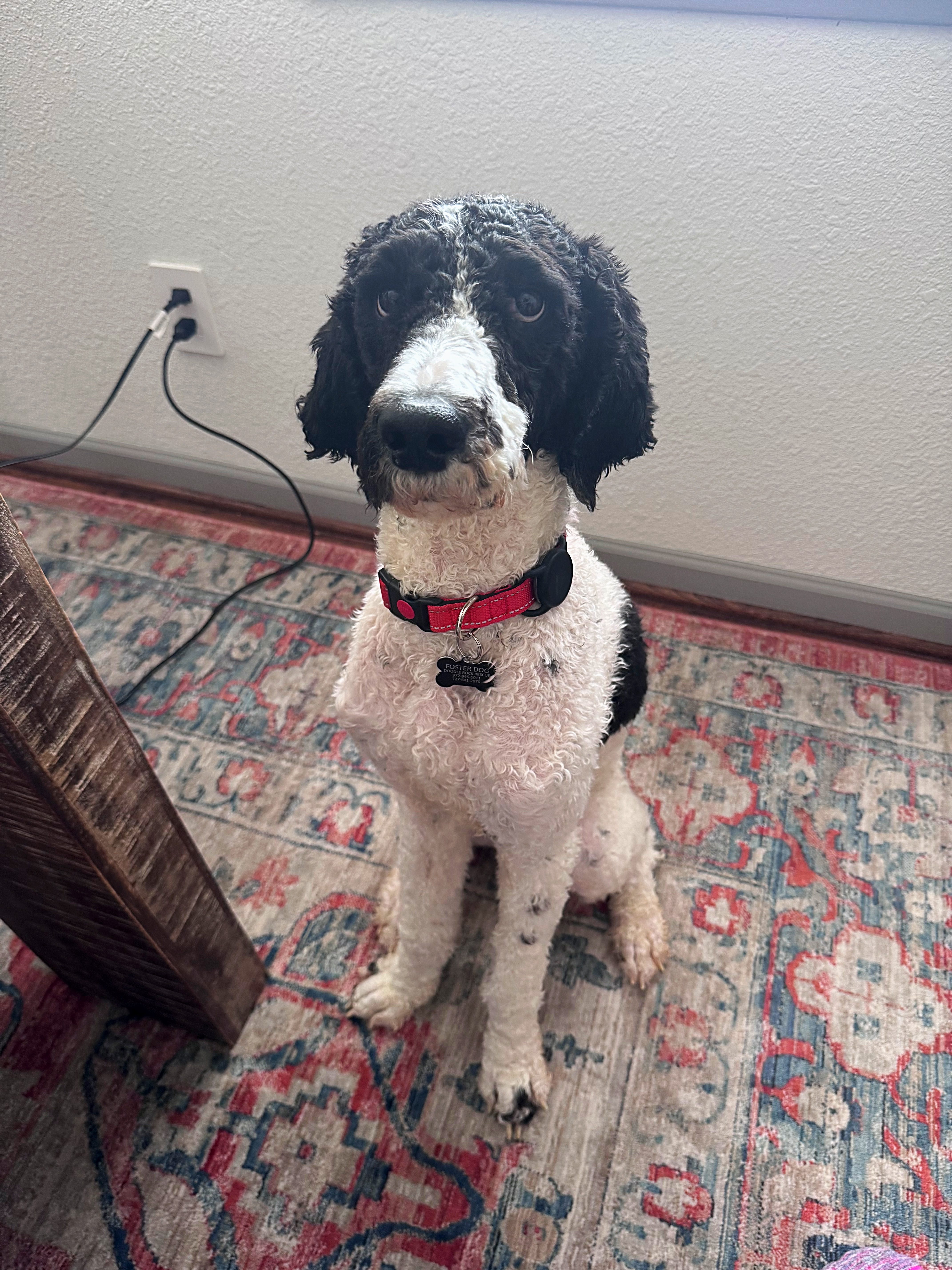 Hi, I’m Kairo — a 40-pound poodle with long legs, soft black and white curls, and a heart that just wants to be close to my people. I’m about two years old and still working my way back to a healthy weight, but I’m already feeling so much better and loving life. I’ve never met a stranger, human or dog, and I’m always ready for whatever the day brings. Walks where I can sniff everything, car rides, a good game of fetch with a few zoomies, or just being by your side… that’s my kind of life.