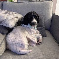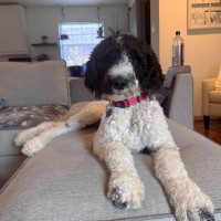 I’m also a very loyal and sensitive boy. I bond deeply with my people and feel safest when I’m close to them. Because of that, being left alone can make me anxious, and I may bark to let you know I’m not a fan of it. I’m looking for a home that truly understands that about me and can help me continue building confidence. I would do best with a work from home parent so I’m not alone for long periods, and having a confident dog sibling is strongly preferred to help me feel secure and show me the ropes. I’m not a good fit for apartment living or homes with shared walls since I can be vocal when I’m unsure or alone. I’ll also need a family who is patient and committed to continued training as I keep learning that I’m safe and my people always come back. And as a poodle, regular grooming is part of my routine to keep me looking and feeling my best.