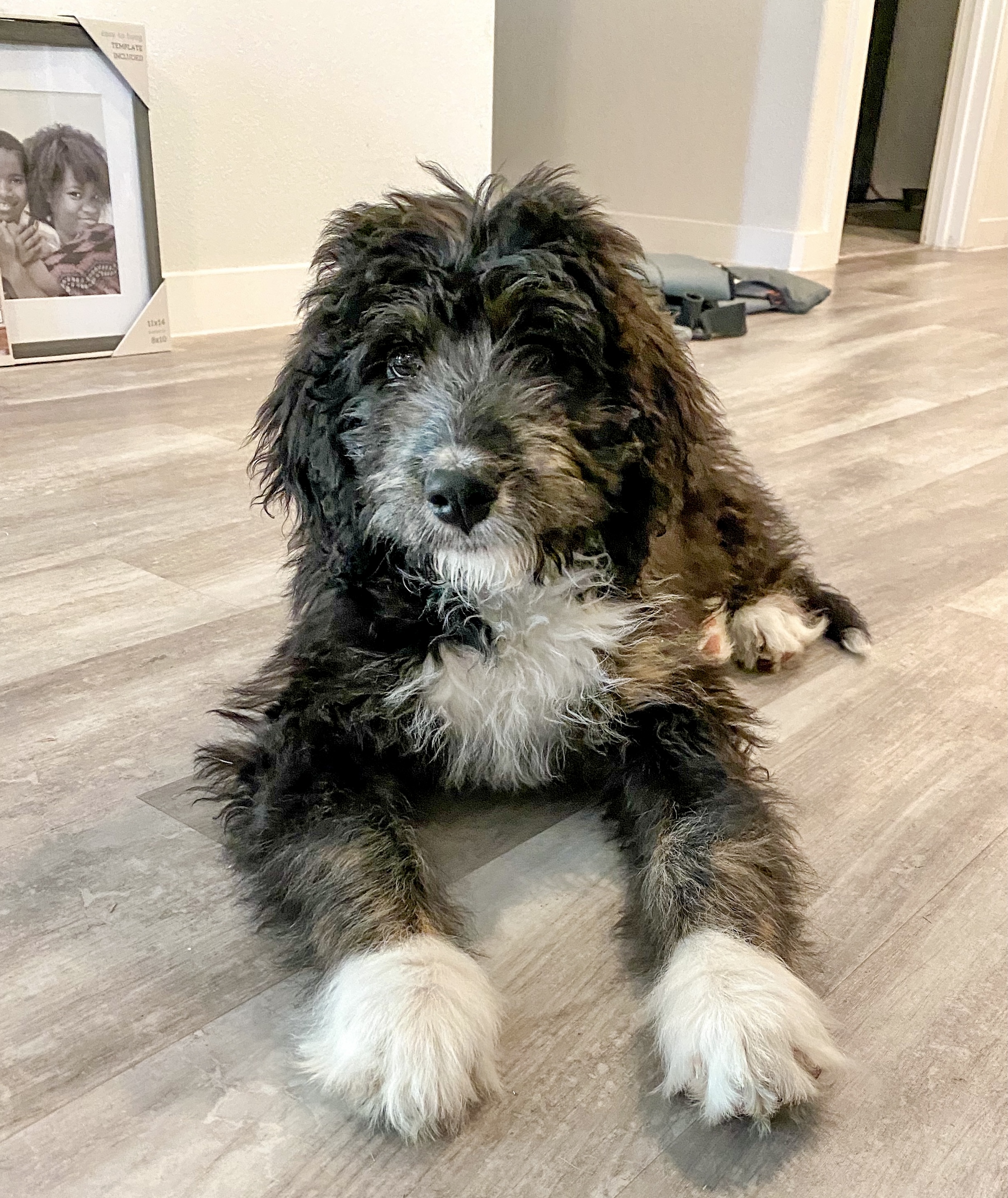 Hi! My name is Keelee and I’m a 6-month-old female Bernadoodle who's full of puppy energy! I currently weigh 35 lbs and counting - I'm a growing girl! I shed quite a bit, so if you’re prone to allergies I’m not the girl for you!