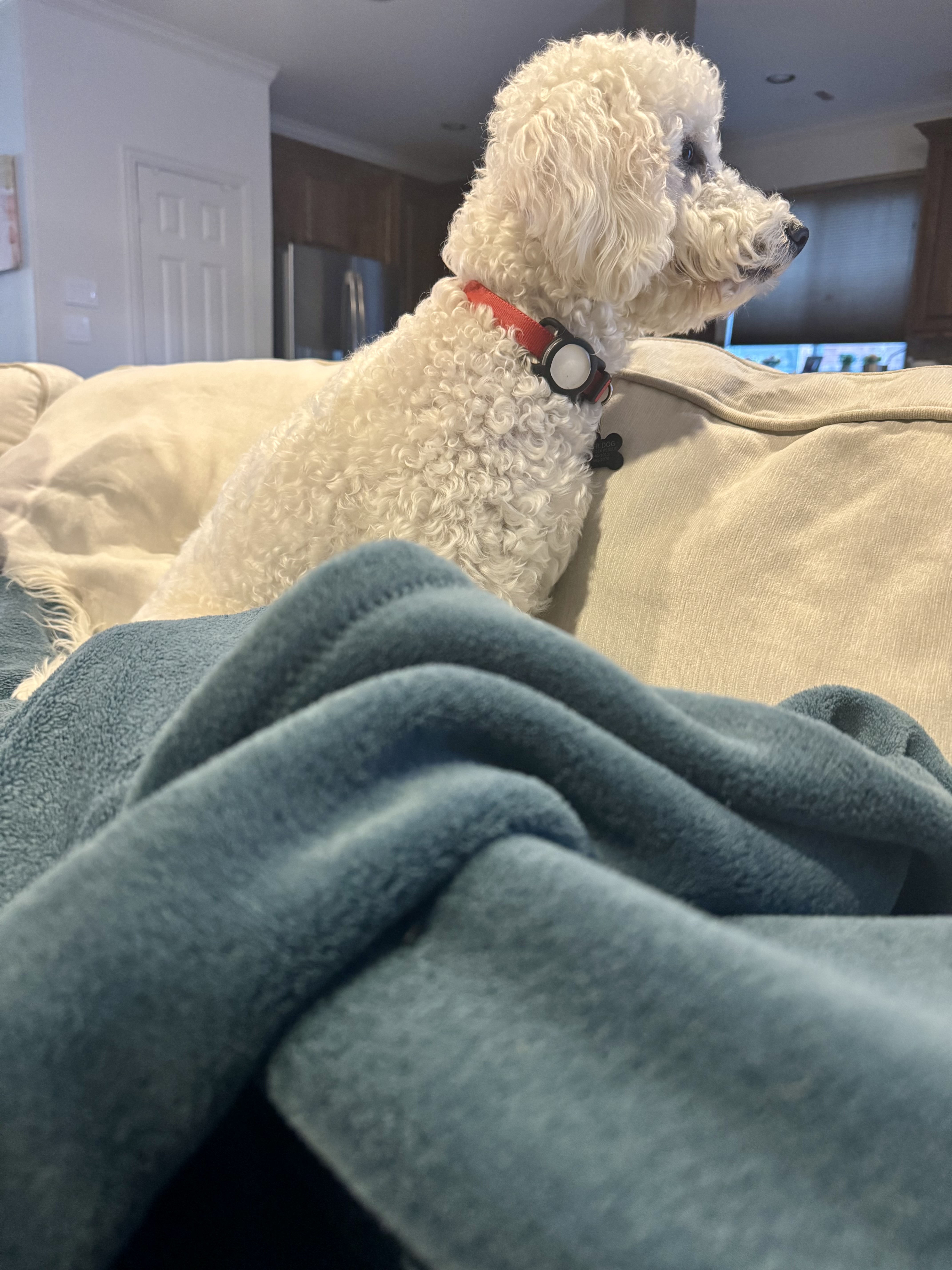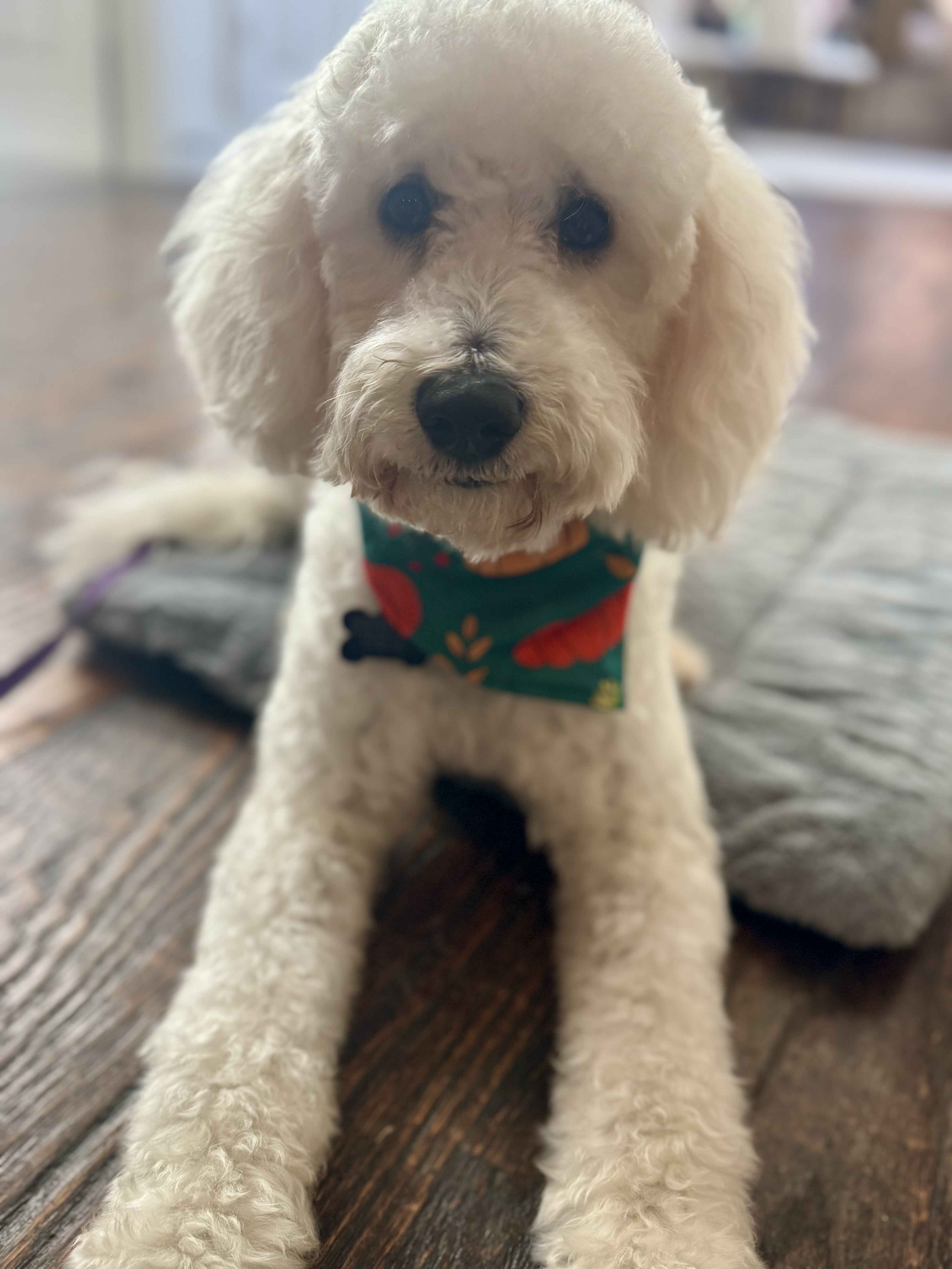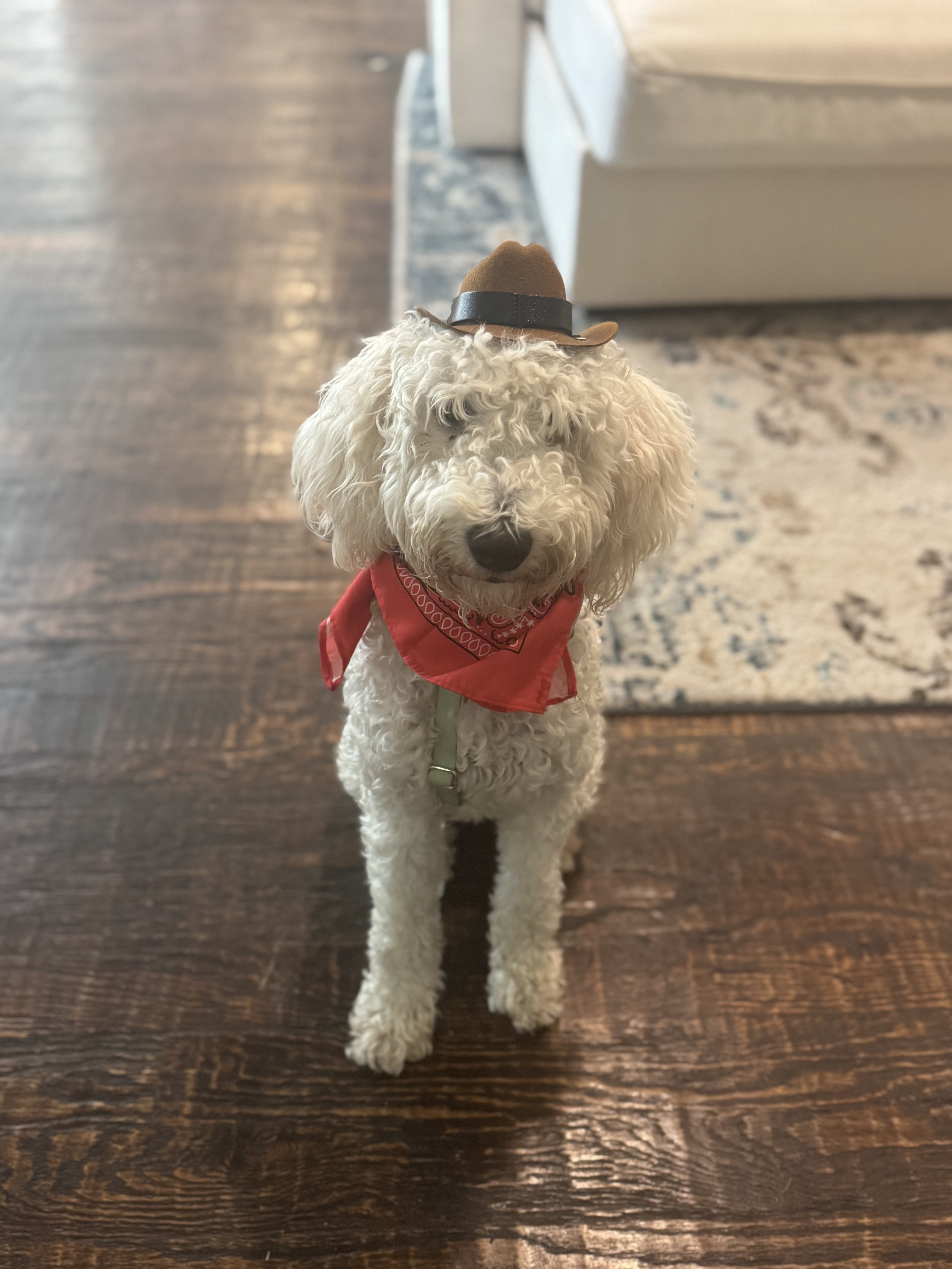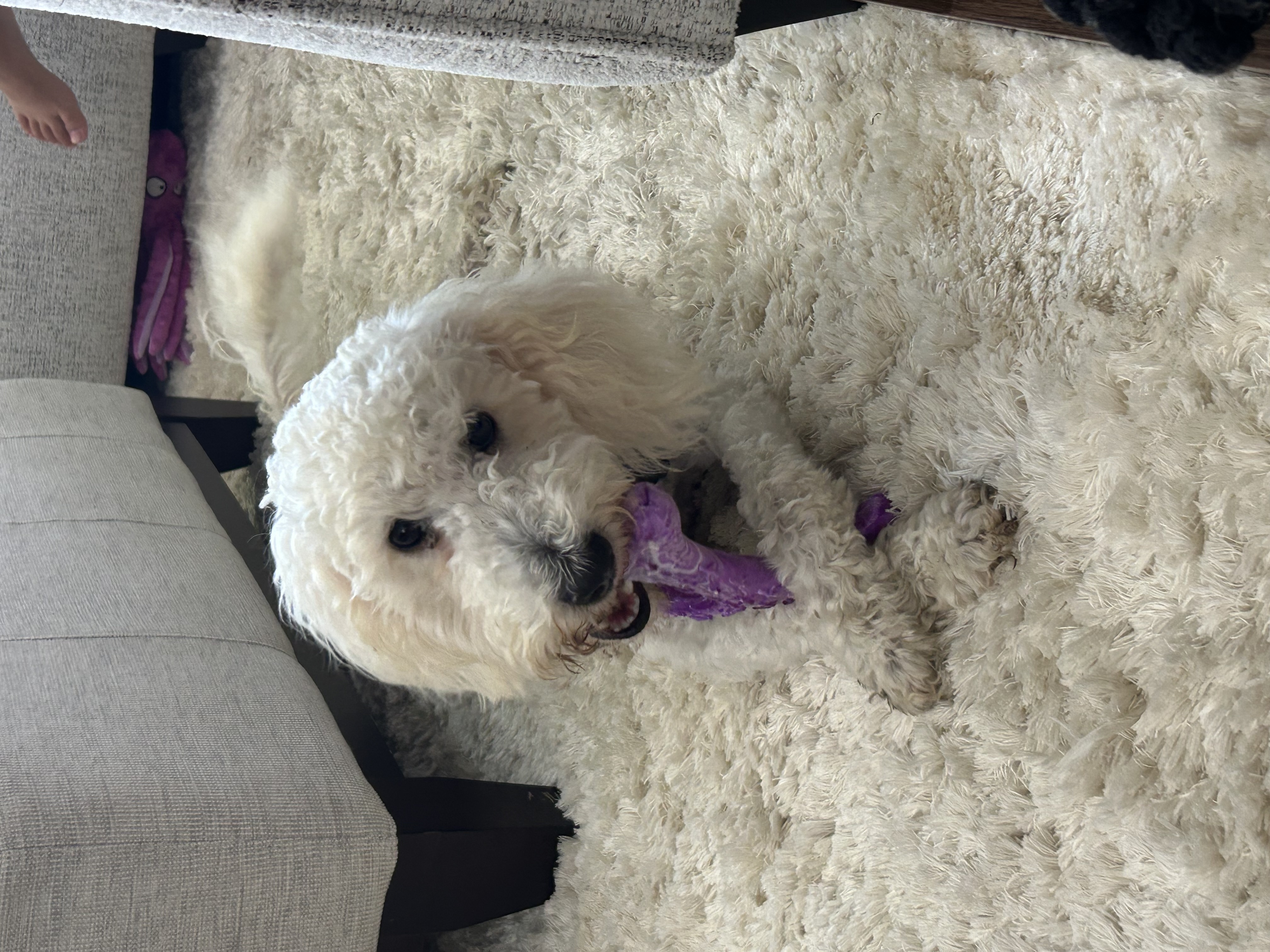 Hi, I’m Kerry, a 10-month-old, 20-pound poodle with main-character energy and a full-time zest for life. My foster dad swears you can’t have a bad day with me around, and I take that job seriously. I greet everyone like they’ve been gone for ages, and I trot through life with my signature mix of butt wiggles and head shuffles.