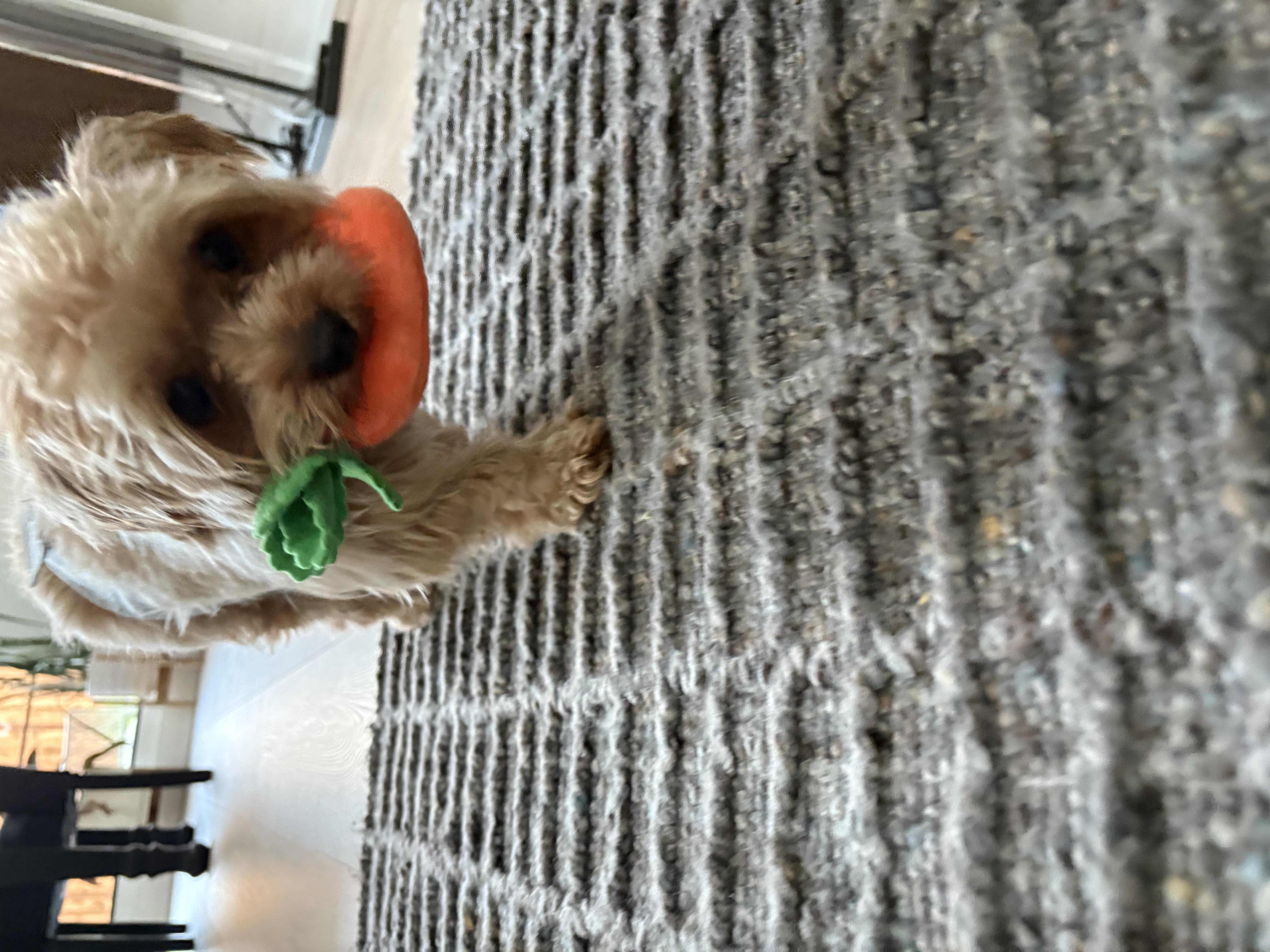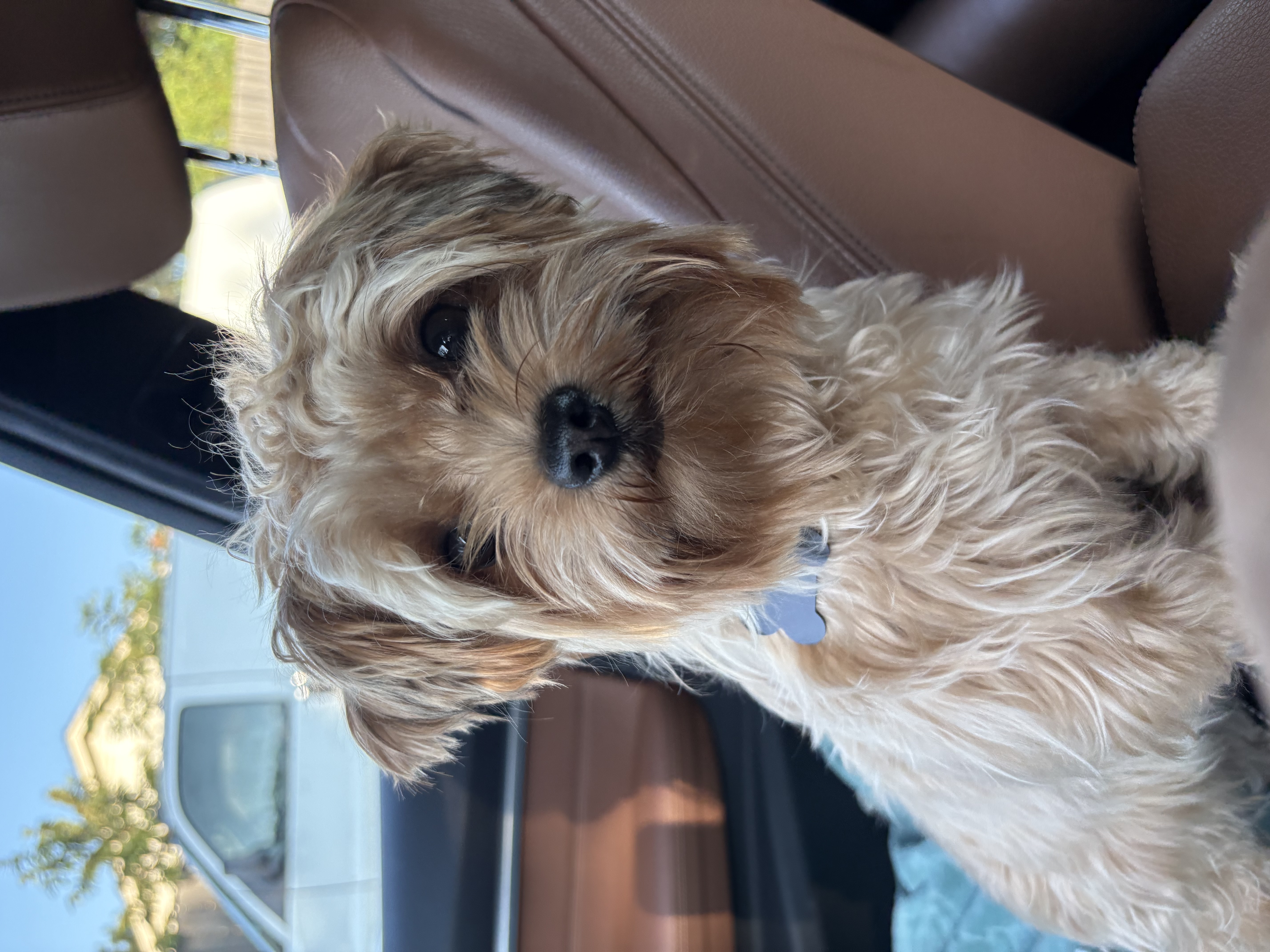 Hi there! I’m a tiny 6-pound bundle of joy—an adorable one-year-old adoradoodle (at least that’s the best guess!).