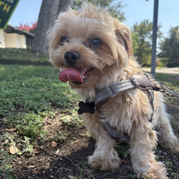I’m a happy little guy who’s always wagging my tail, ready to share love and get attention from anyone willing to give it. I adore being around people and enjoy playing with other dogs, too. My foster mom says I’m like her little shadow because I follow her everywhere she goes. I have a funny way of “talking” with soft squeaks and grumbles—she even calls me part Gremlin! I love to carry things in my mouth, like socks or stuffed toys, but I’m very gentle with them.