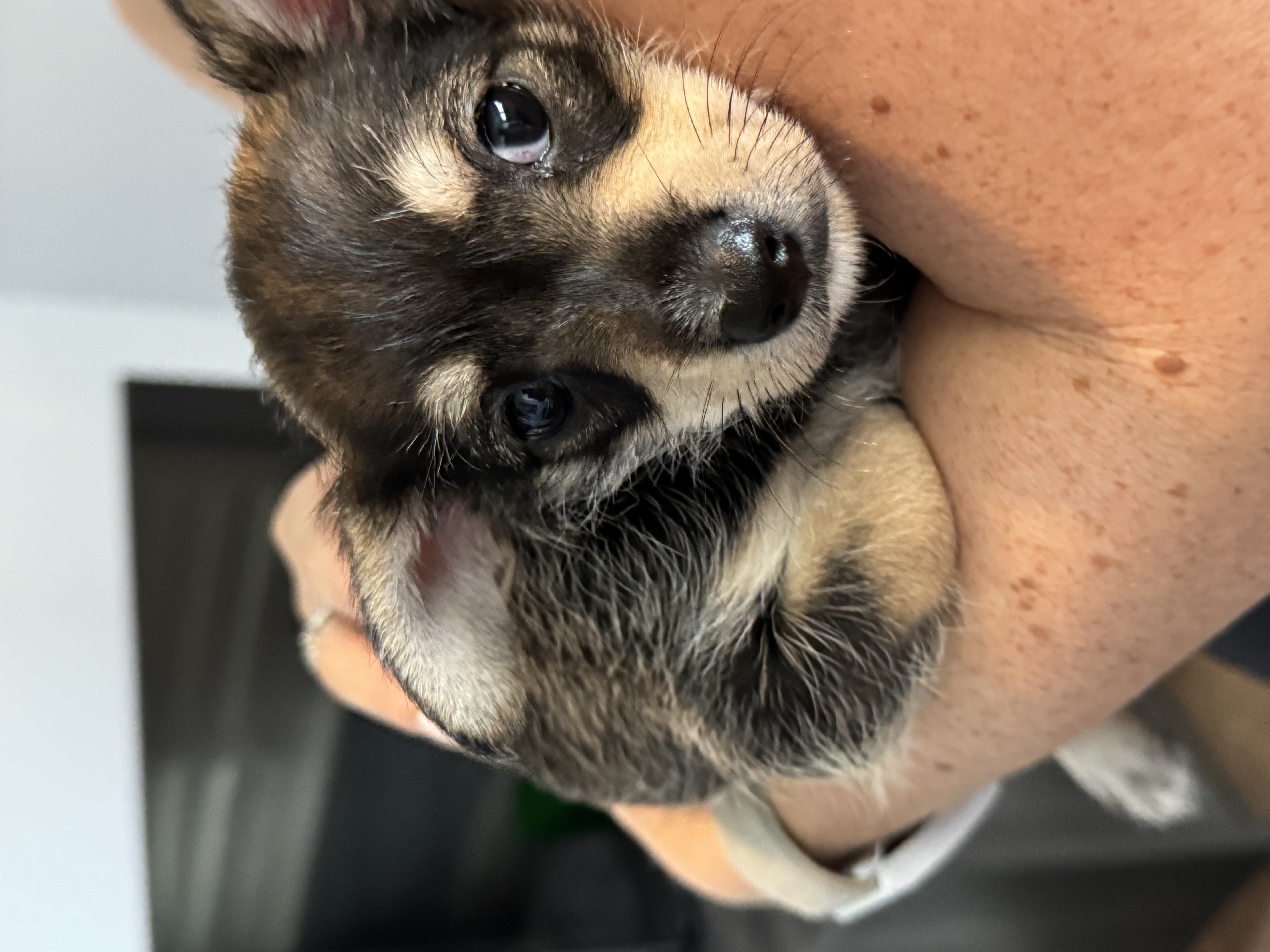 Hi! My name is Koa. I’m an eight-week-old boy weighing just over 3 pounds—and growing fast! I’ve got a laid-back personality most of the time, but when it’s playtime, I really go for it. I love to explore, chase toys, and wrestle with my siblings. Once I’ve had my fun, I’m all about the cuddles. I’m a gentle little guy who loves being held, giving kisses, and just soaking up your attention.