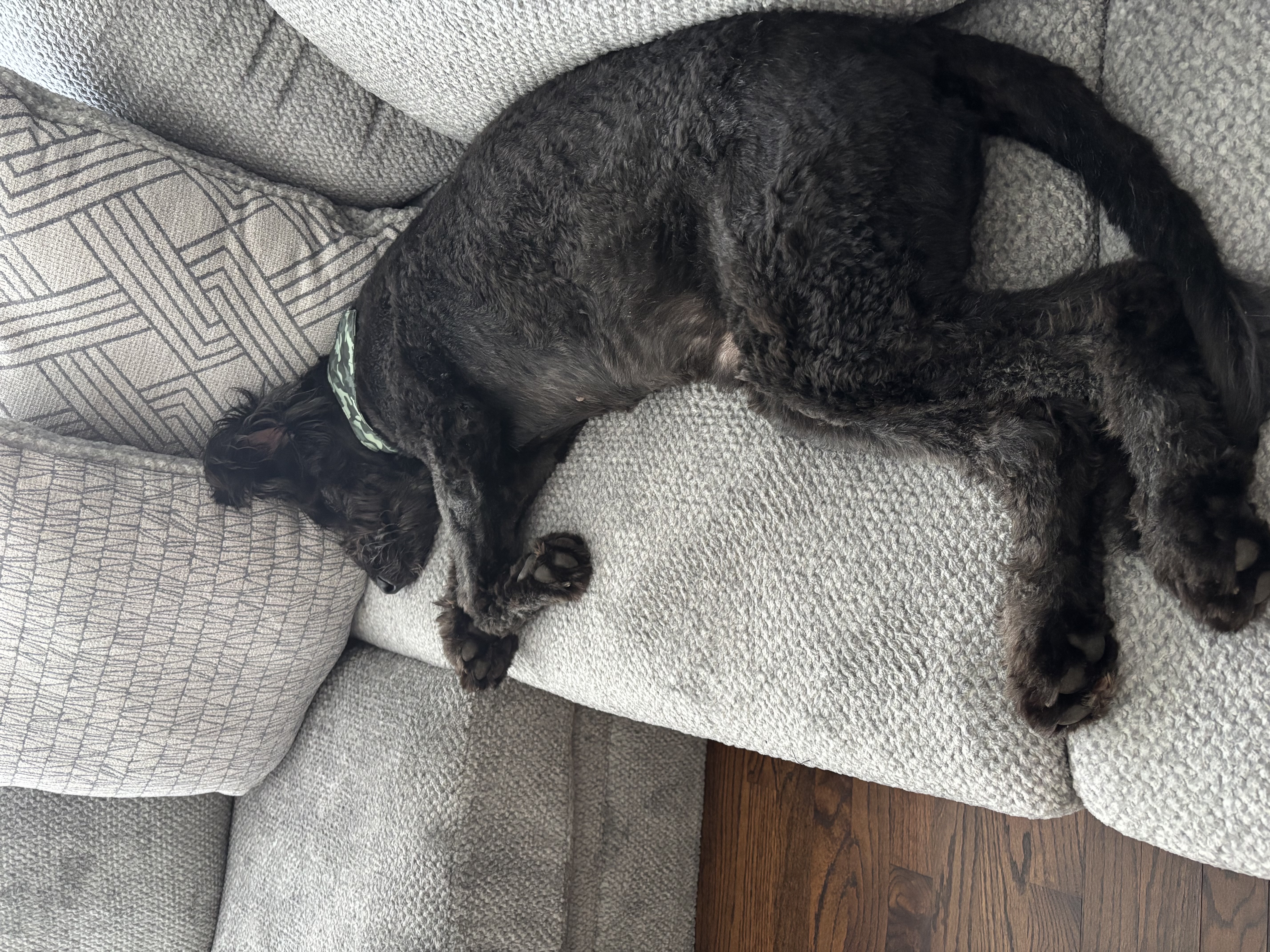I like to start my day early with breakfast, followed by some morning fun to burn off my energy. A game of fetch or a nice walk is the perfect way to get going! During the day, I relax, take naps, and enjoy a treat or two. As the evening rolls in, I get another burst of energy—dinner is followed by more playtime or an evening stroll before I settle in for the night.
