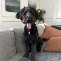 Hi there! I’m Landry, a 2-year-old, 60-pound poodle mix with a heart as big as my fluffy paws. I’m a loyal companion who loves being by your side all day long. My curiosity keeps me busy—I enjoy greeting other animals and checking out new things. Whether it’s chasing after a toy or romping around with a furry friend, playtime is my favorite time! I’m also a gentle sweetheart who adores snuggles and kisses.