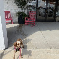 I’m learning to potty outside (a playpen helps me focus) and will go to the door when I need out. I walk nicely on leash, though I sometimes get excited and hop or switch sides. I adore being carried around and going on adventures—coffee runs, patio lunches, even hair appointments! I get a little nervous on car rides, so I ride in a crate for safety, but I’ll be brave if you’re close by.