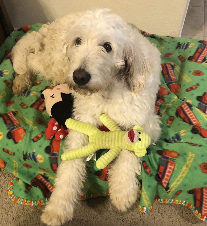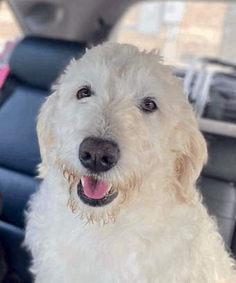Hi! I’m Lemon 🍋 and there’s nothing sour about me! I’m a sweet, 4-year-old female Goldendoodle and weigh 60 lbs. It took me awhile to come out of my shell, but now I’m the cuddliest gal in town! I do shed moderately, so keep those frequent brush sessions coming!