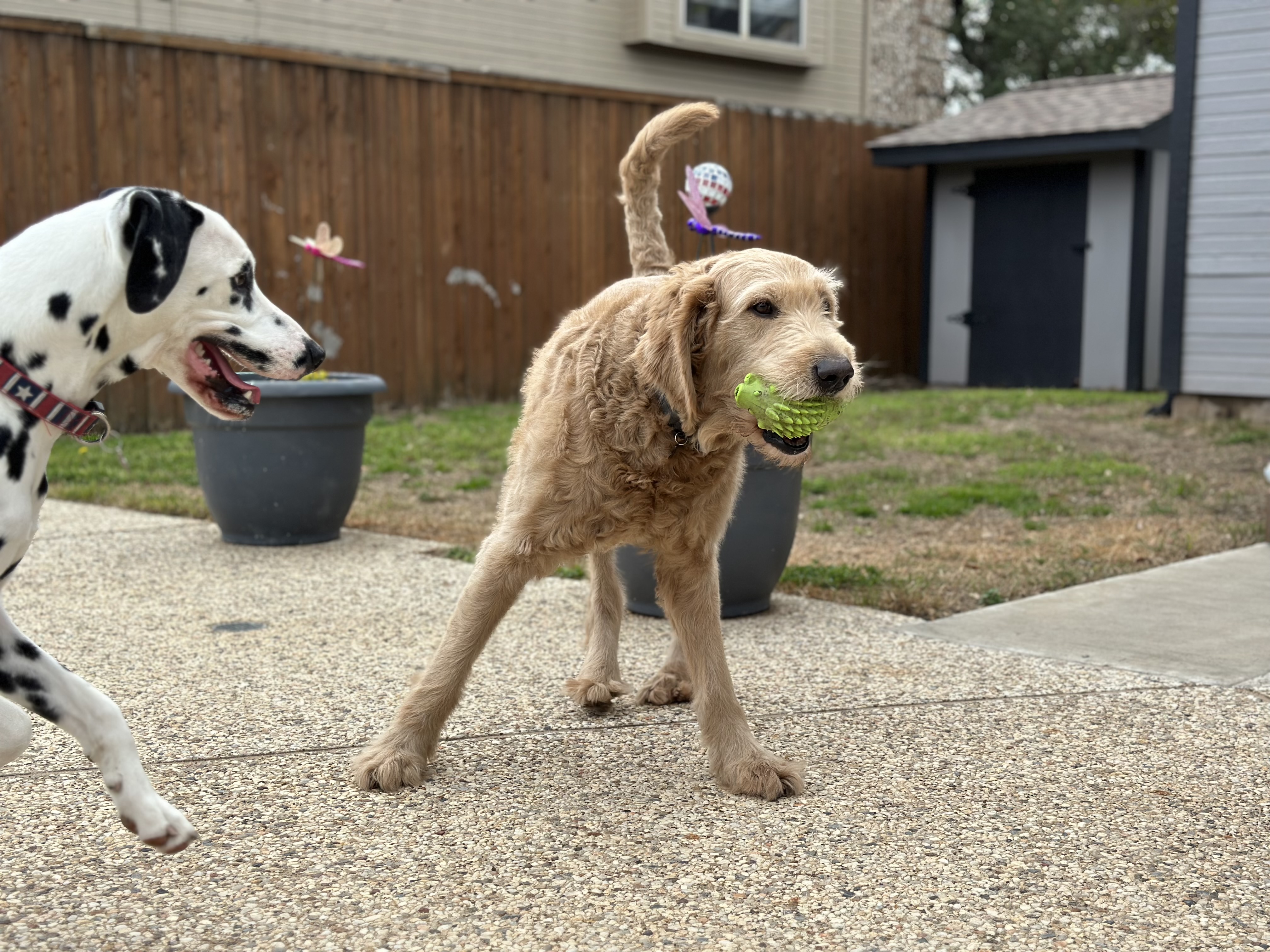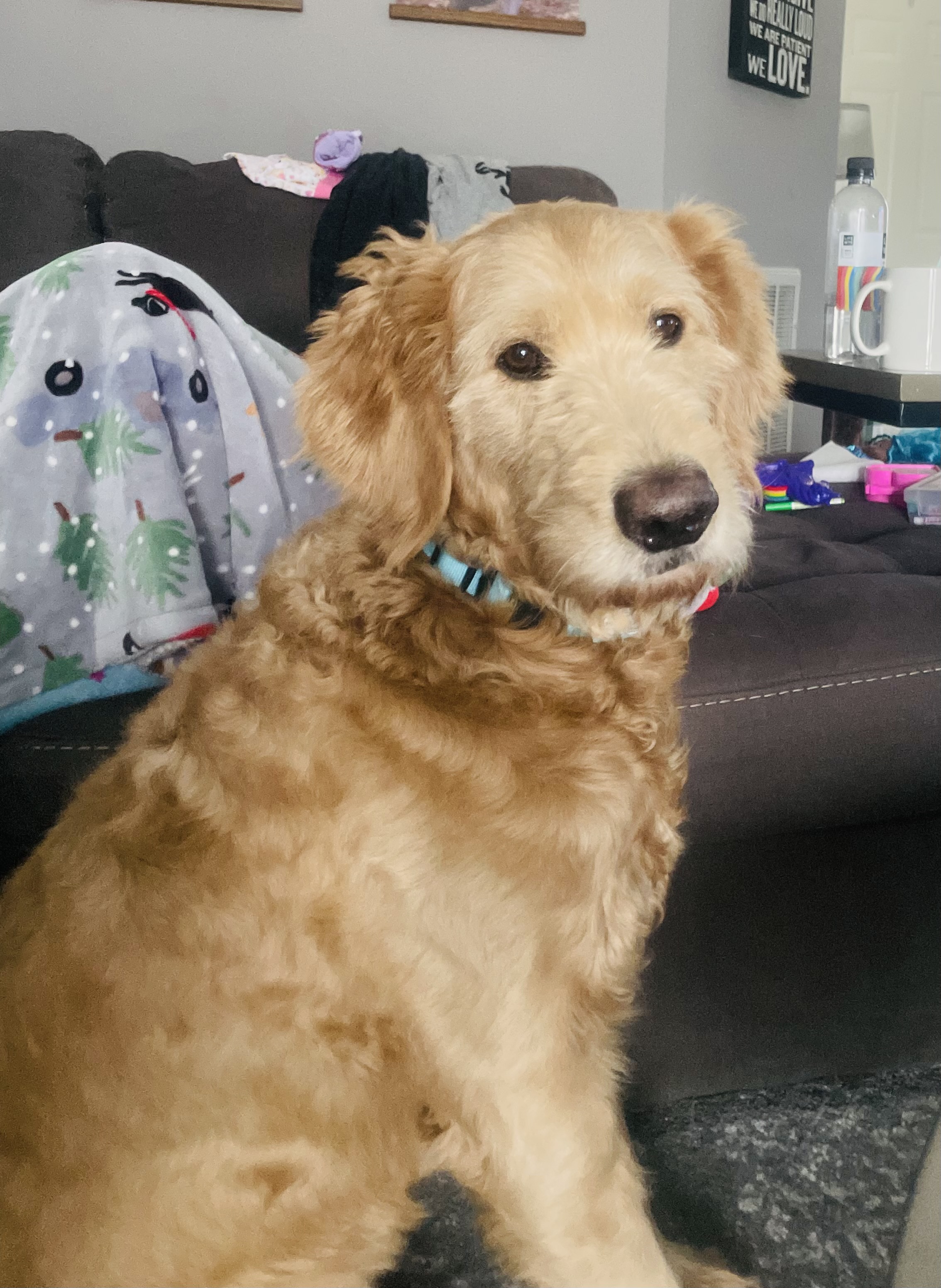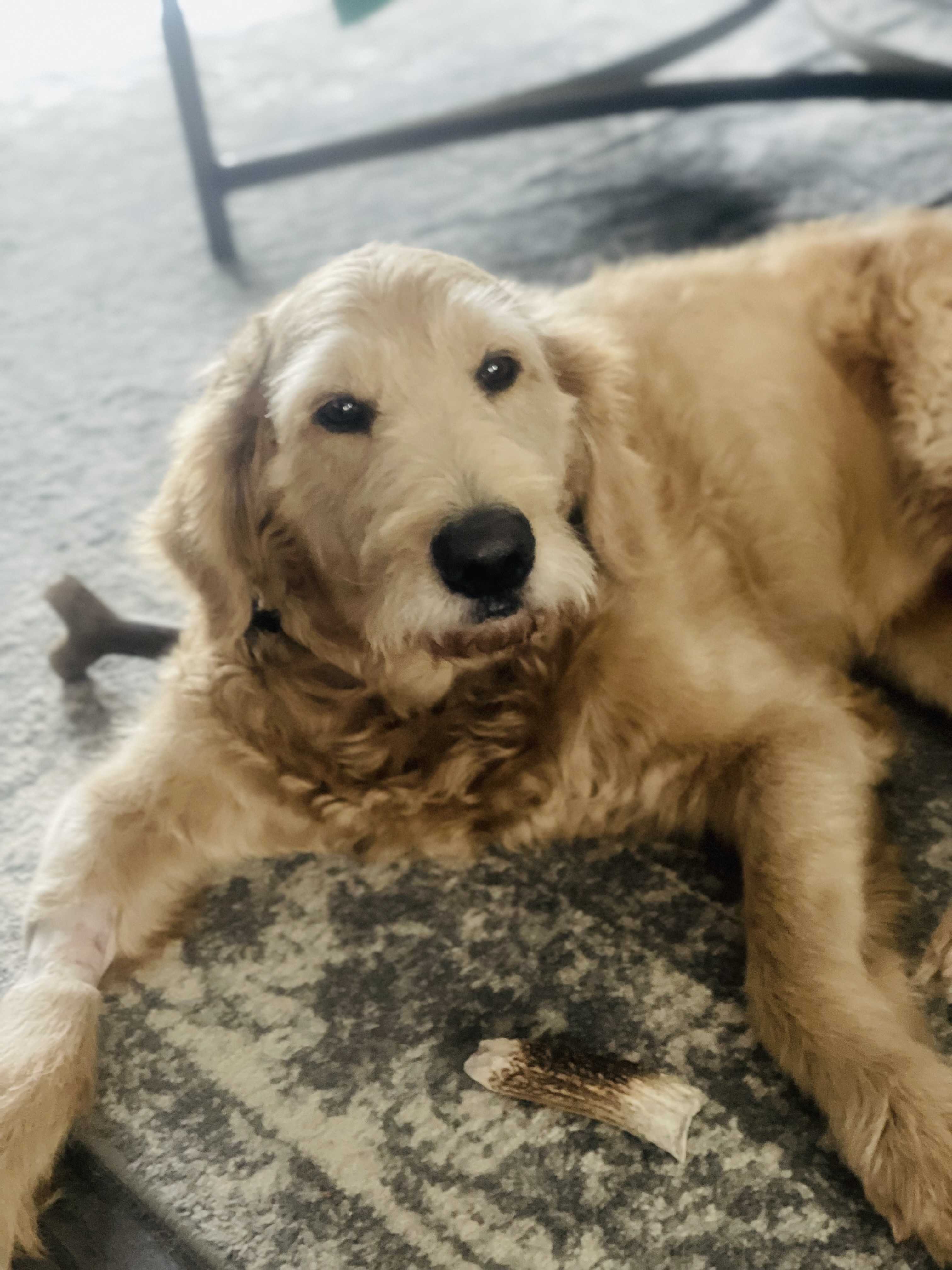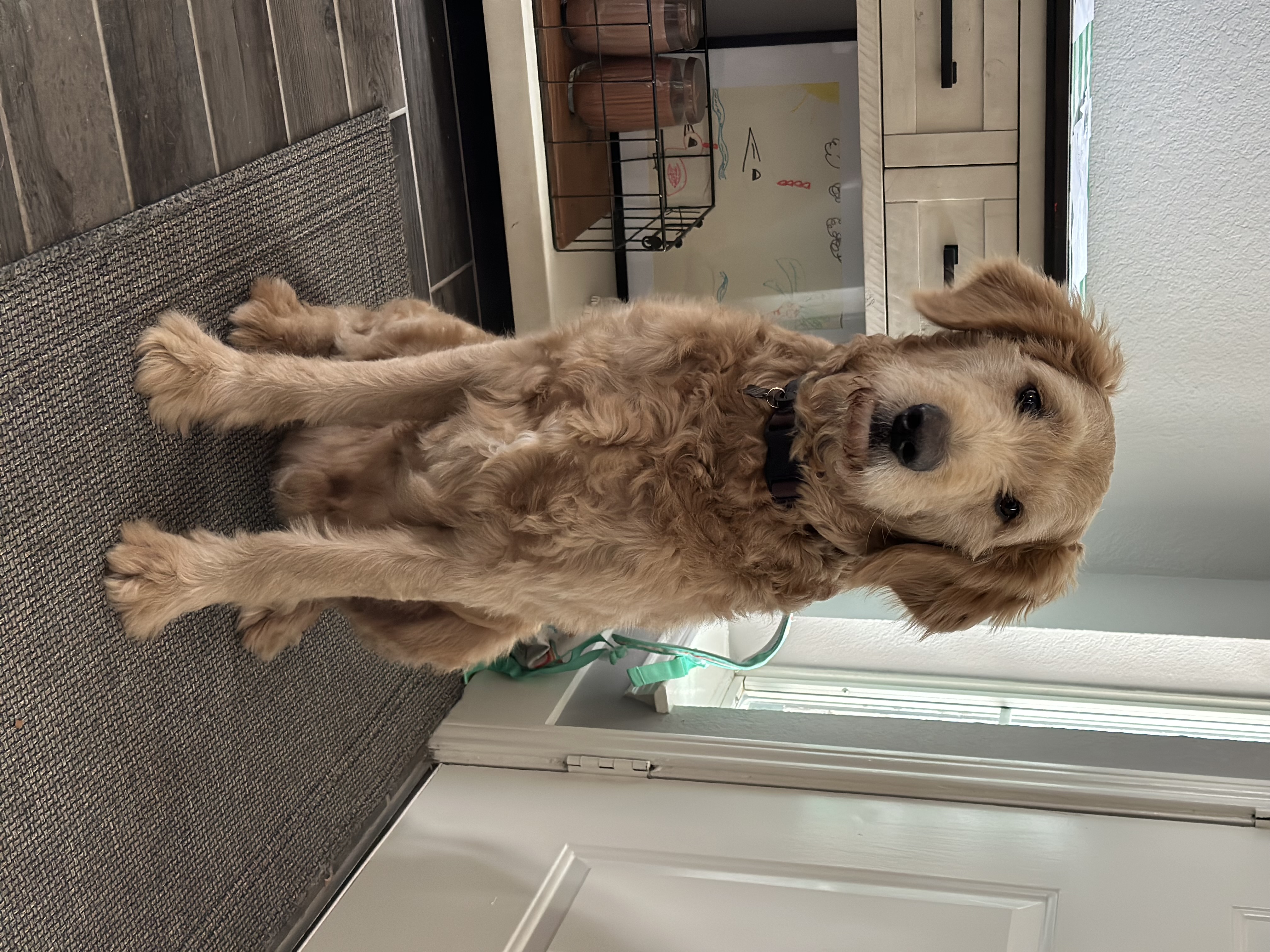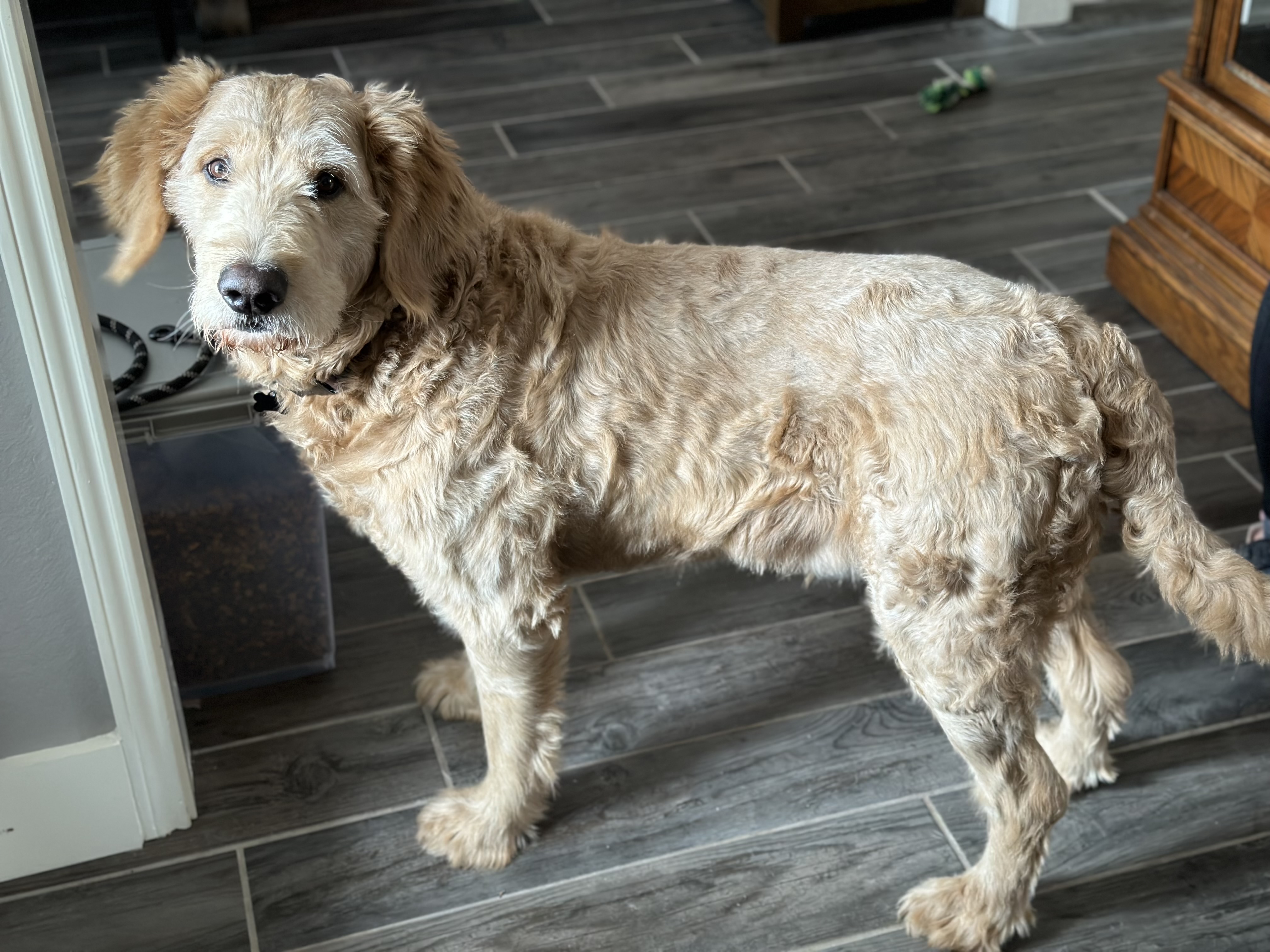 Leo is a goofy, active and loving 6-year-old Male Labradoodle coming in at 87 pounds! Not to worry, I am done growing!