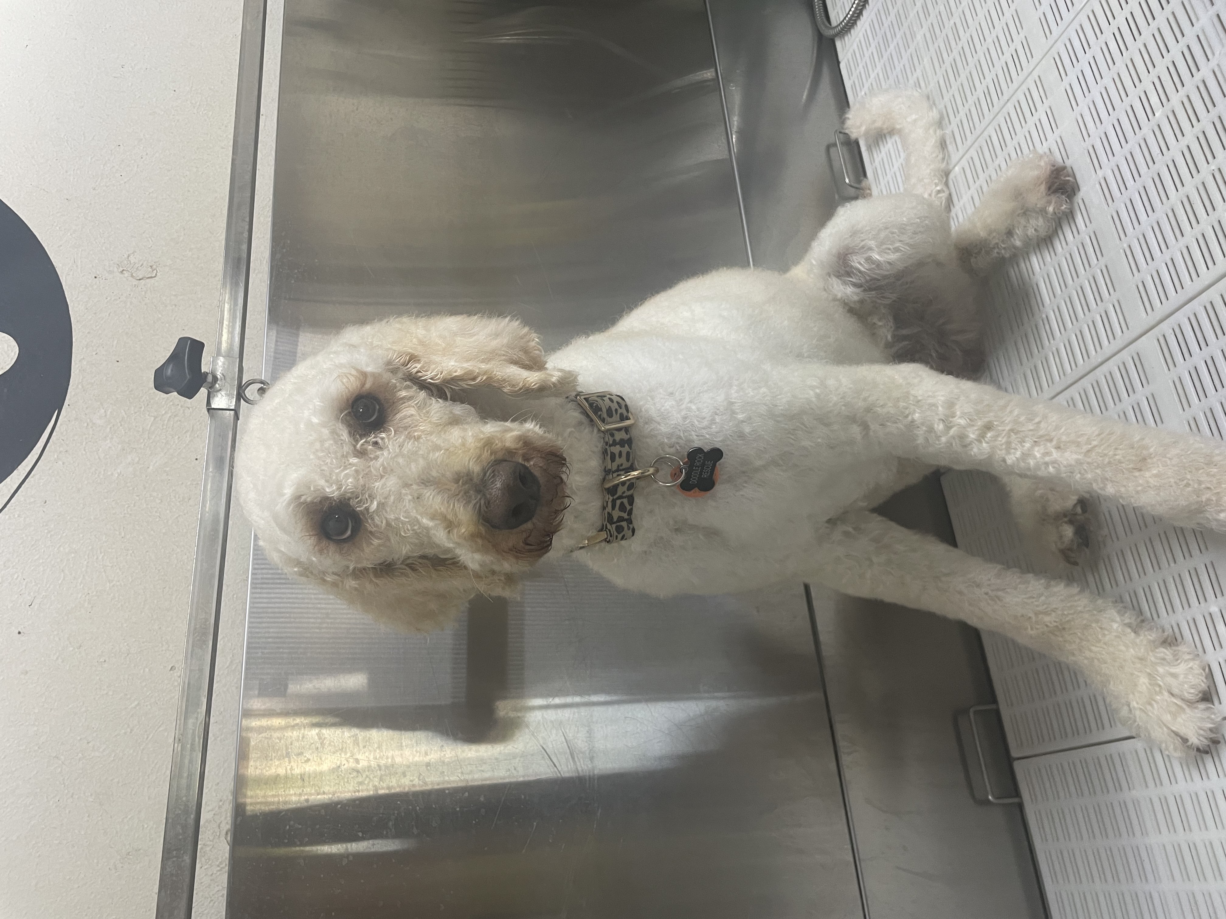 I did not have much vet care before coming to Doodle Rock. When they brought me in, they gave me a full work up and uncovered I had PDA (Patent Ductus Arteriosus) which is a congenital heart defect. Because it was left unnoticed for so long my heart was enlarged and I developed some congestive heart failure. DRR quickly brought me to LSU to see the experts where they performed a very successful heart surgery. My post-op testing showed good cardiac function. Because of my age I will need regular checkups and a single daily medication to keep me as healthy as possible. Once thing that is important is I cannot participate in heavy exercise so lounging in the yard is just my speed.