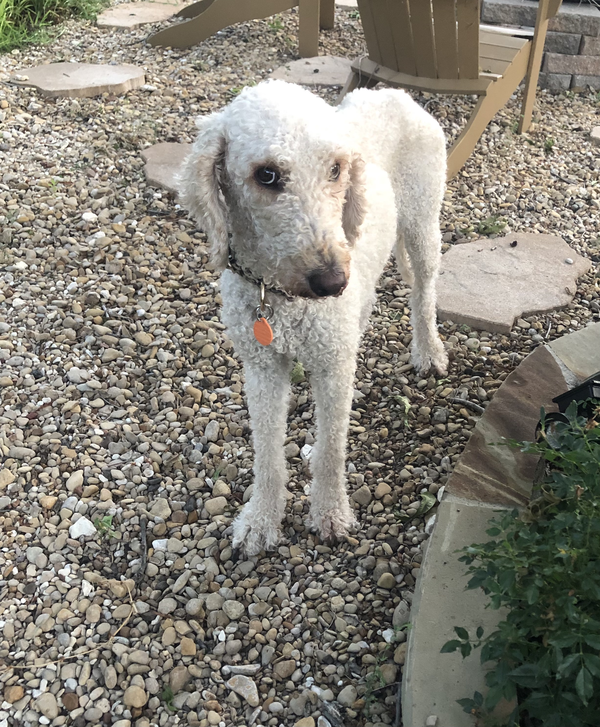 Hi, I’m Linguine! I’m a 6-year-old female Poodle and weighing about 43lbs. I'm a very shy girl, but slowly gaining trust. As you can see I definitely can put on some weight. I didn’t come in the best of shape, physically, and mentally.