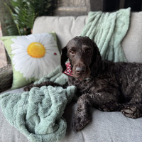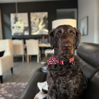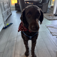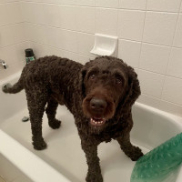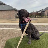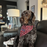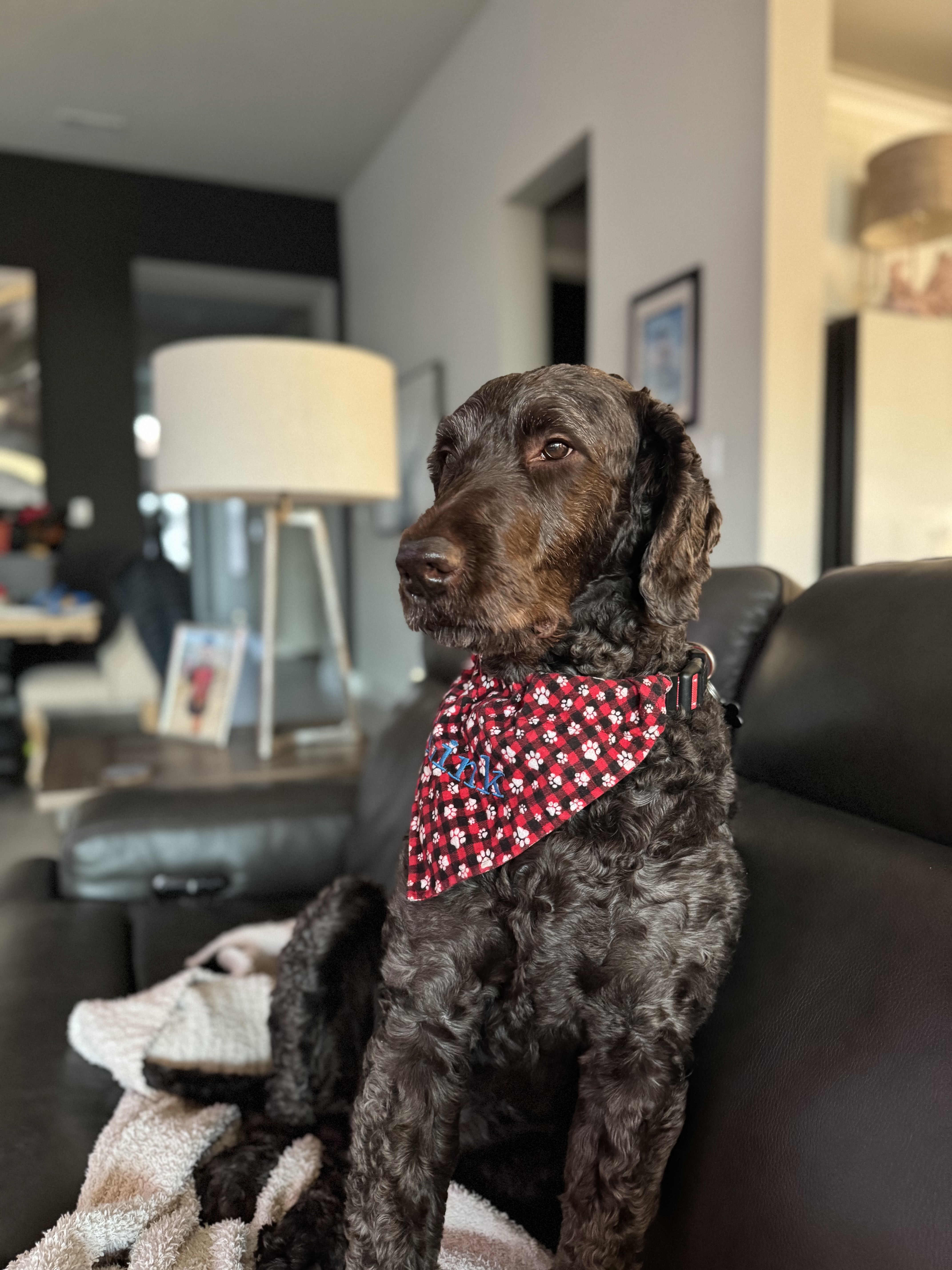 I’m an 8-year-old, 65lb Labradoodle with a big heart and an even bigger love for my people. I’m curious about everything, always up for an adventure, and when I get really excited, I grab my favorite stuffed toy and proudly carry it around like a prize!