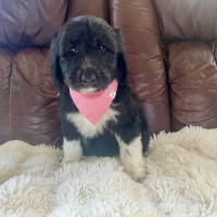 Hi there, I’m Lorena — named after the legendary golfer Lorena Ochoa, and I like to think I’m just as graceful… with a little extra fluff. ⛳ I’m an 8-week-old female poodle mix (maybe a sheepadoodle!) weighing 7 pounds of sweetness. I still have my soft puppy coat, so no one’s quite sure if I’ll shed — but I am sure that I’m absolutely adorable.