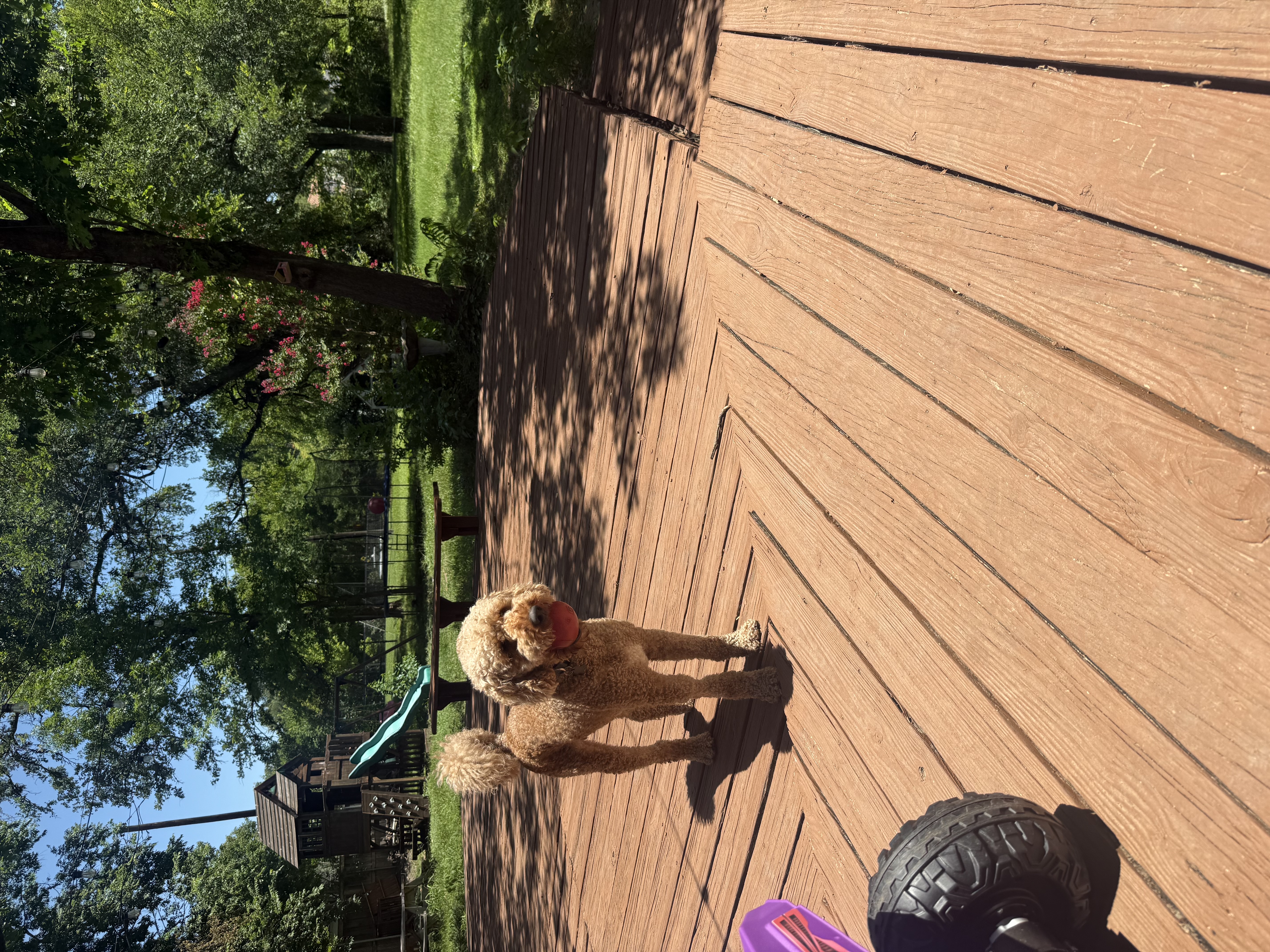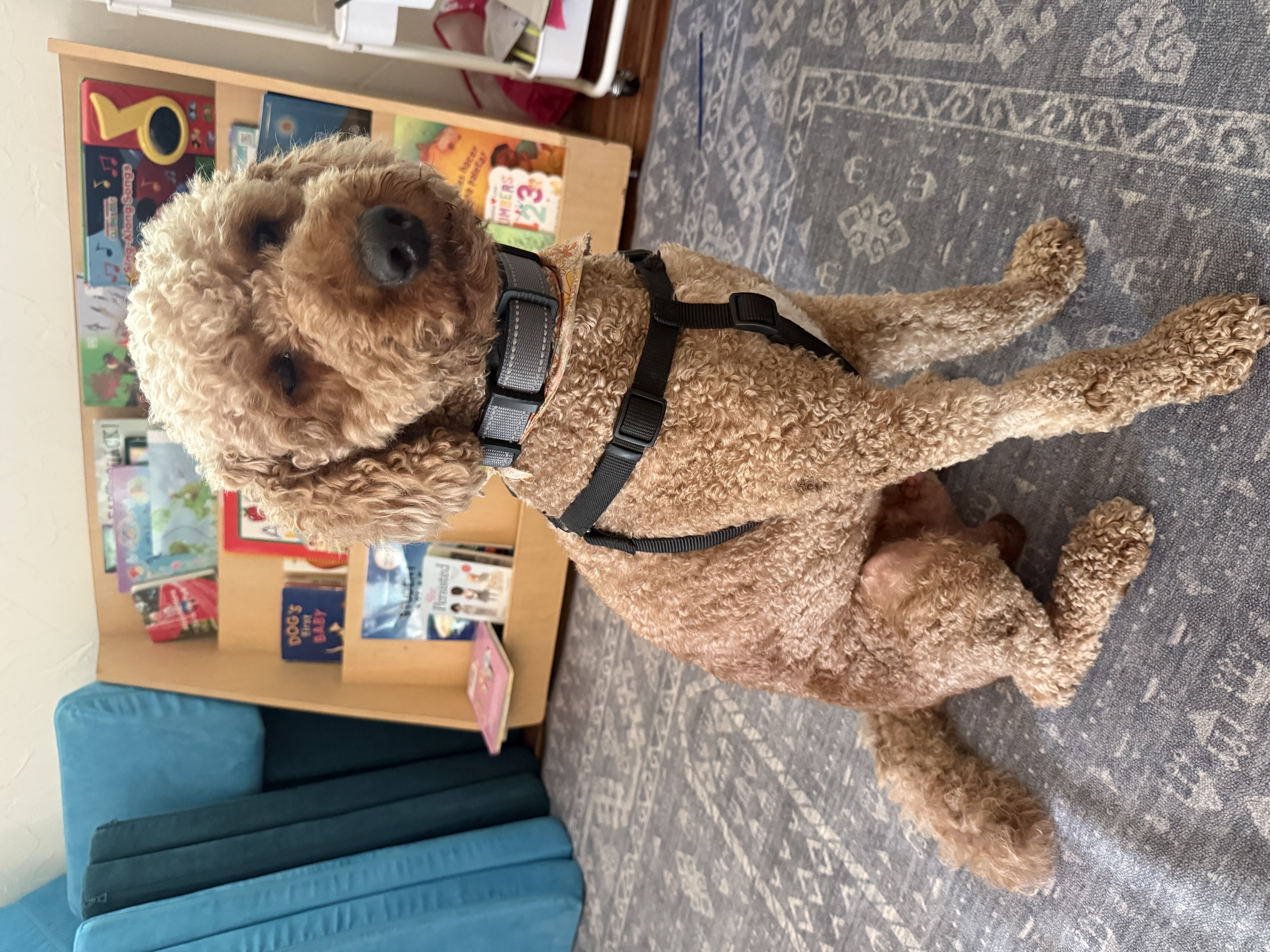 Hi, I’m Louie—but around here, my foster toddler calls me Lou Lou, and honestly, I kind of love it. I’m a 2.5-year-old, 35-pound mini-Goldendoodle with a heart as soft as my curls. I’m what you might call a professional companion—wherever you go, I’ll be just a few steps behind, ready to gently nuzzle you for a little affection or sit quietly by your side. I love to be close, and I’m happiest when I’m near my people.