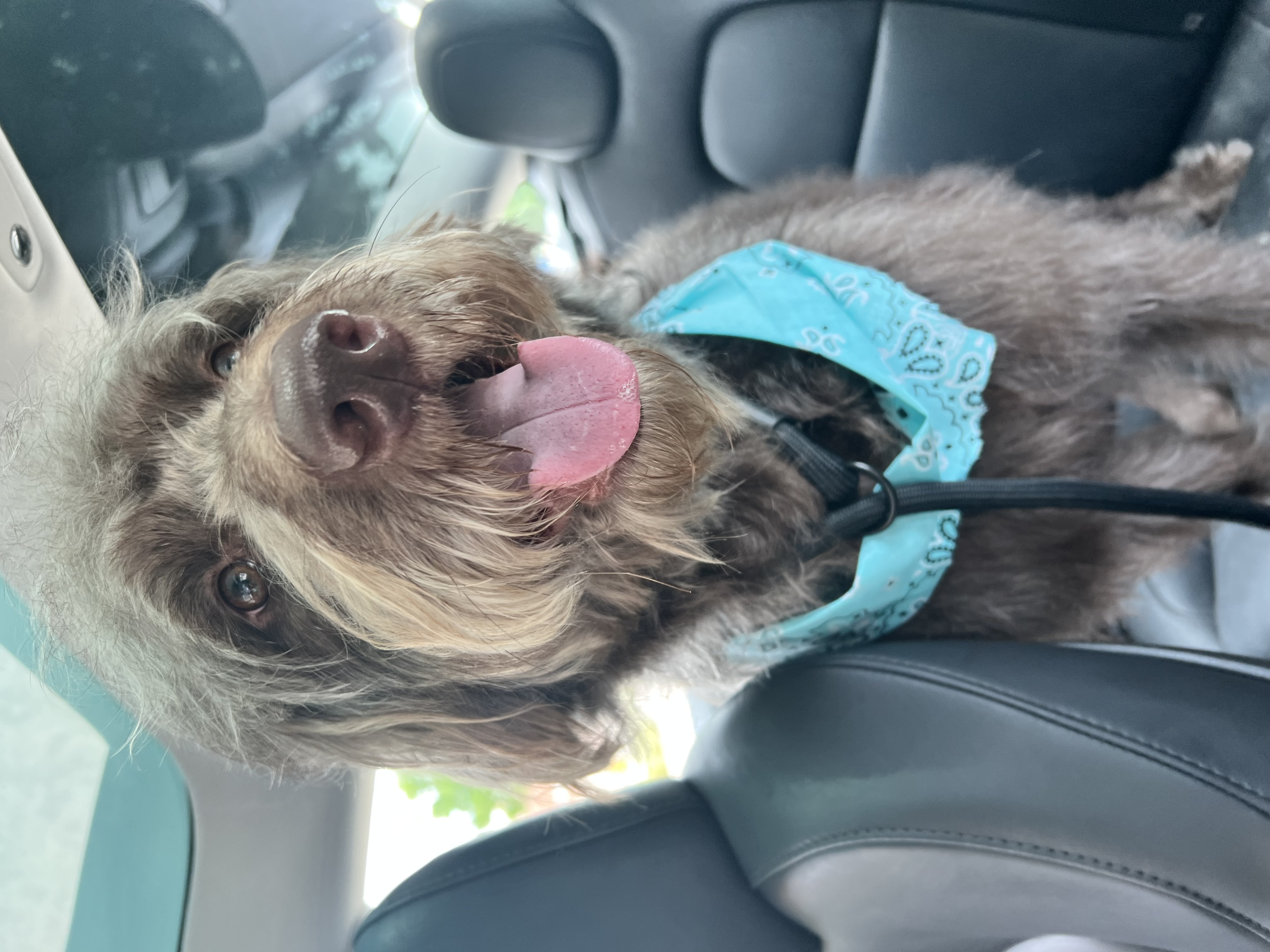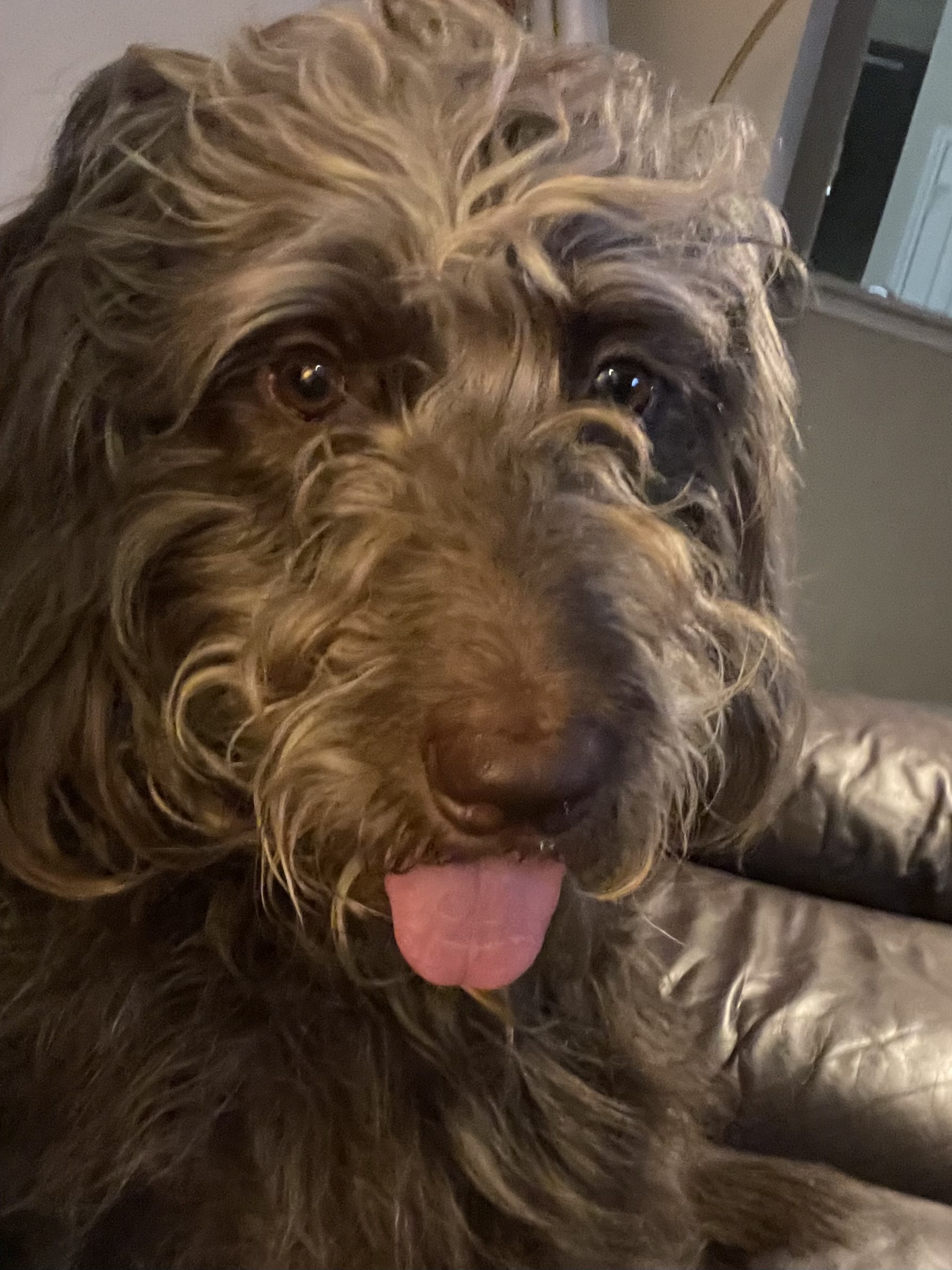 Hi! My name is Louis V, but most people just call me Louis. I am a 1.5-year-old, 55lbs, male chocolate labradoodle. I have a troubled past but I’m working really hard to keep it in my past and trust again. My foster mom says I’m making great progress!