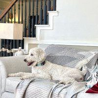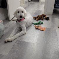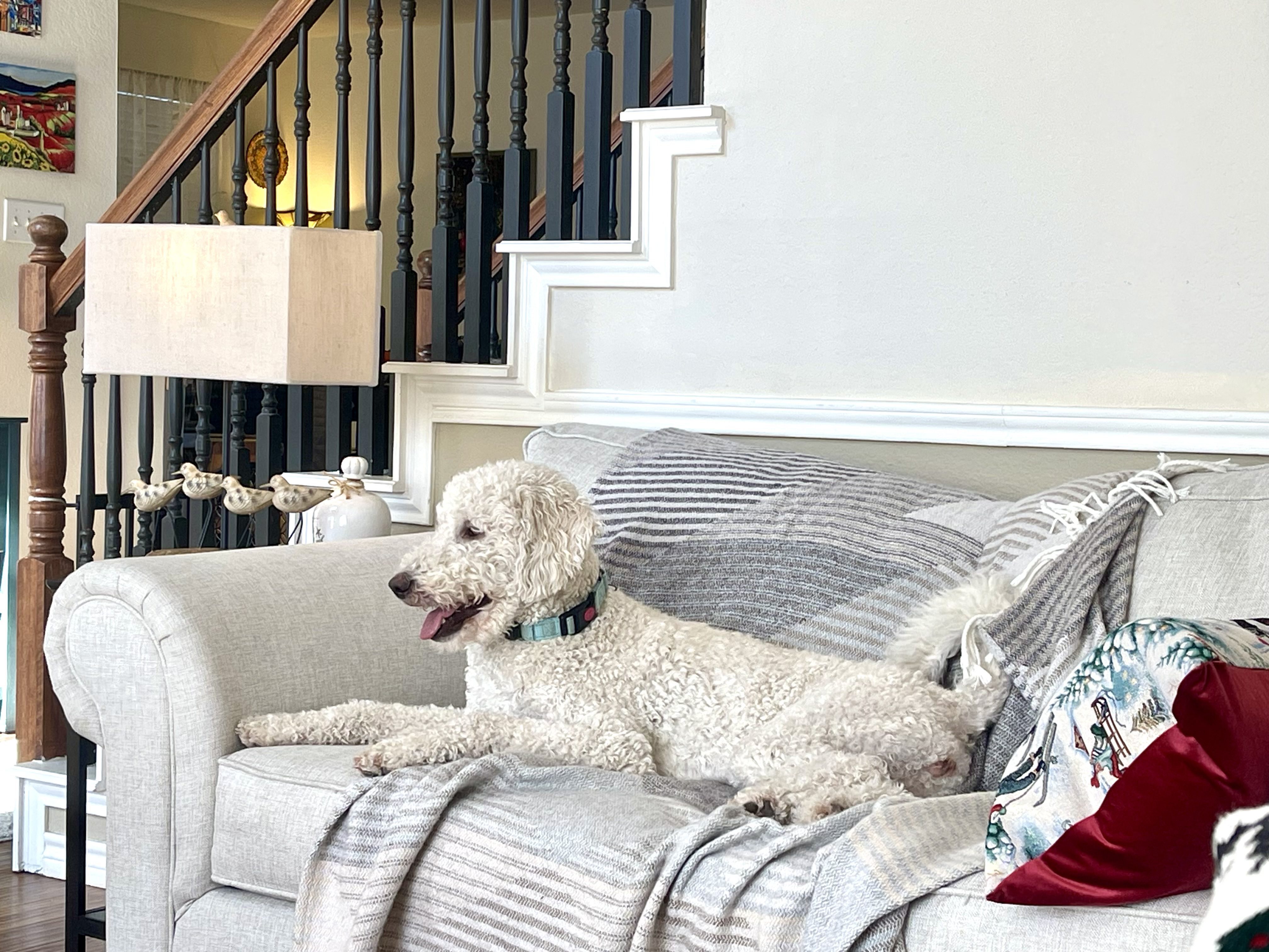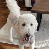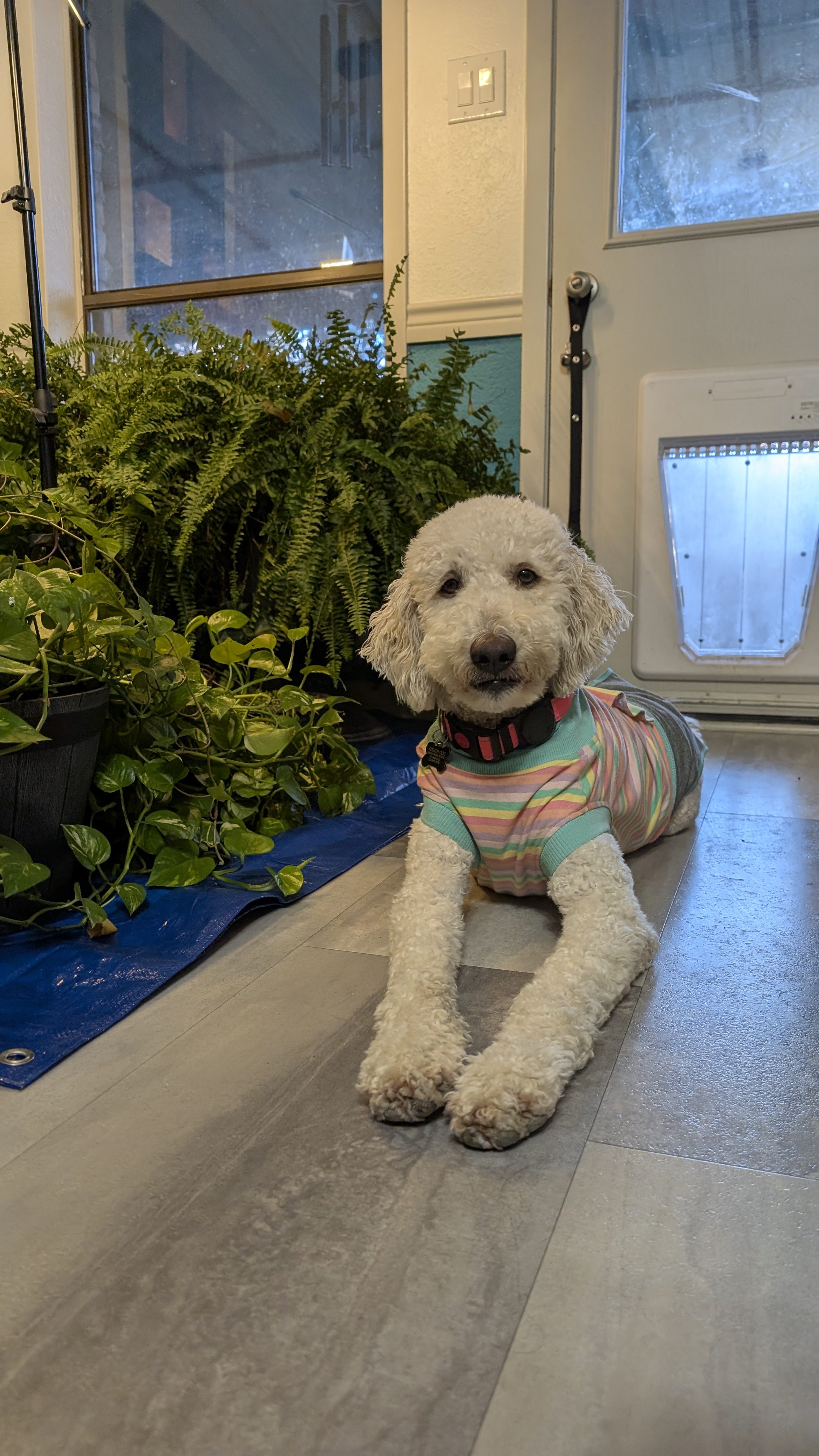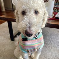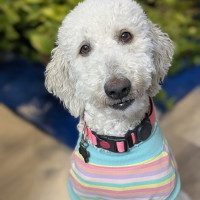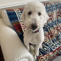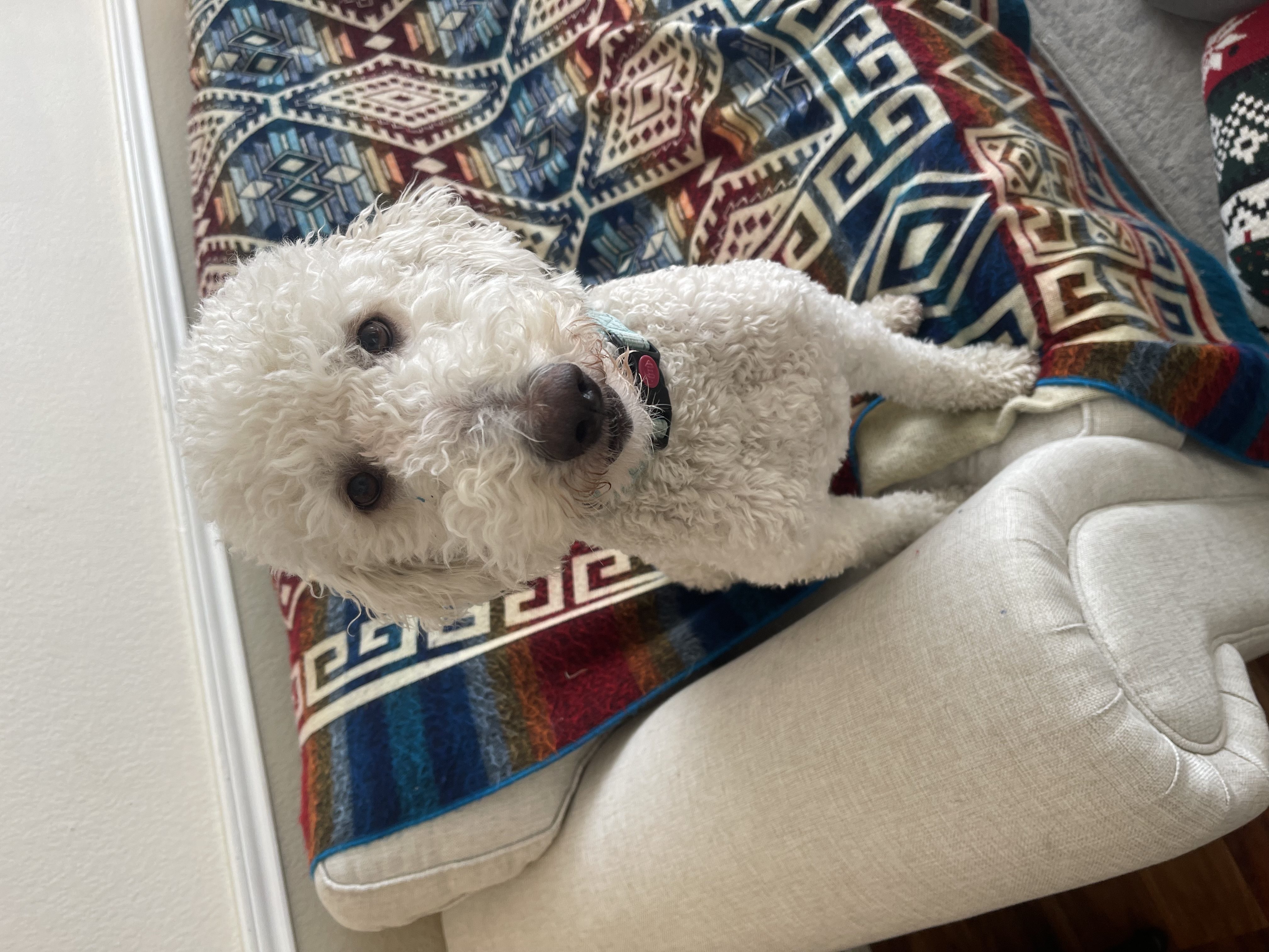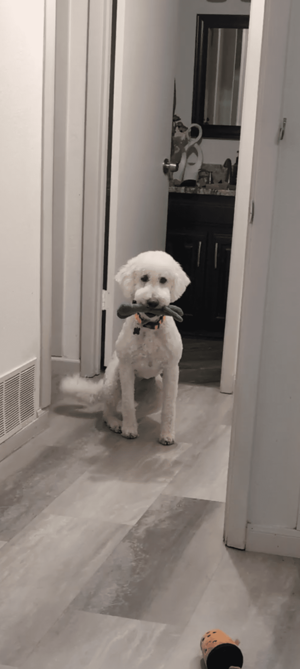 I’m a snow-white poodle mix with a big heart, a big personality, and so much love to give. When you walk through the door, I just can’t help myself. I jump, I wiggle, I talk, and I celebrate you like you’re the best thing that’s ever happened to me. I’m working on my “down” command, and I’m trying really hard, but sometimes my excitement just wins. I promise I mean well every single time.