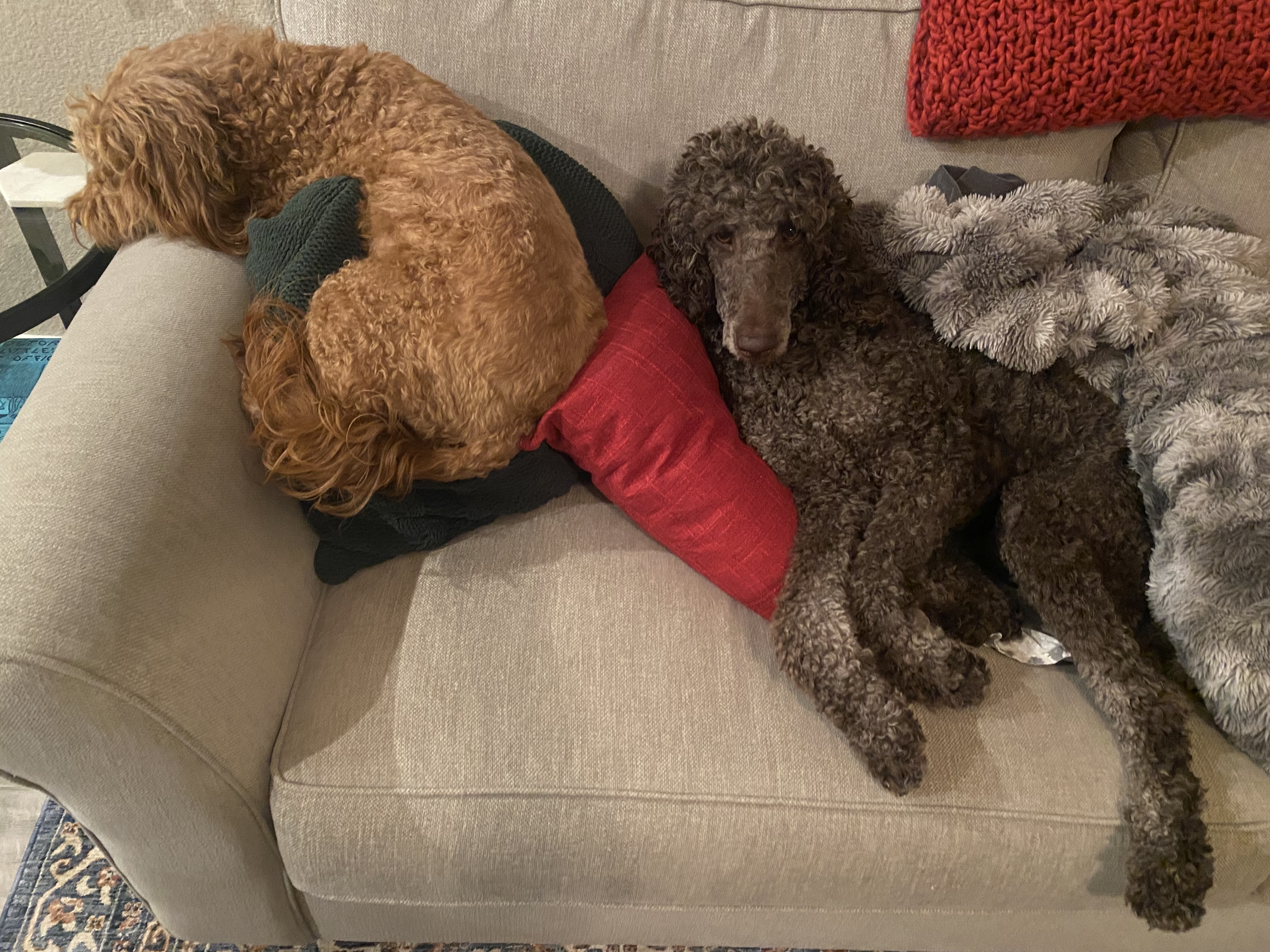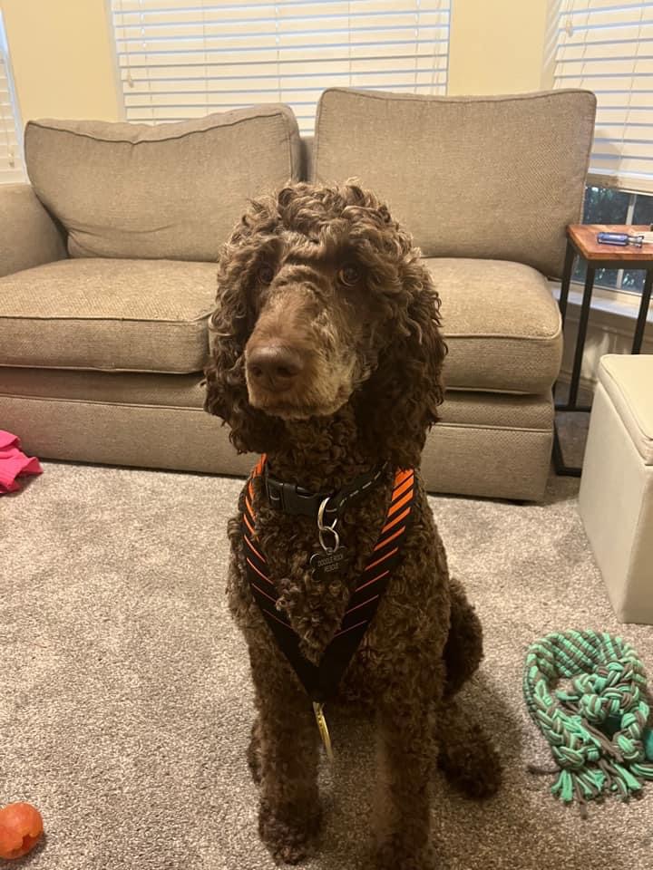 Hi, I'm Louise but I answer to Lou! I'm a Female Standard Poodle, and although ladies don't usually talk about their age and weight, I realize it's important for you to know that I'm about 2 years old and weigh 55lbs.