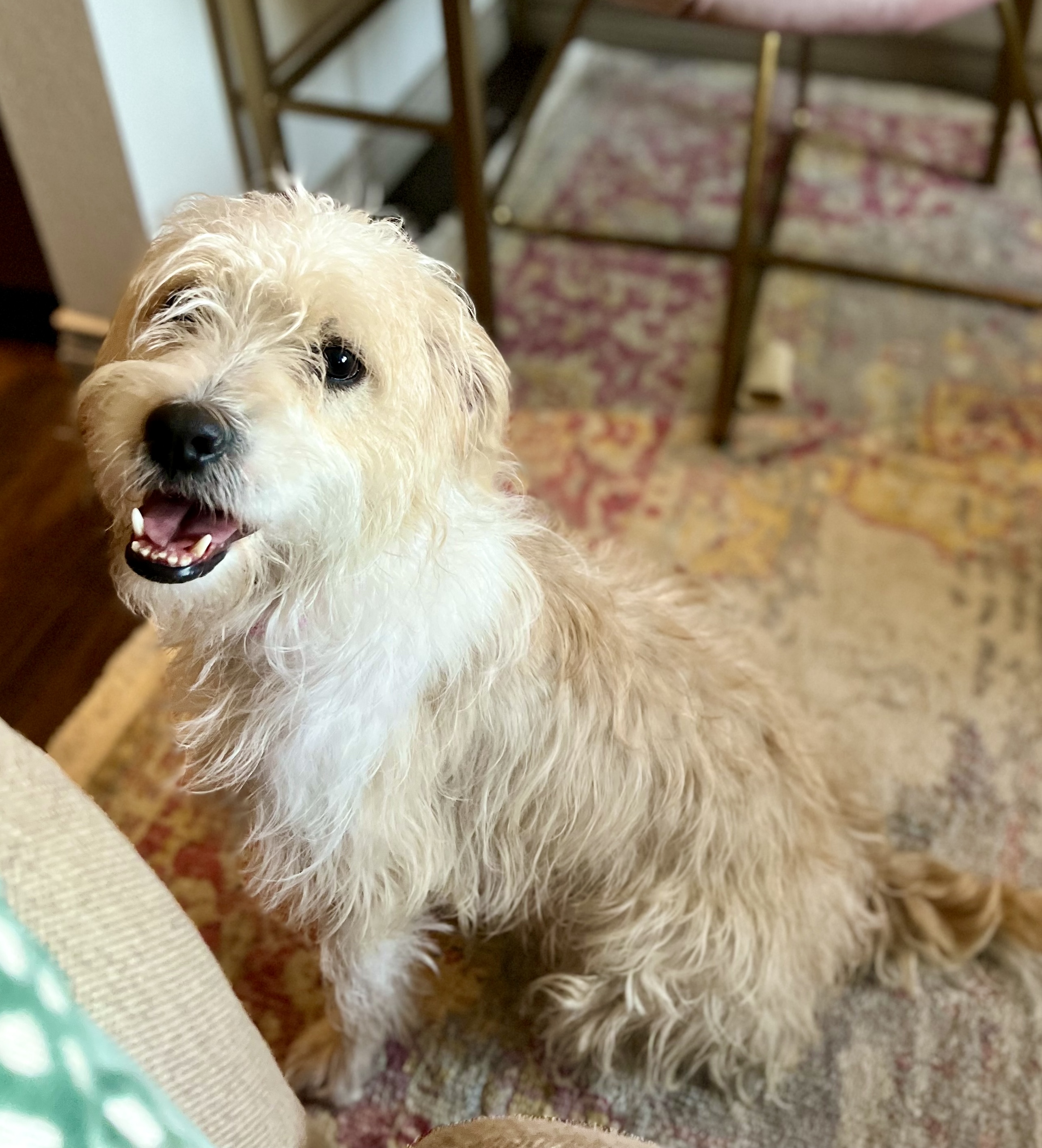 HI, I’m Lucy Lou, a 2-year-old female “whoodle” and weigh about 26 lbs. I have the most beautiful coloring/markings and the most endearing underbite; but that doesn’t keep me from eating well!