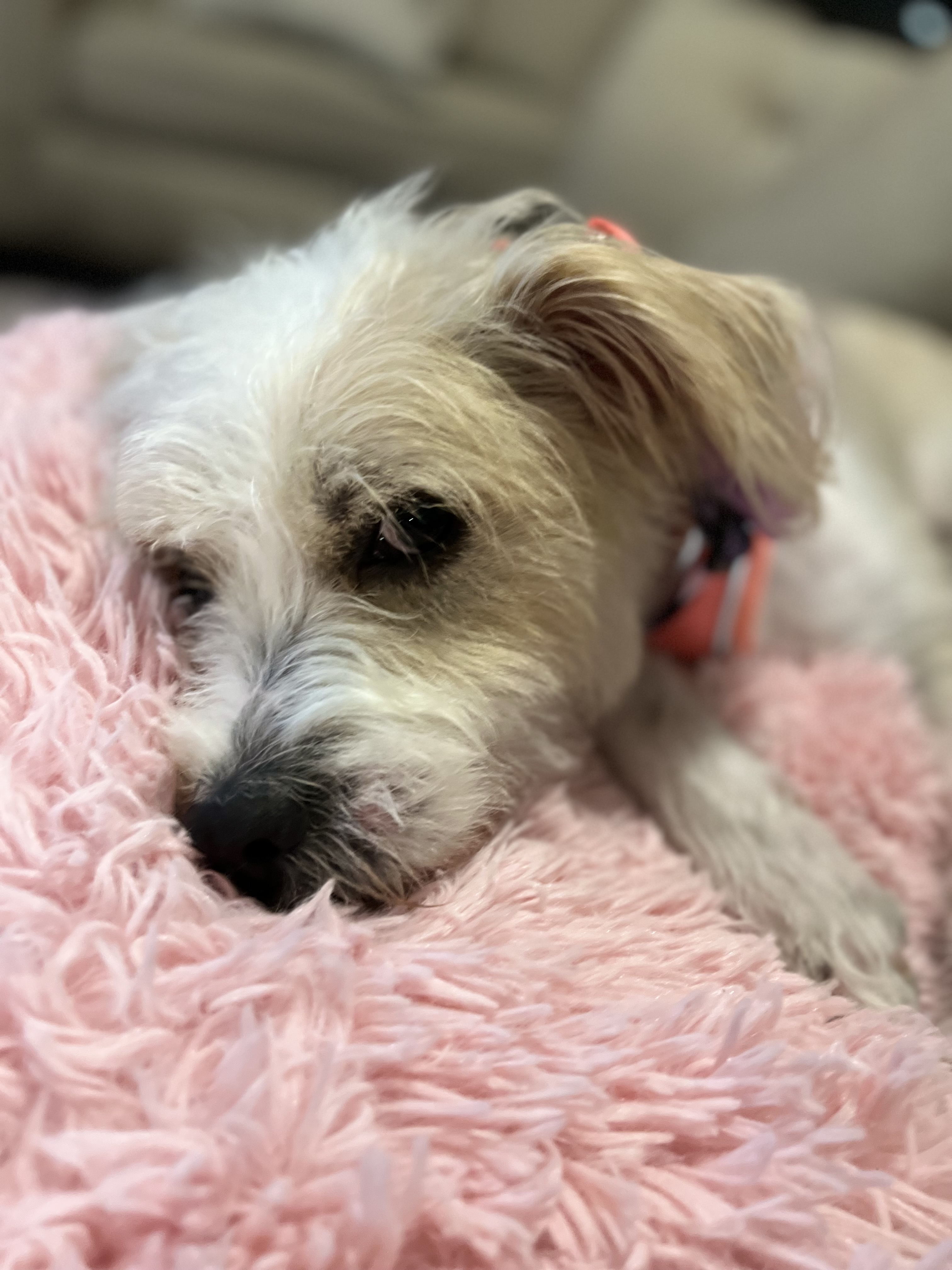 I am incredibly sweet and I love to be around my people and four-legged friends. Snuggles and scratches are two of my favorite things. My favorite treats are bully sticks or bones filled with peanut butter, although I have not been known to turn down any kind of treat. I play catch with my stuffies every morning and I love hanging with my foster sisters. We like to do zoomies in the house and backyard.