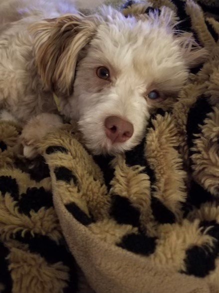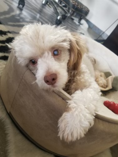 Sometimes I cry in my crate at night for a little bit so I am still getting used to that. I had one of my back legs amputated so now have 3 but I run around like I have four legs because I am out of pain and feel wonderful. It does not hinder me at all except going up stairs. I am unable to do that. I have eye drops that I need morning and night. The eye drops are temporary as my eye is clearing up well and I can see out of it. I am potty trained and every now and then have a little accident if I am not on my schedule.