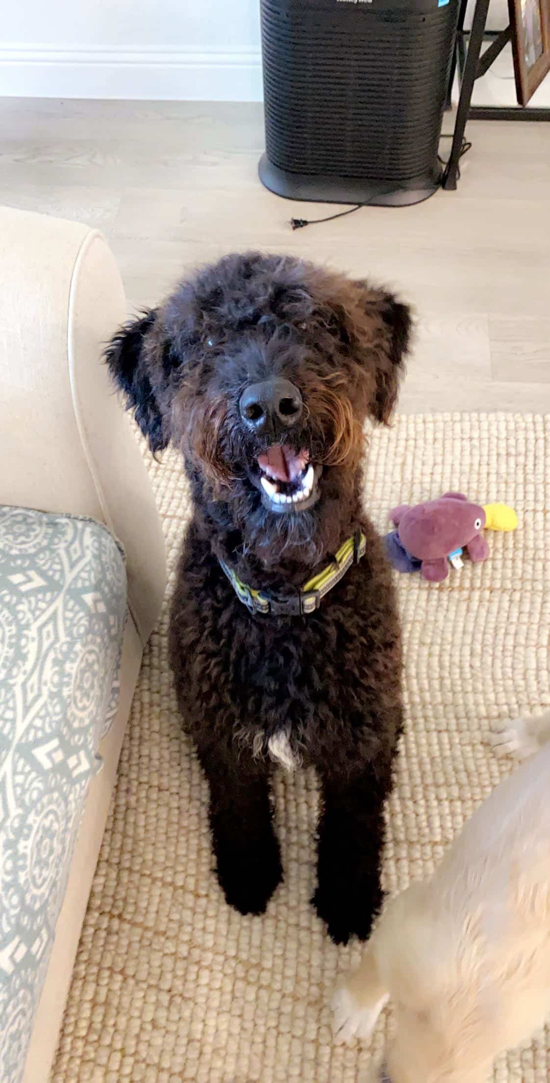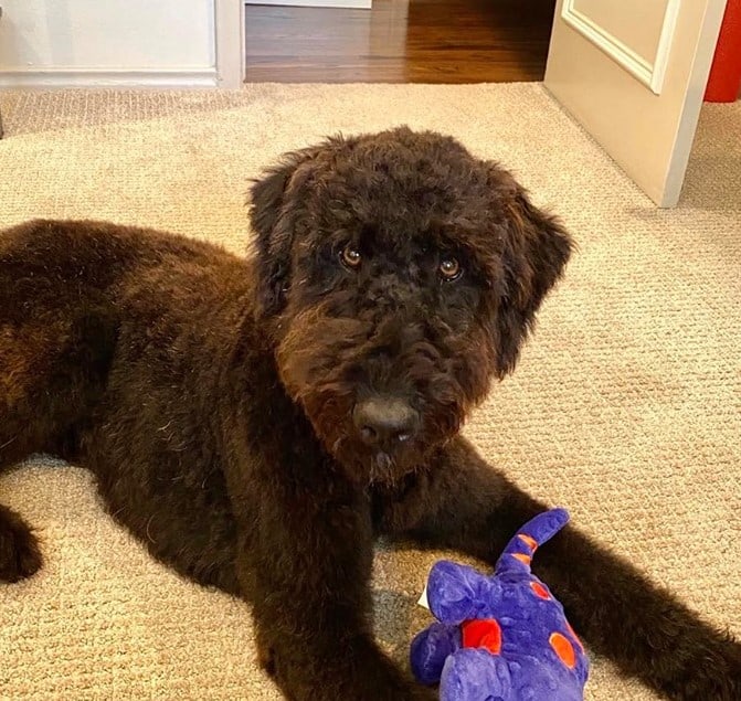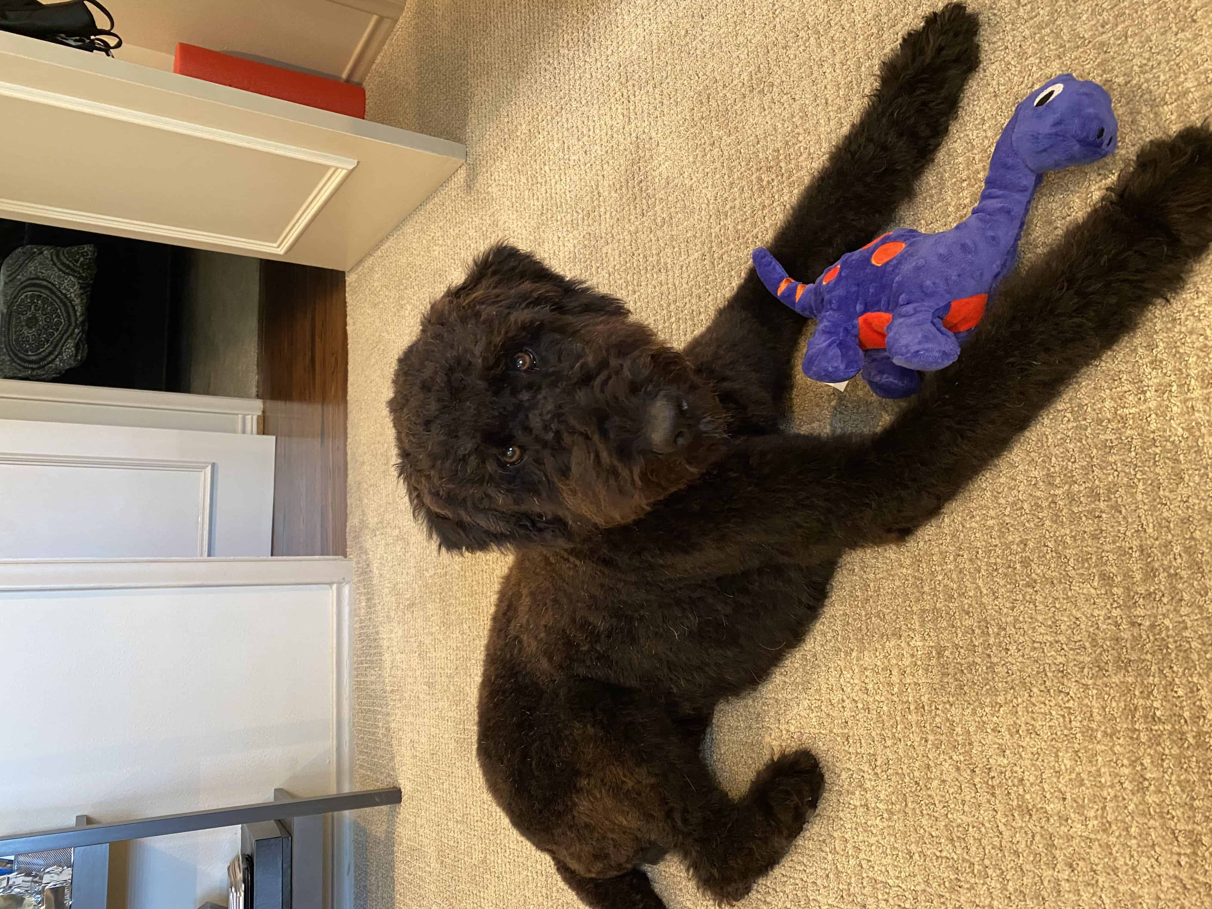 Hi, my name is Luke. I'm a 1.5-year-old male Airedoodle weighing in at 55 lbs. I have a tight curly coat with little shedding.