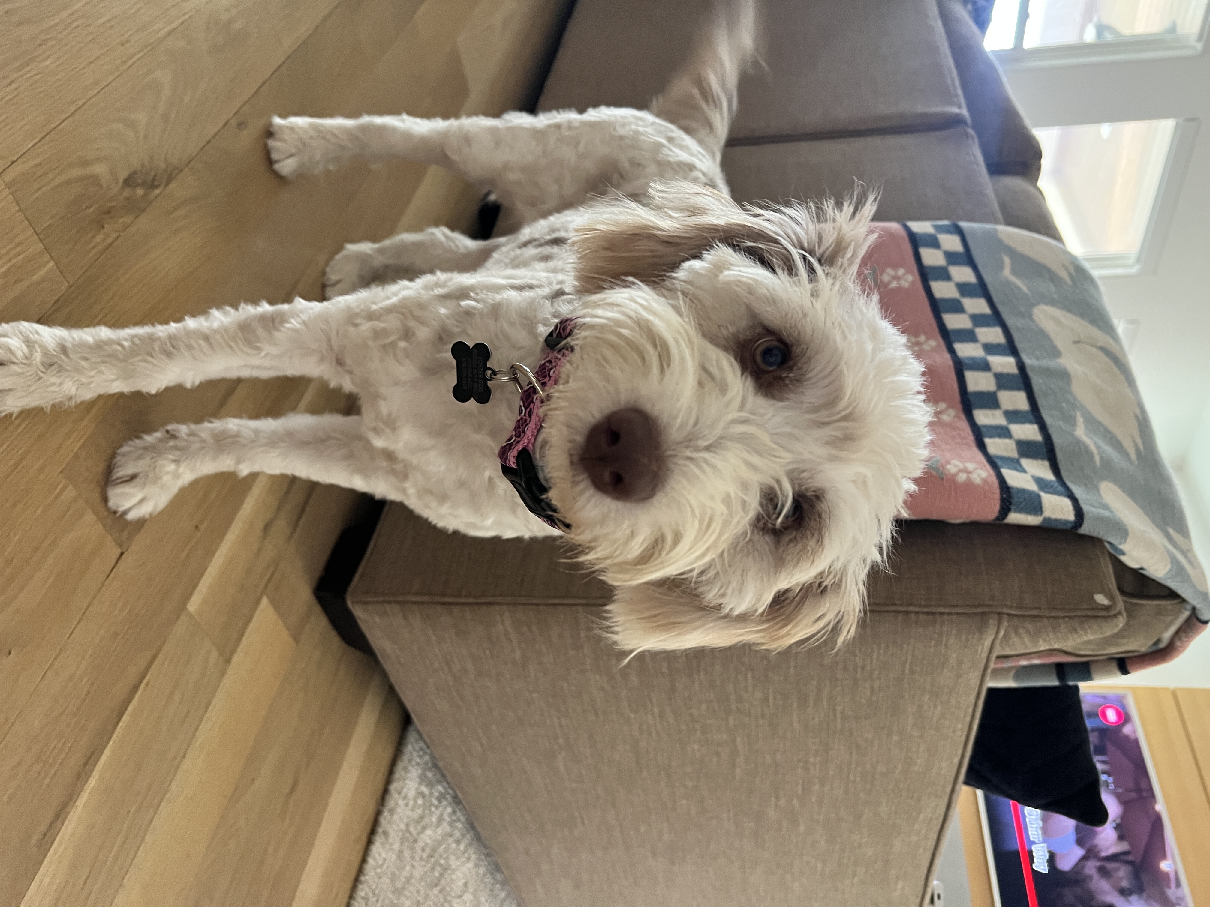 Hi! I'm Lulu, a 28LB Female Aussiedoodle. They say I'm around a year old - but because I came from the valley I'm not sure when my birthday is! I've got beautiful golden eyes and wavy non-shedding hair.