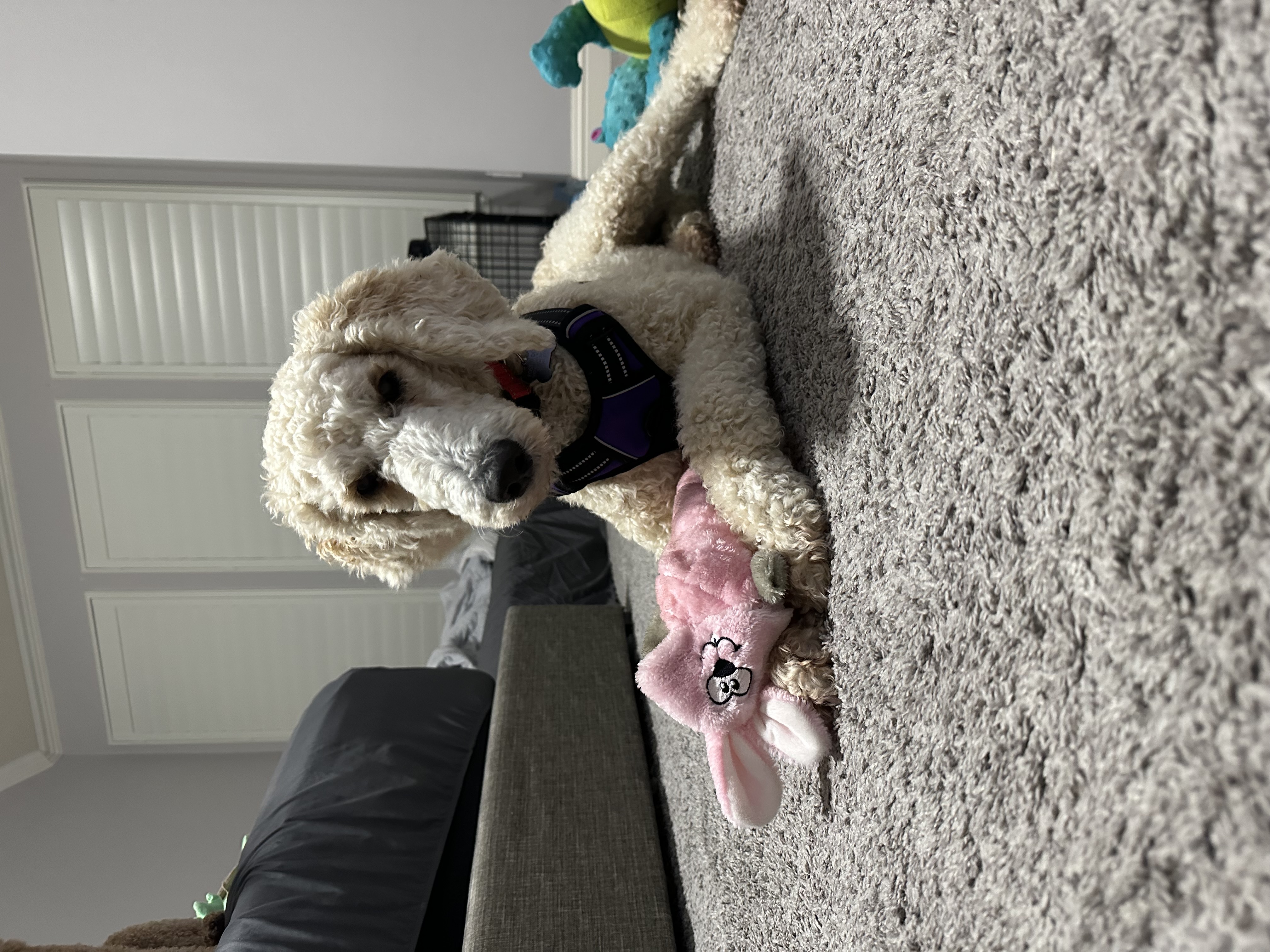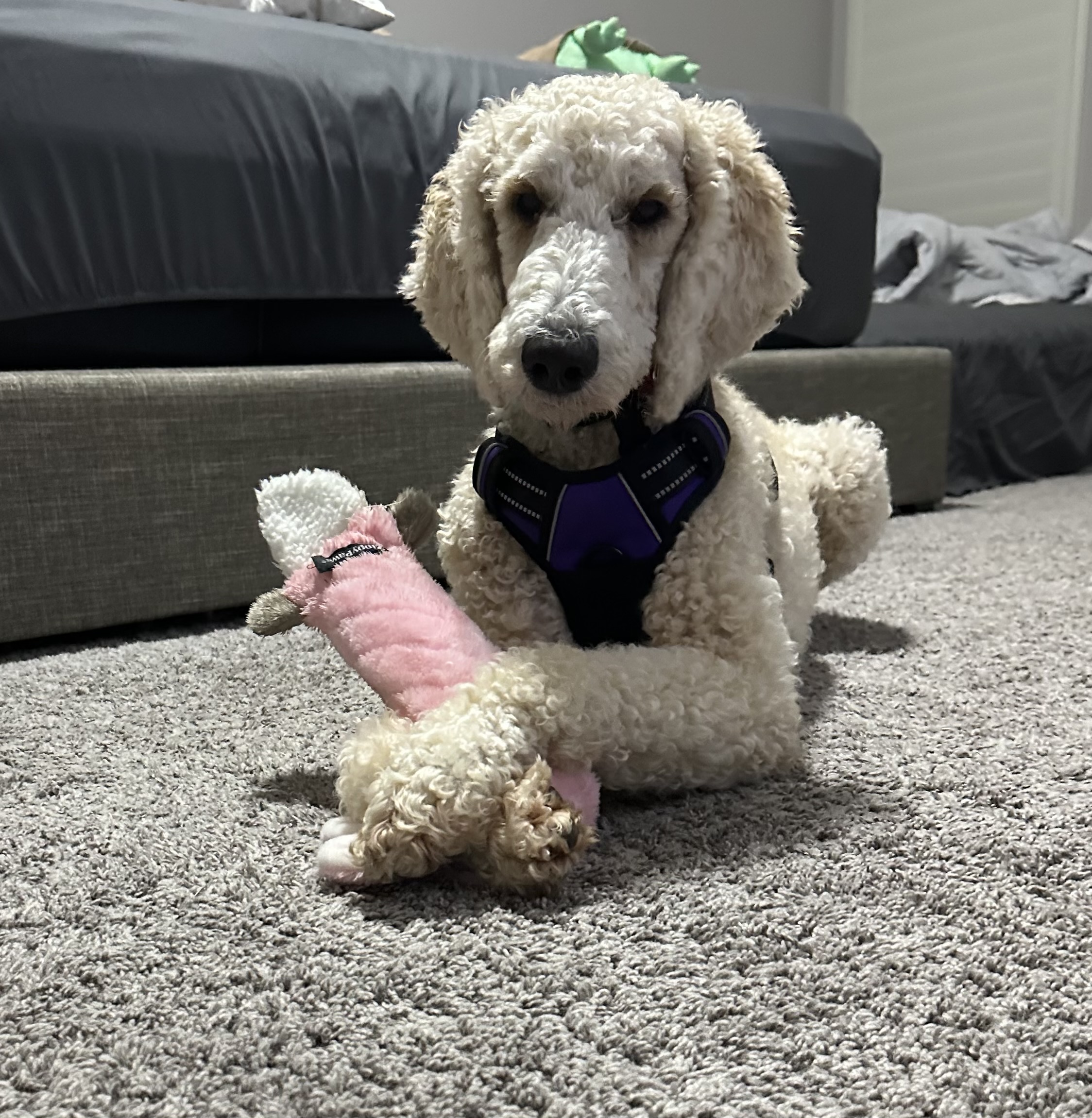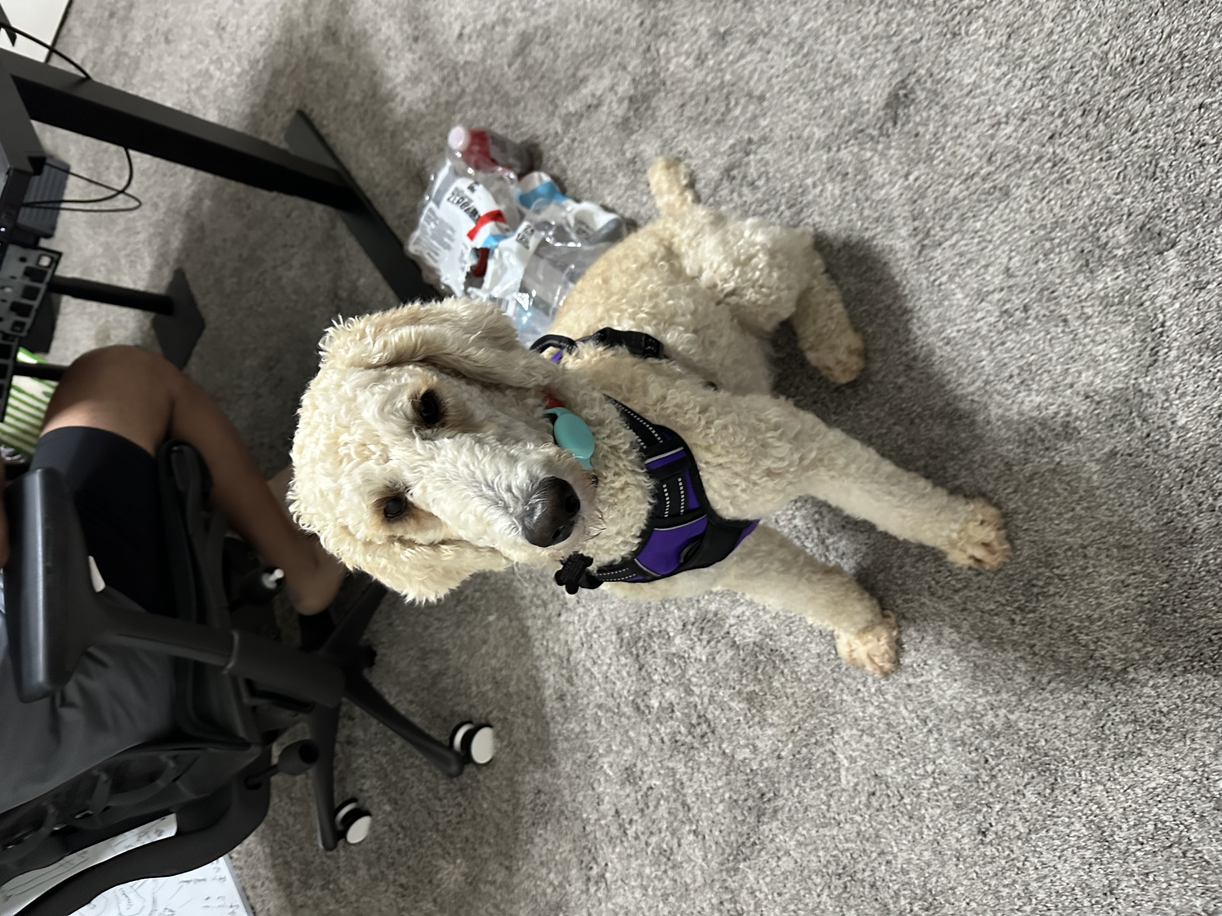 Hi there, I’m Lumi! I’m a 1-year-old, 45-pound poodle mix with dreamy eyelashes, a heart full of love, and a soft spirit that’s just waiting to shine. My name means “light,” and once I trust you, I’ll glow with joy every time you walk into the room. I’m gentle, affectionate, and happiest when I’m near my person—especially if you work from home and have a calm, peaceful vibe.