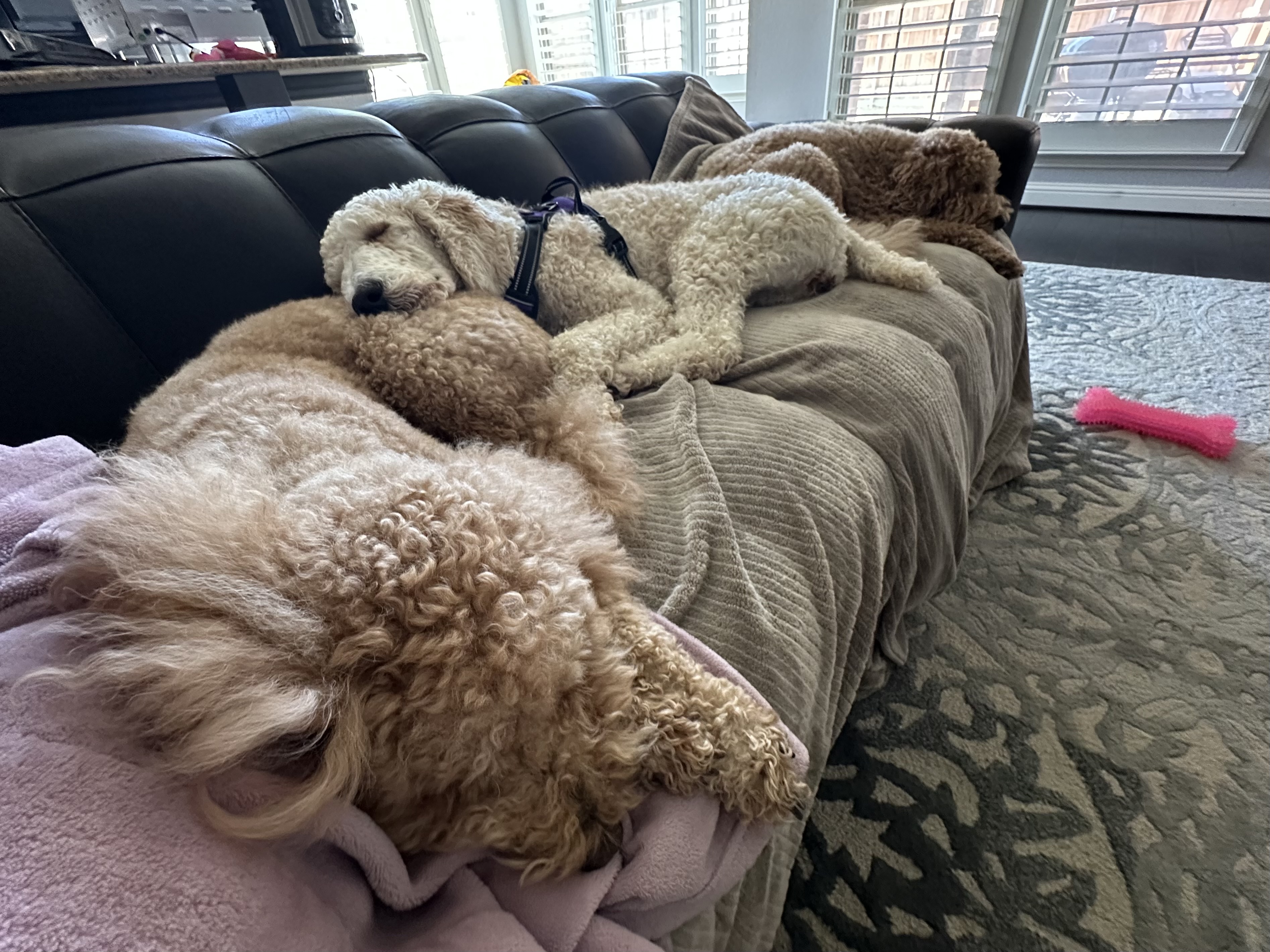 My foster says I have the sweetest morning zoomies around 6:30 AM, followed by a potty break, a walk, and then some well-earned rest. I’m potty trained, but I don’t always know how to ask to go out, so I’d love someone who keeps an eye on the clock. Evenings are for couch snuggles and winding down with my pack. I’ve even started enjoying car rides—especially when puppuccinos are involved!