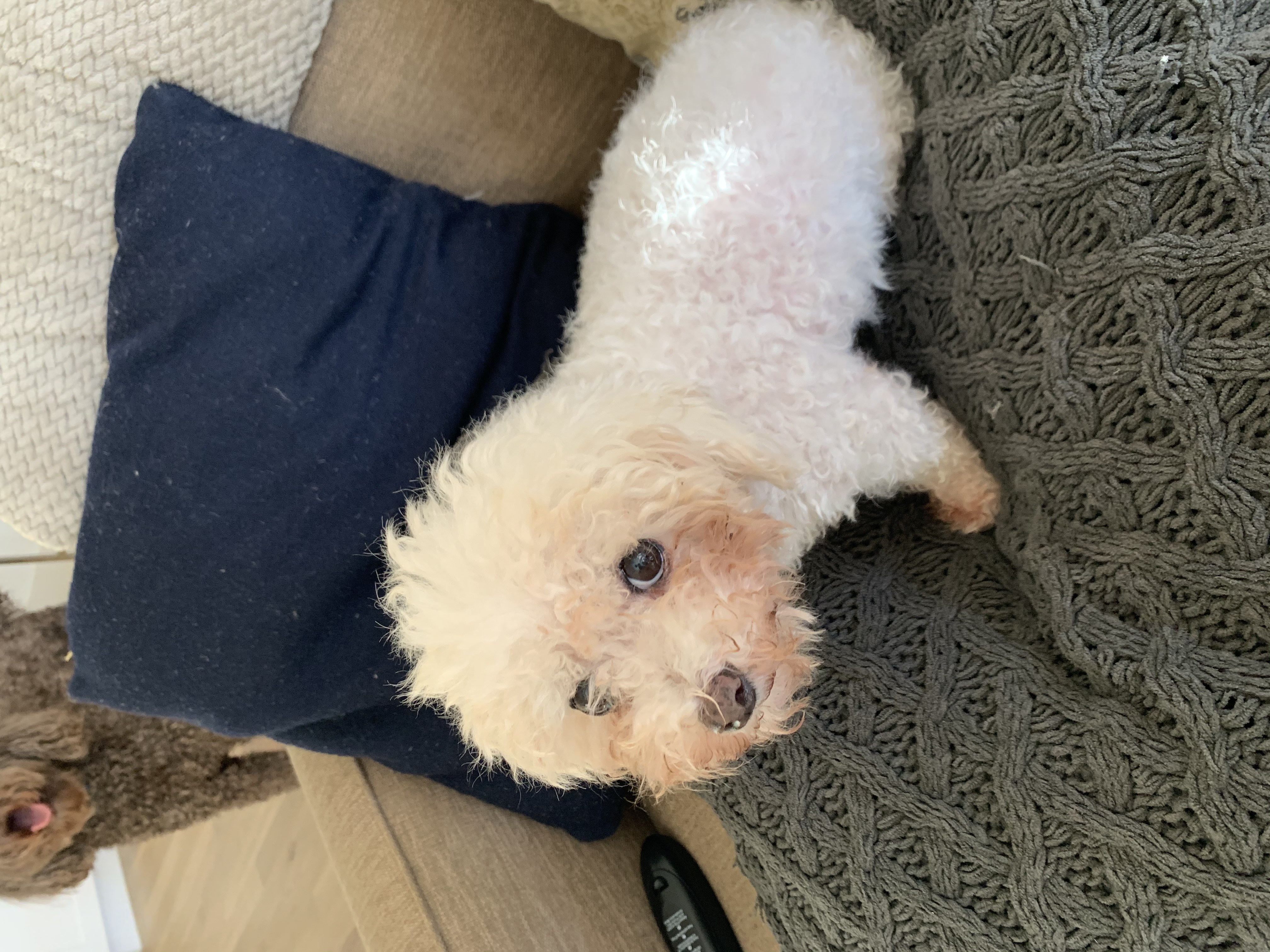 Hi, I’m Mabel! I’m a 10-year-old female miniature poodle weighing in at 8lbs. Although I’m a senior, you wouldn’t know it by my spunky personality! I also don’t shed, lucky you!