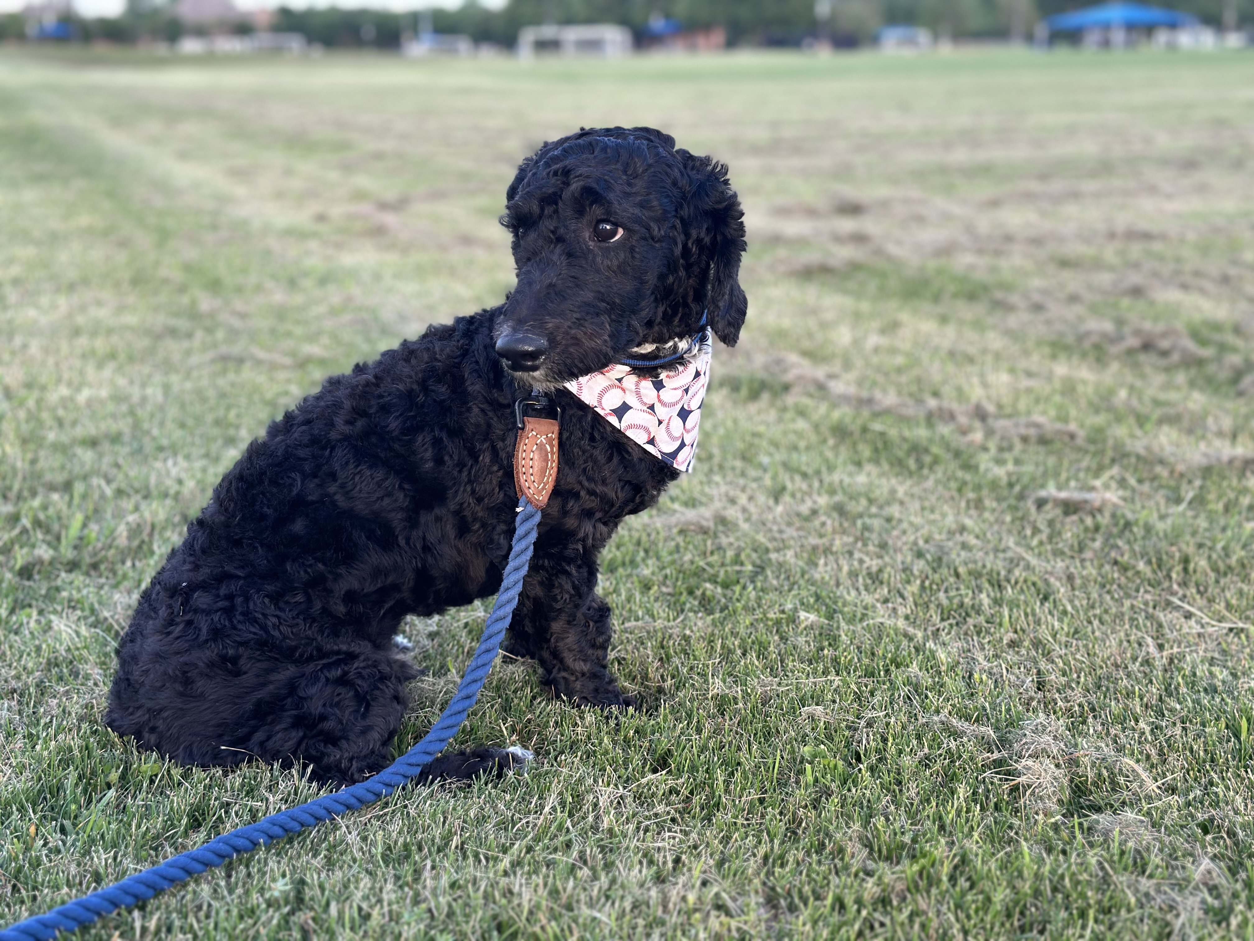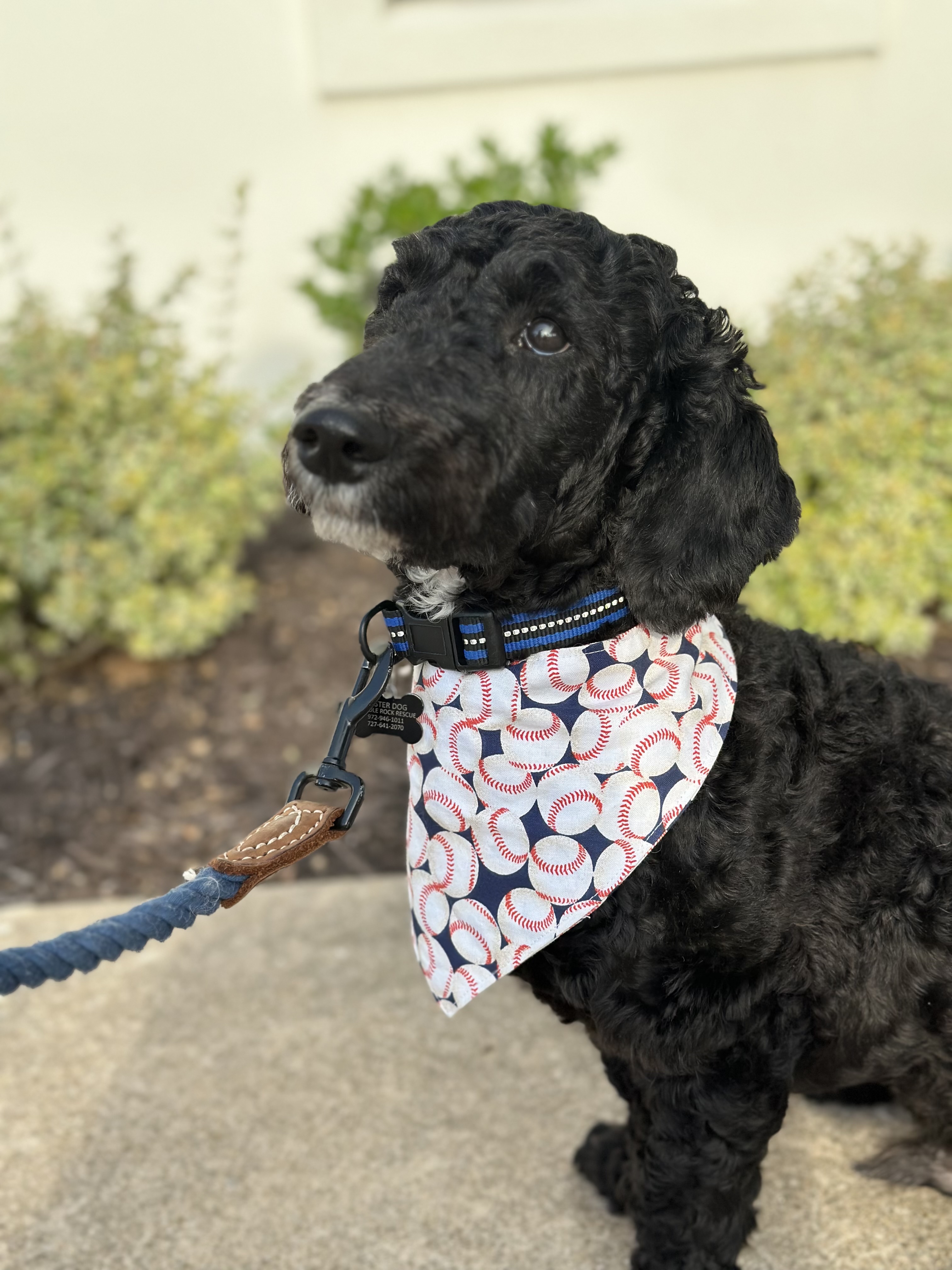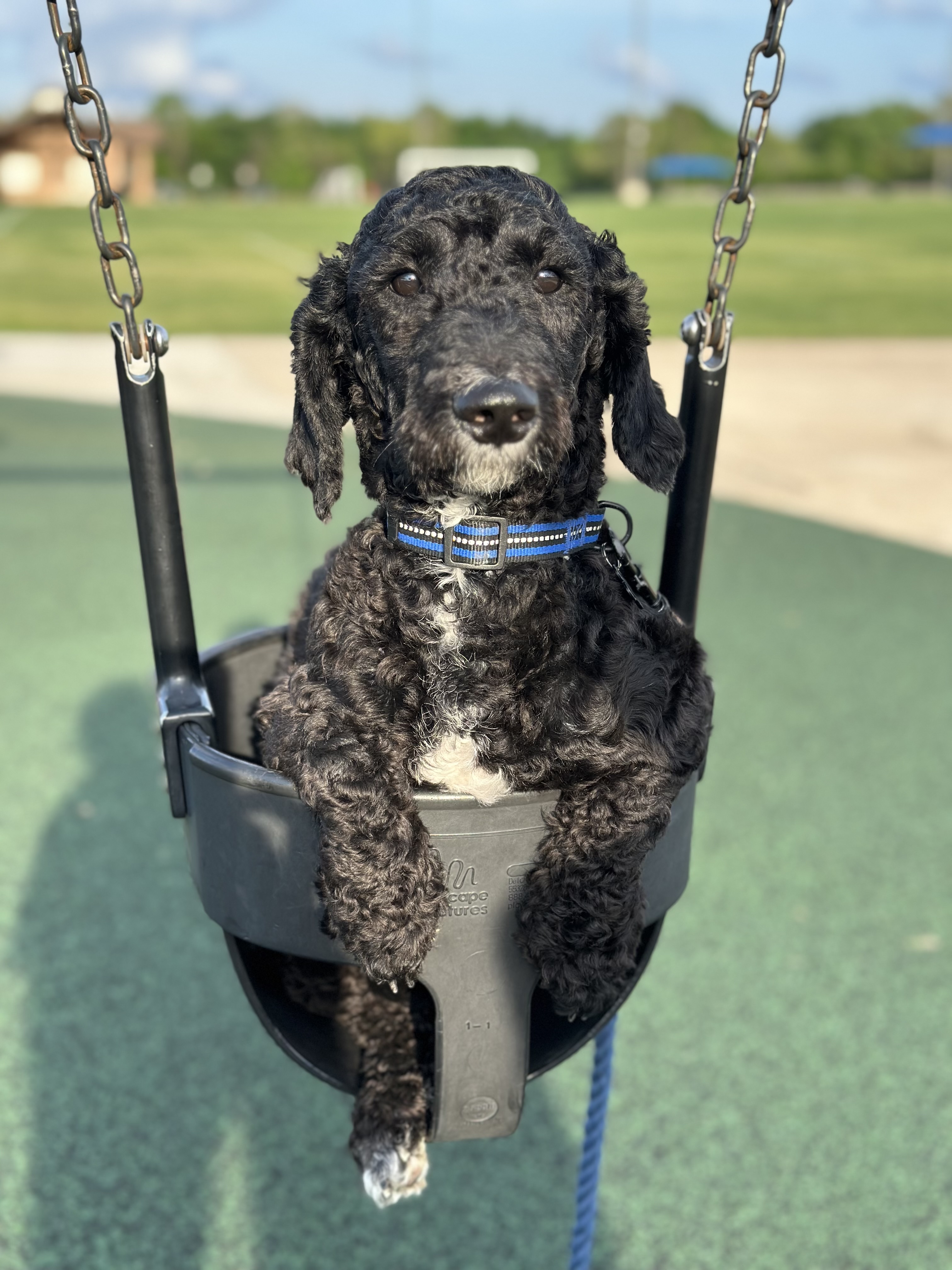 Hello, I’m Master Shifu (but my foster family members call me Otis). I’m an 8 month old poodle mix boy. I weigh 22 pounds. I was shaved upon being surrendered to DRR, but my curls are coming in nicely! I do not shed. I’m mostly black with white markings on my chin, chest, and back paws.