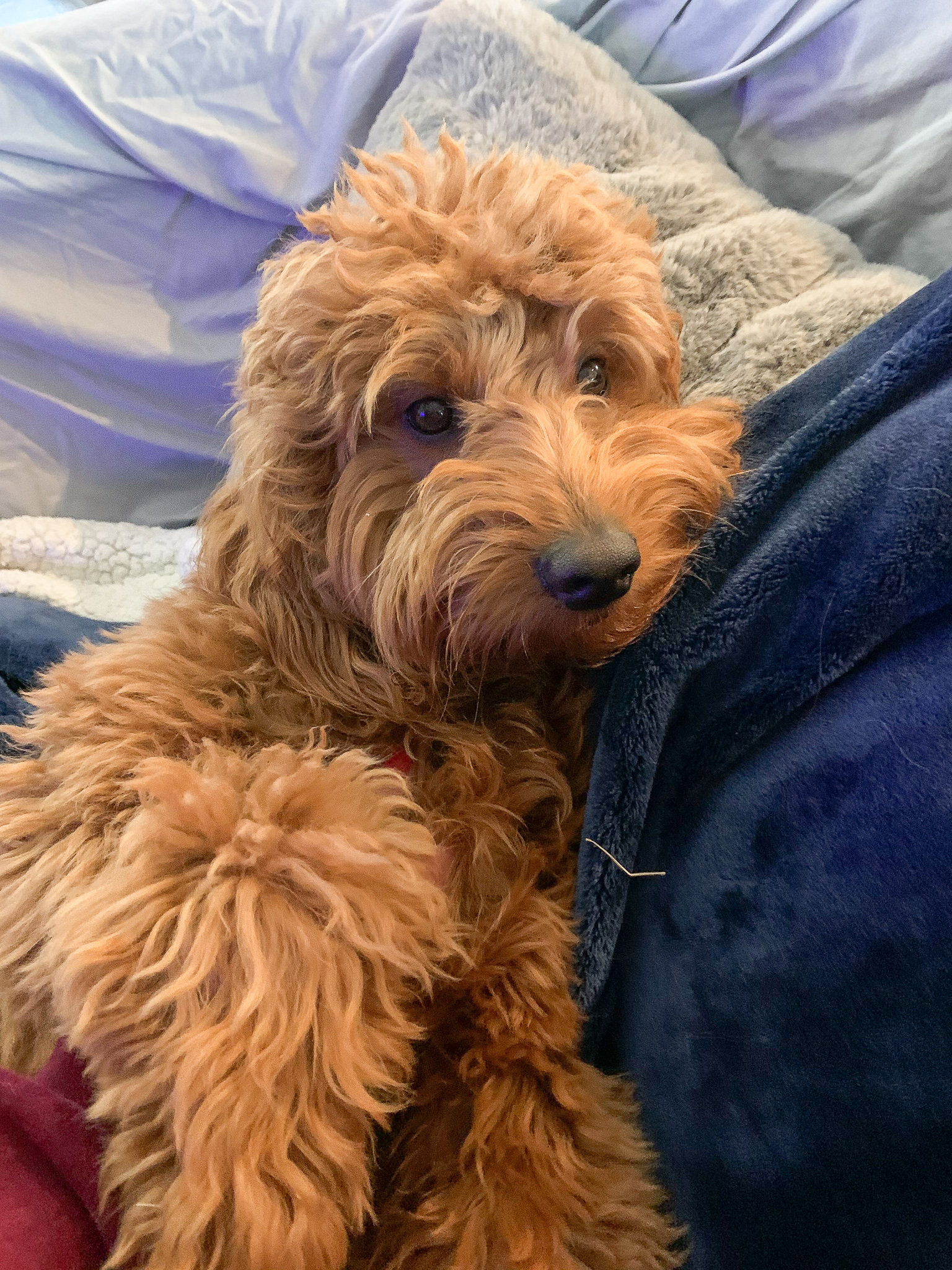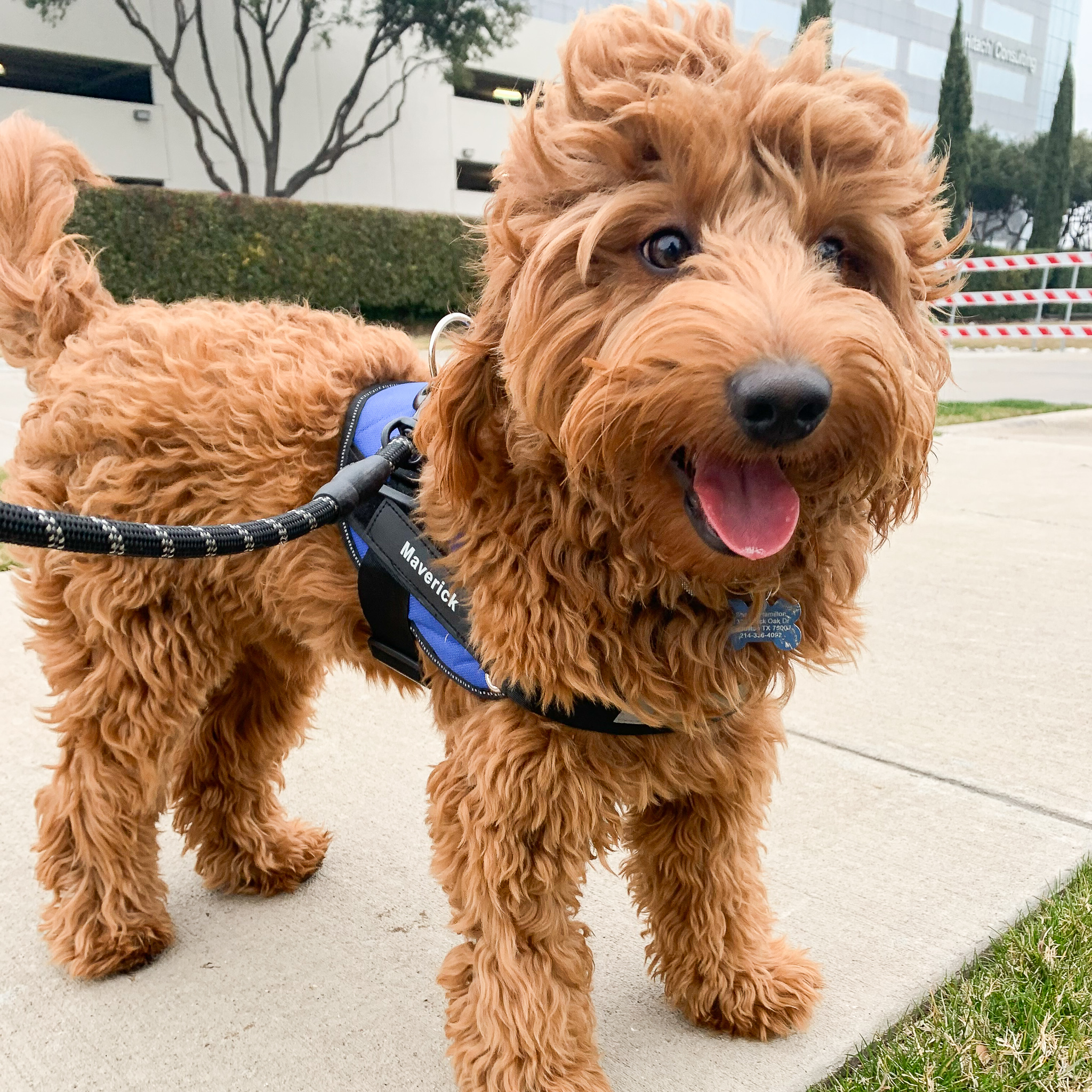 Hello, I'm Maverick! I'm a 9-month-old, 24 lb male Mini Goldendoodle. I specialize in cuteness and cuddles and I don't shed. I’ll need frequent brushing to keep my coat looking its best!