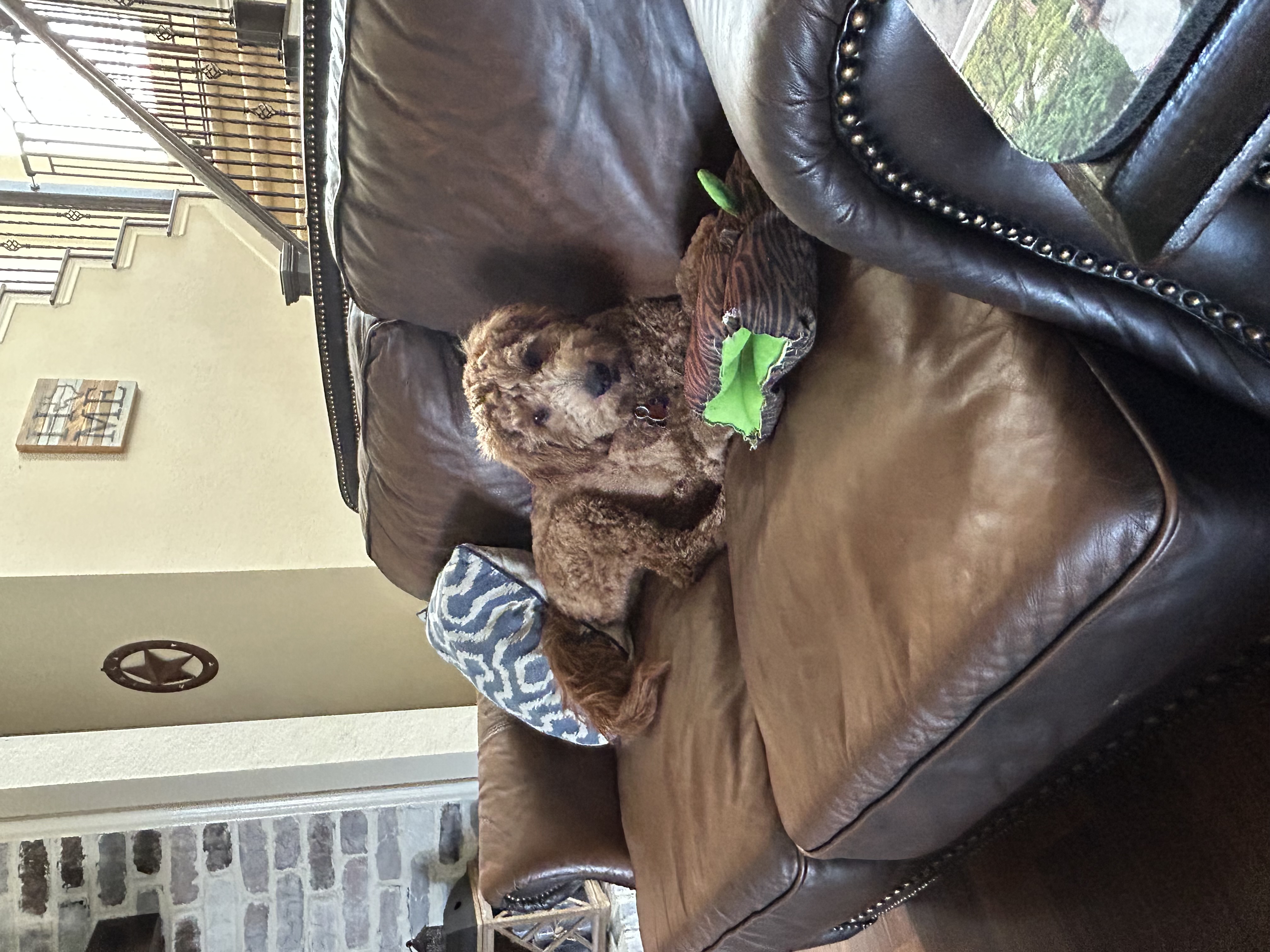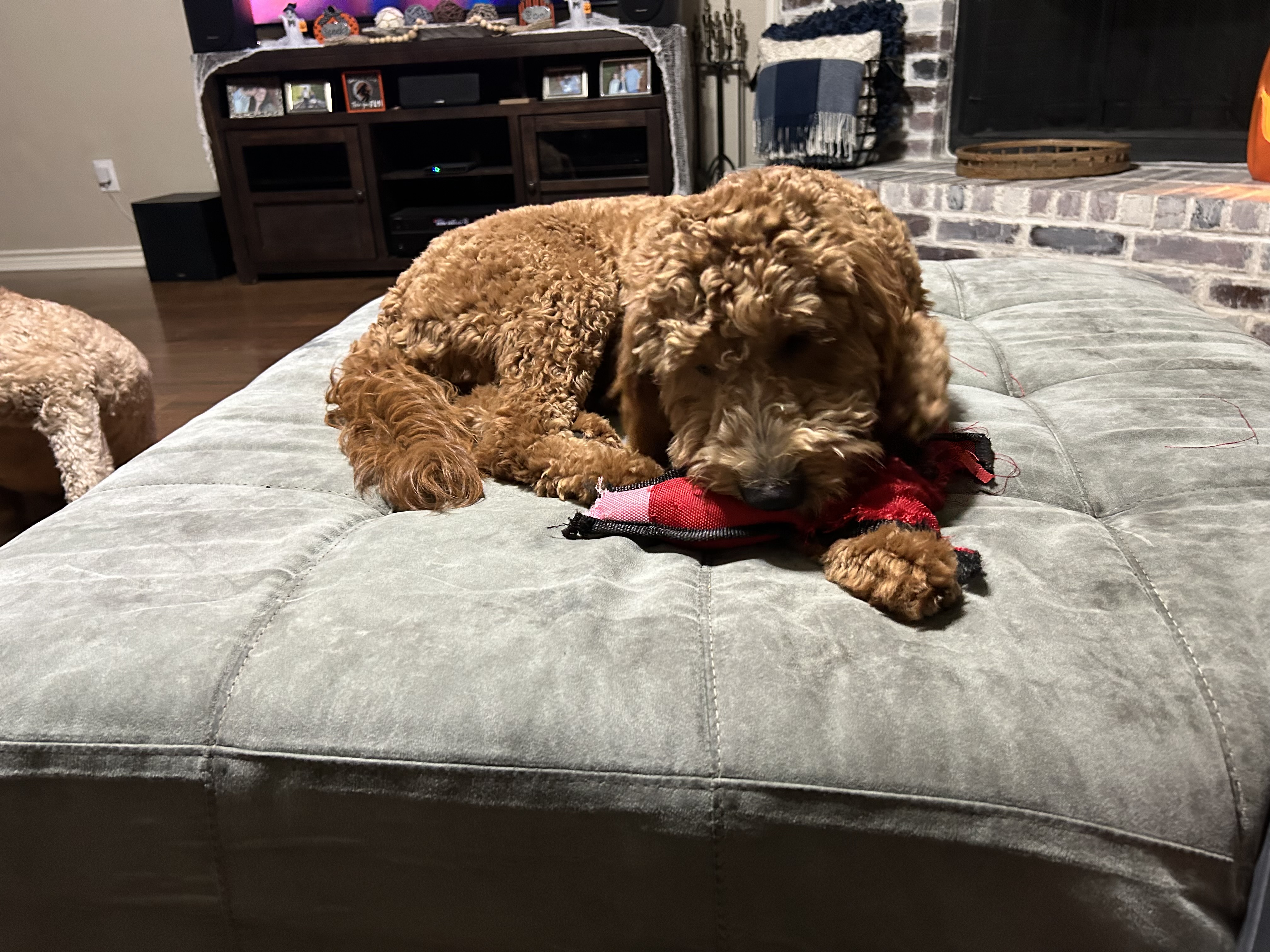 Hi I’m Maverick. I’m an 8-month-old Male Mini Goldendoodle, weighing in at 29 lbs.