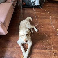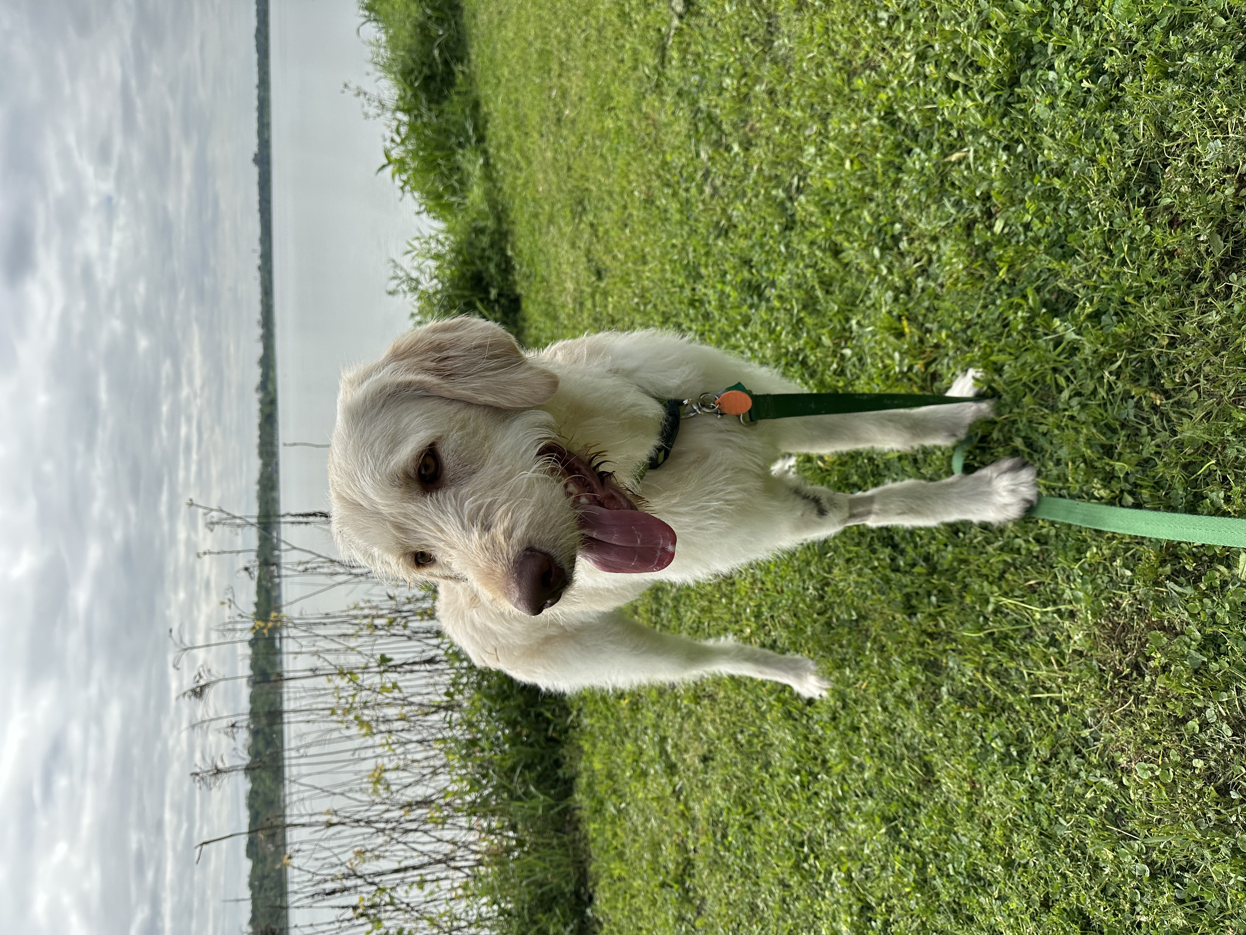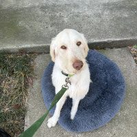 My foster mom keeps telling me I’m “so sweet,” but I can’t help it! I just love resting my head in her lap and following her around the house. I am a pretty chill guy. I love going out and about with my mom on weekends. We sit at restaurants, go into coffee shops, and walk the Katy Trail. I get lots of pats and scratches from people and I love it. I never bark, but I might put my nose on the table!