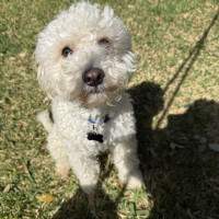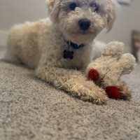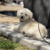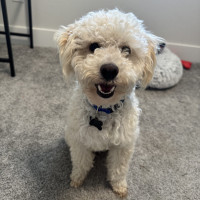 I’m already crate and potty trained, and I know how to “sit” and “shake” like a proper gentleman. I get along well with kids and other pups, though I prefer to enjoy my meals in peace (I’m a slow eater, what can I say?). My mornings start with a calm potty stroll and then it’s back to bed for more cozy time. I’m still figuring out how to play more, but I do enjoy a little game of fetch here and there.
