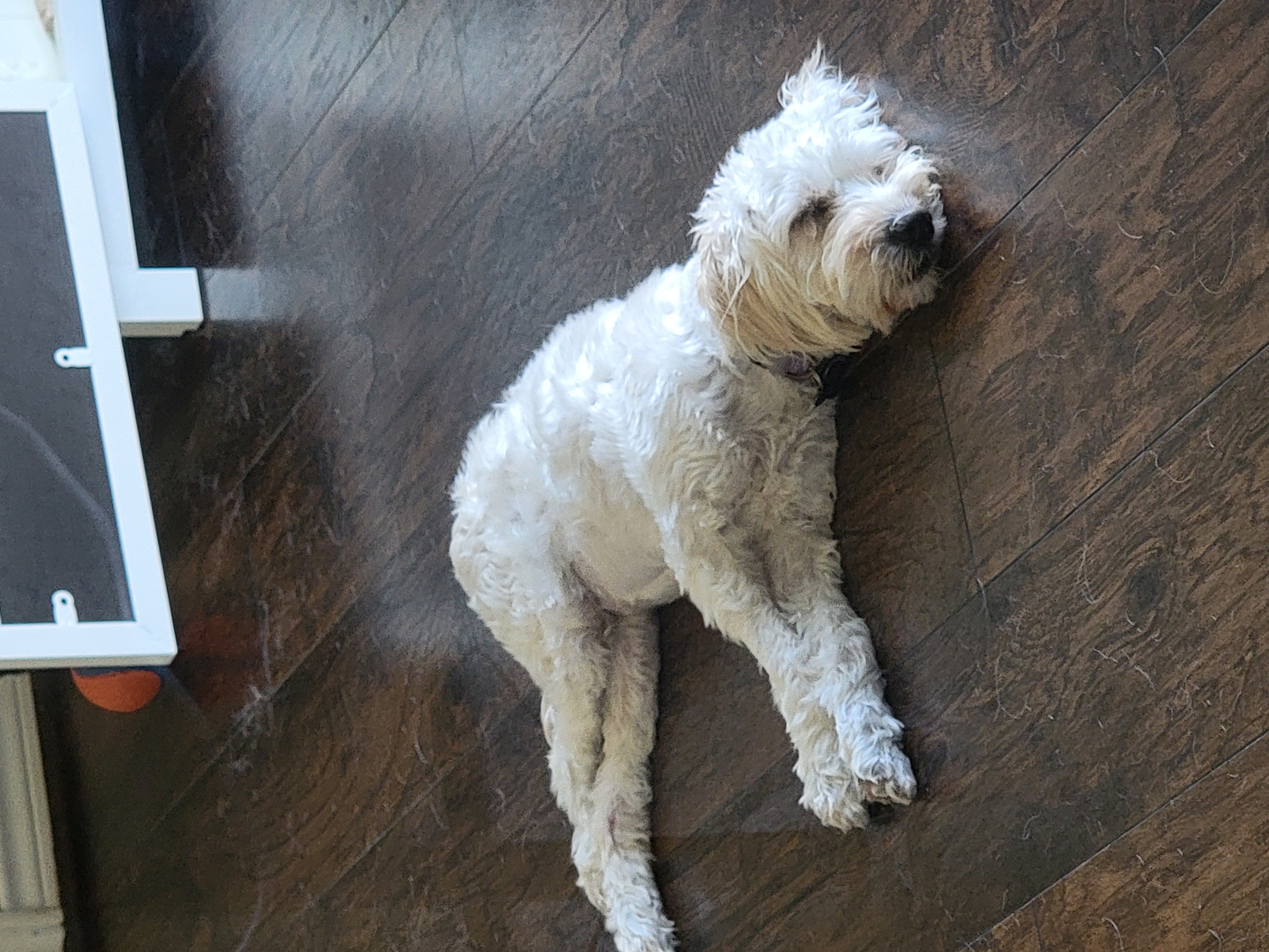 I’m Merritt—a 3-year-old mini poodle mix weighing in at about 17 pounds of fluffy fun and affection. I’m a lively little lady with a big heart and an even bigger personality. If you’re looking for a buddy who can keep up on walks but also crash on the couch with you afterward, I’m your girl.