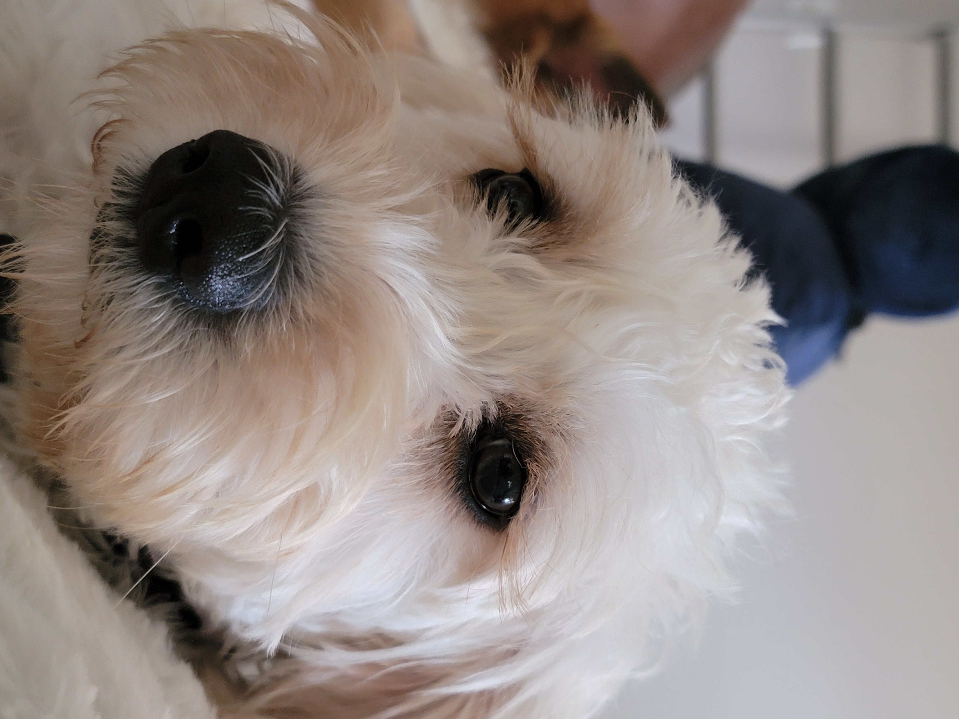I love being close to my people and my dog friends—whether that means wrestling, exploring, or just snuggling up with my paws wrapped around your wrist (it’s my cutest move, trust me). I’m smart and eager to please, already good on a leash, and learning all about house manners, polite greetings, and indoor voices. I pick up new things quickly—maybe a little too quickly—so you’ll want to keep an eye on me when I’m feeling curious!