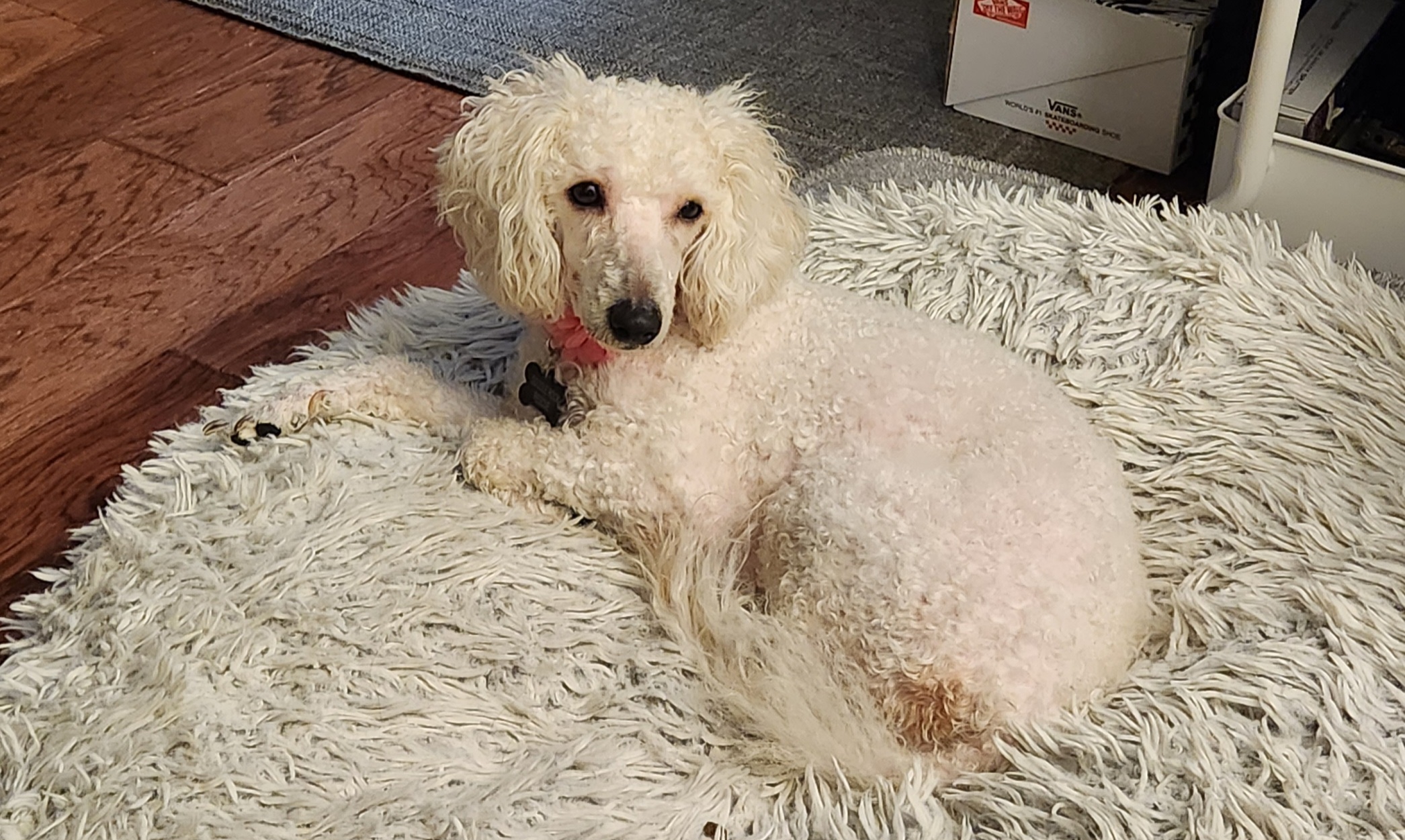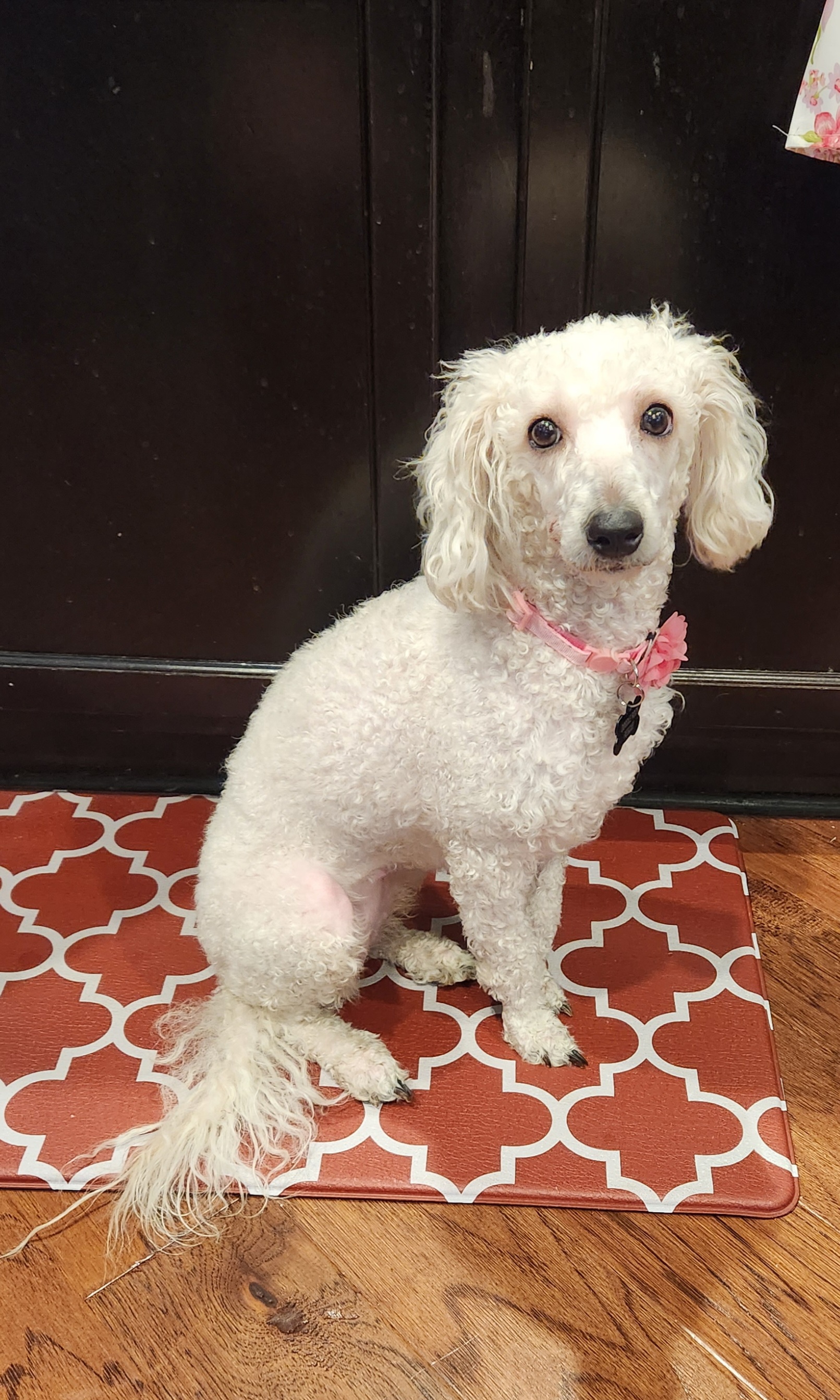 My name is Mia and they say I'm a female poodle mix, just over a year old, weighing 15lbs.
