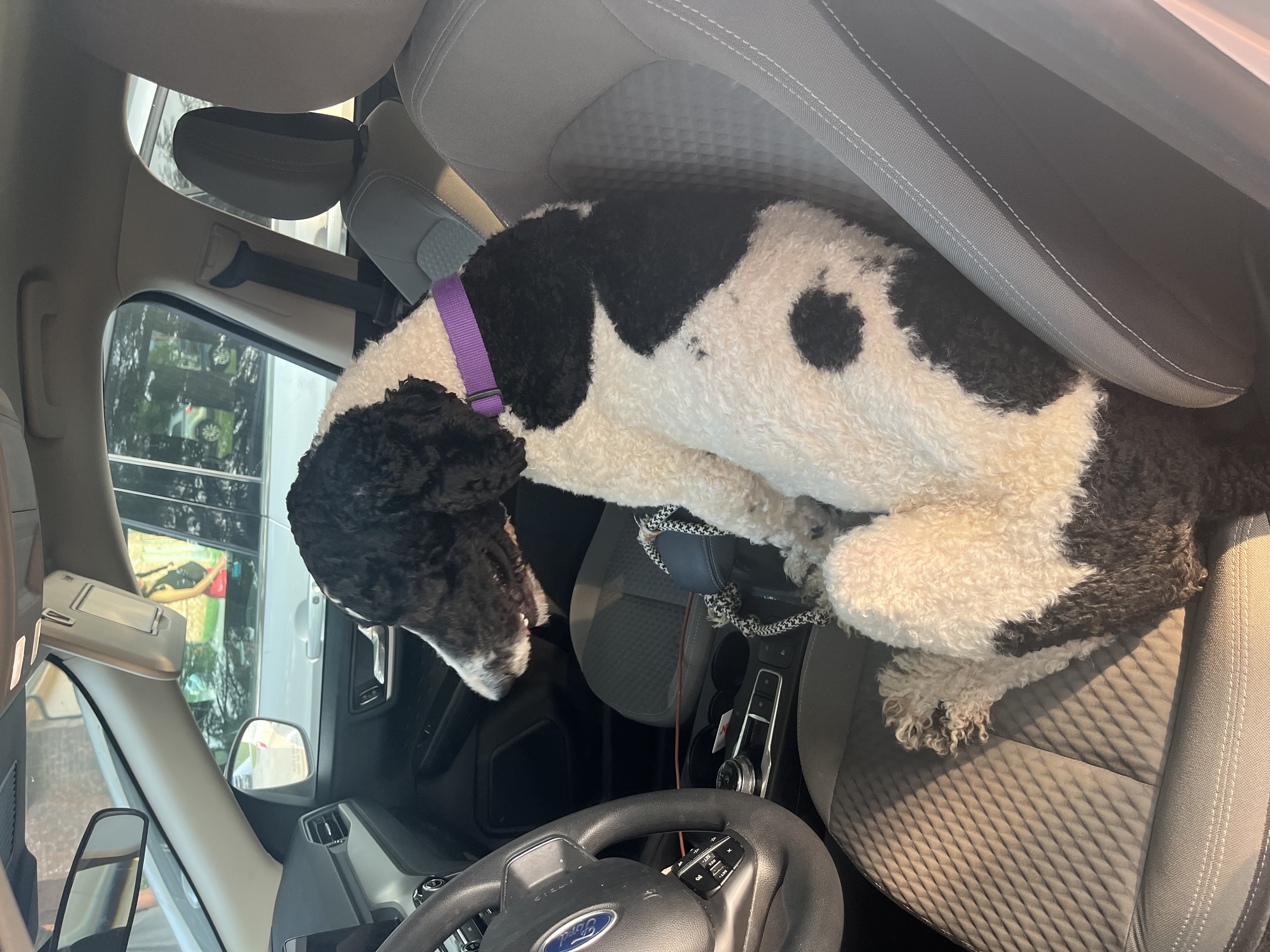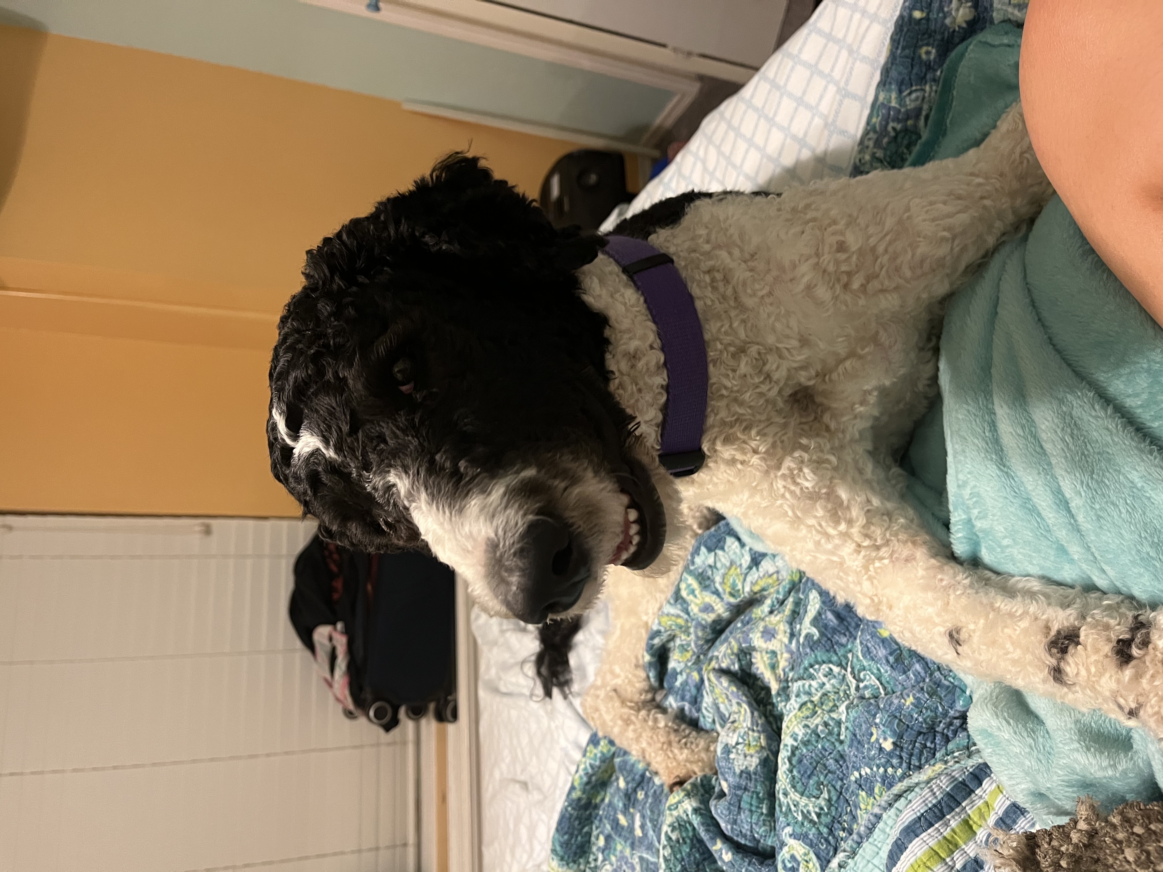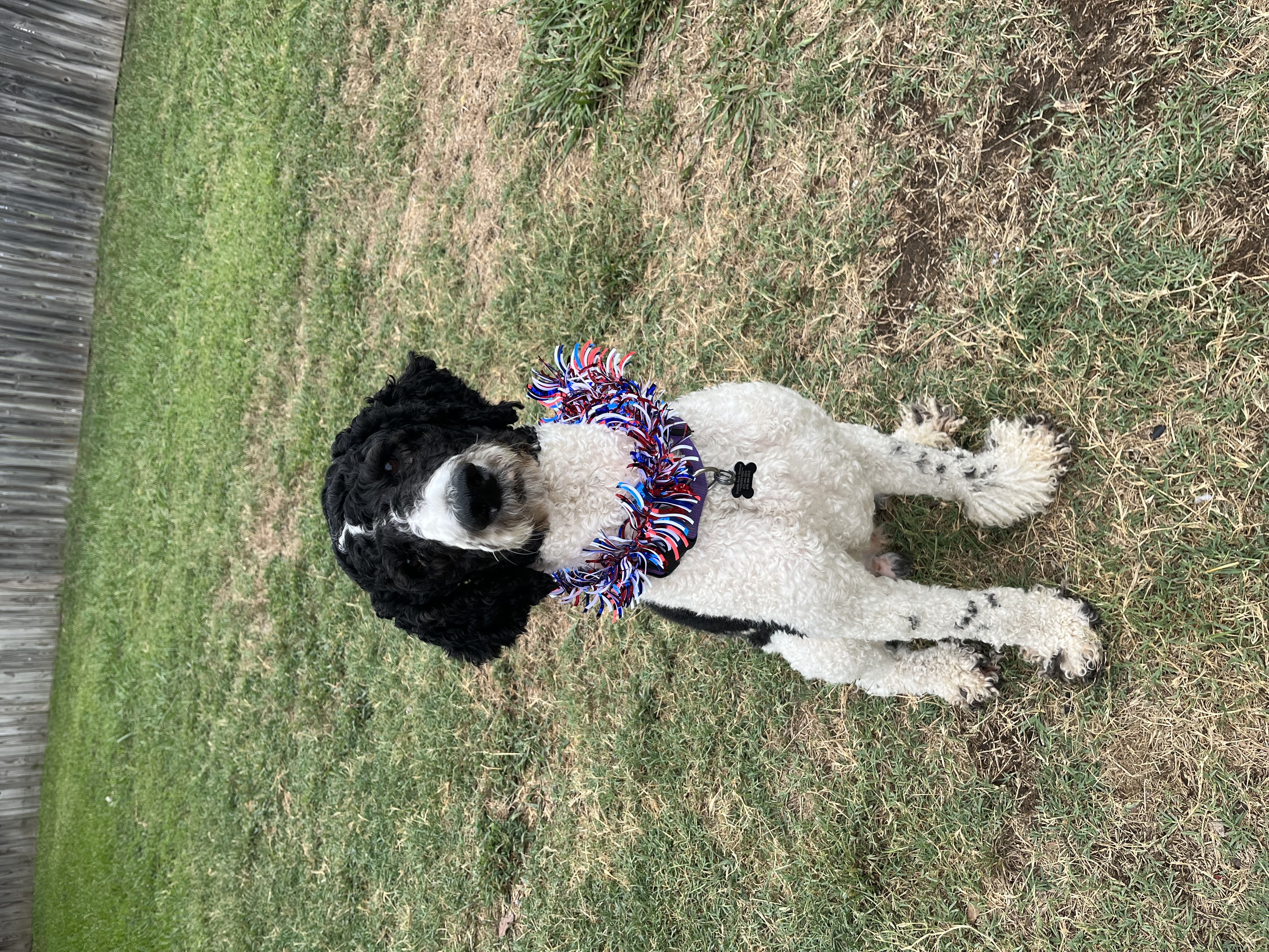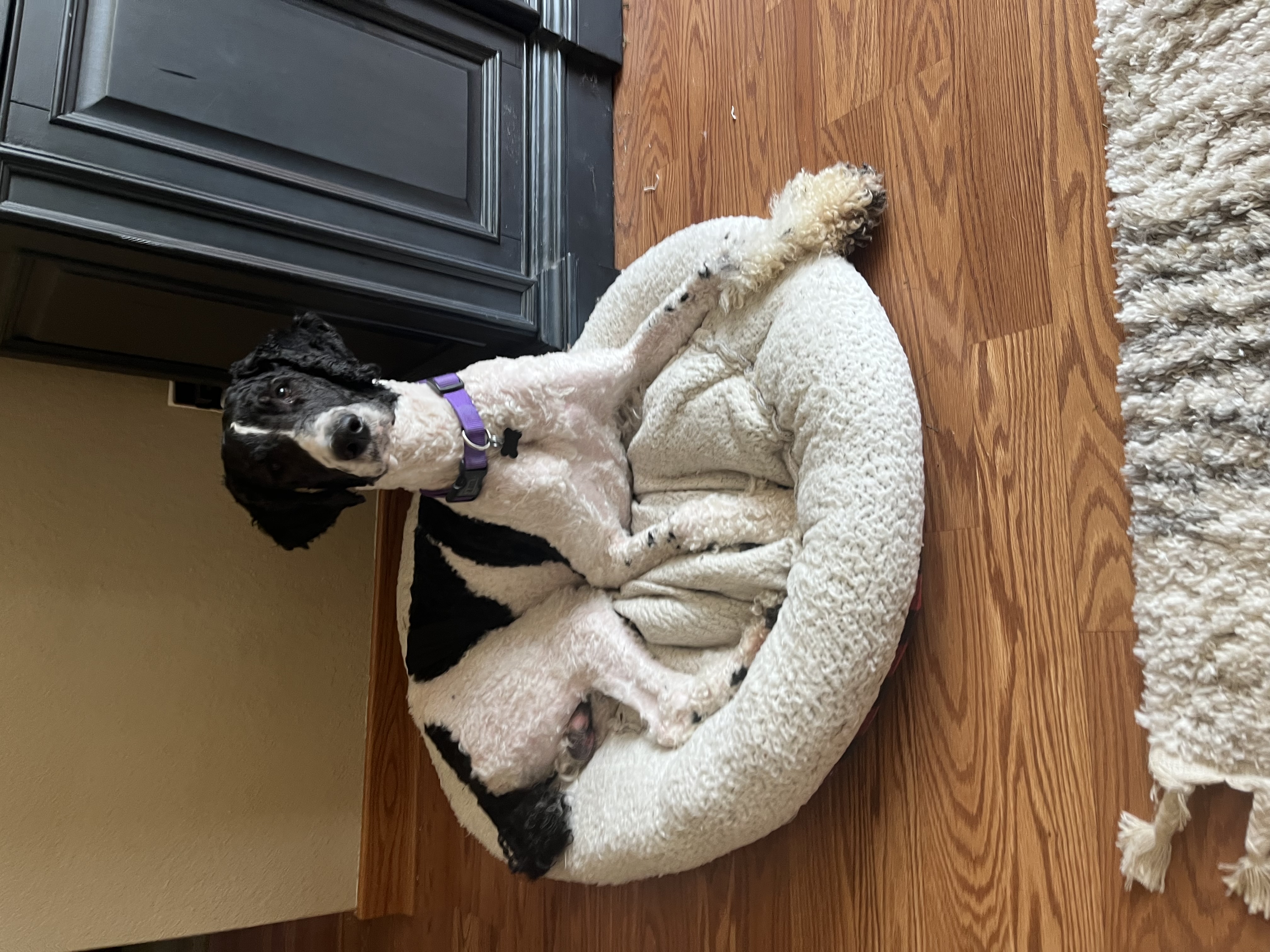 Hi. My name is Milo and I’m a 2-year-old Male Standard Poodle. Last time I checked, I weighed in at 50lbs. I’m a tall boy and I like to stand on my hind paws and look you in the eye to see what you’re thinking as well as letting you know what I’m thinking! I don’t seem to shed and have tight curls.
