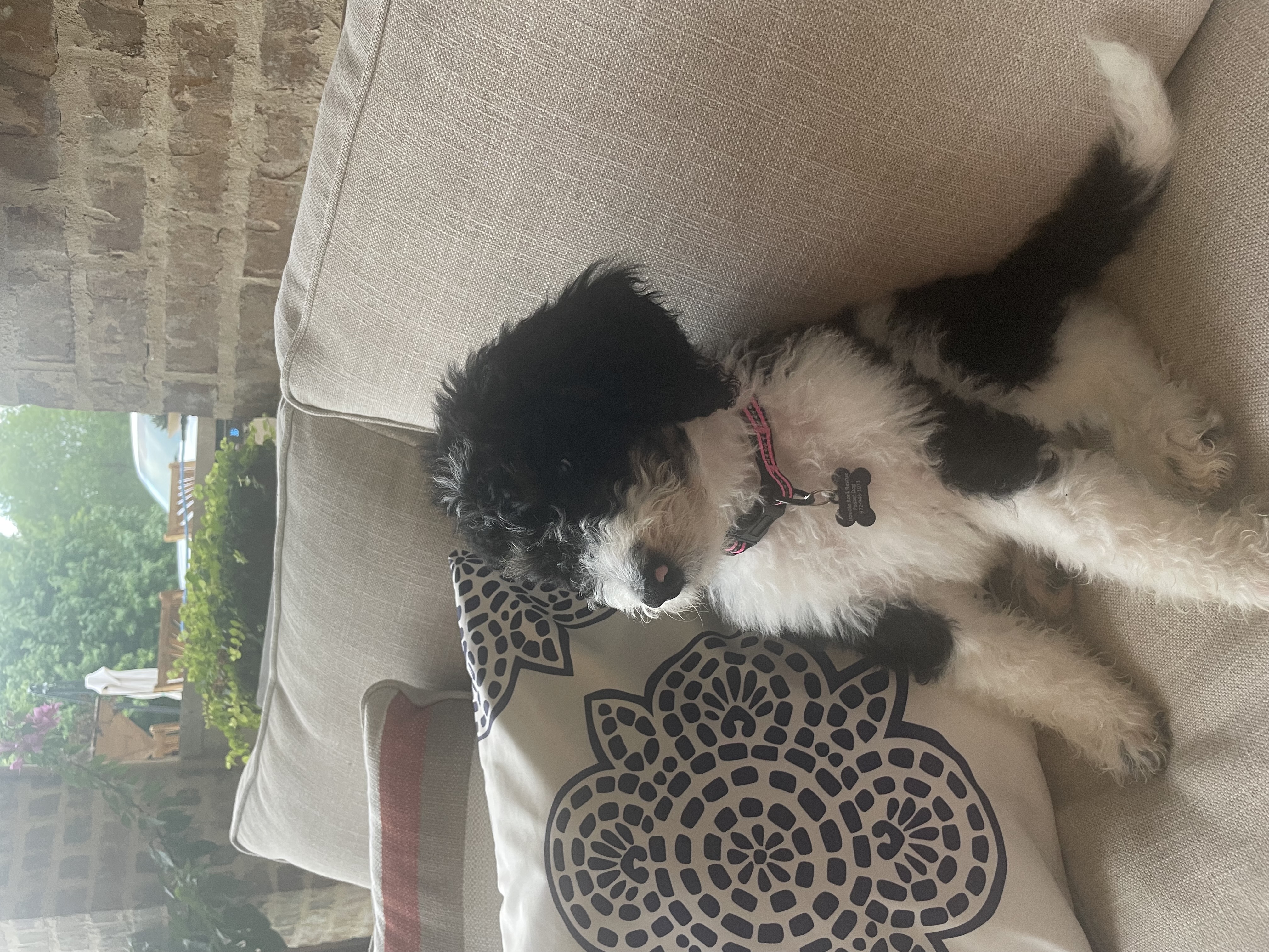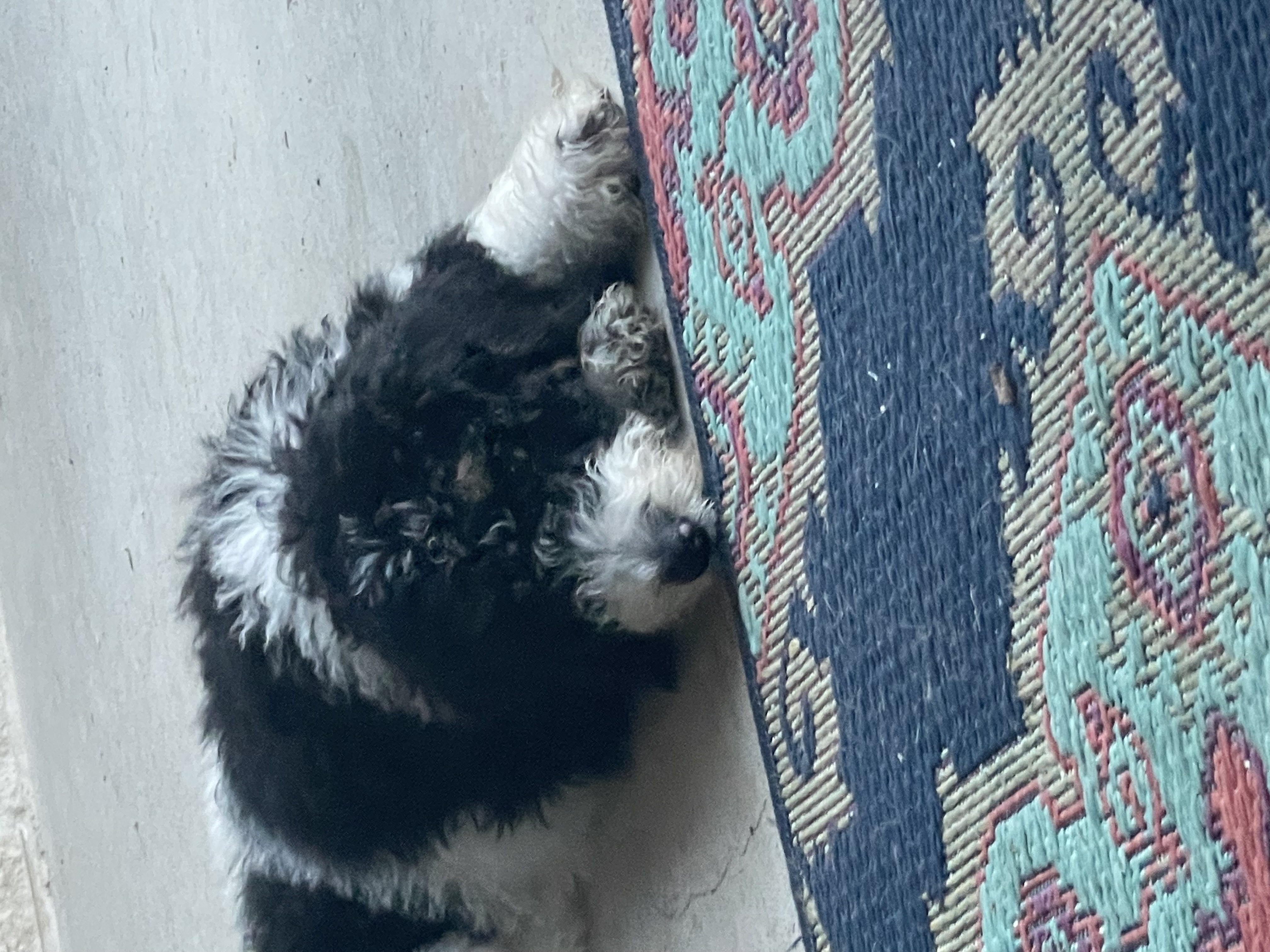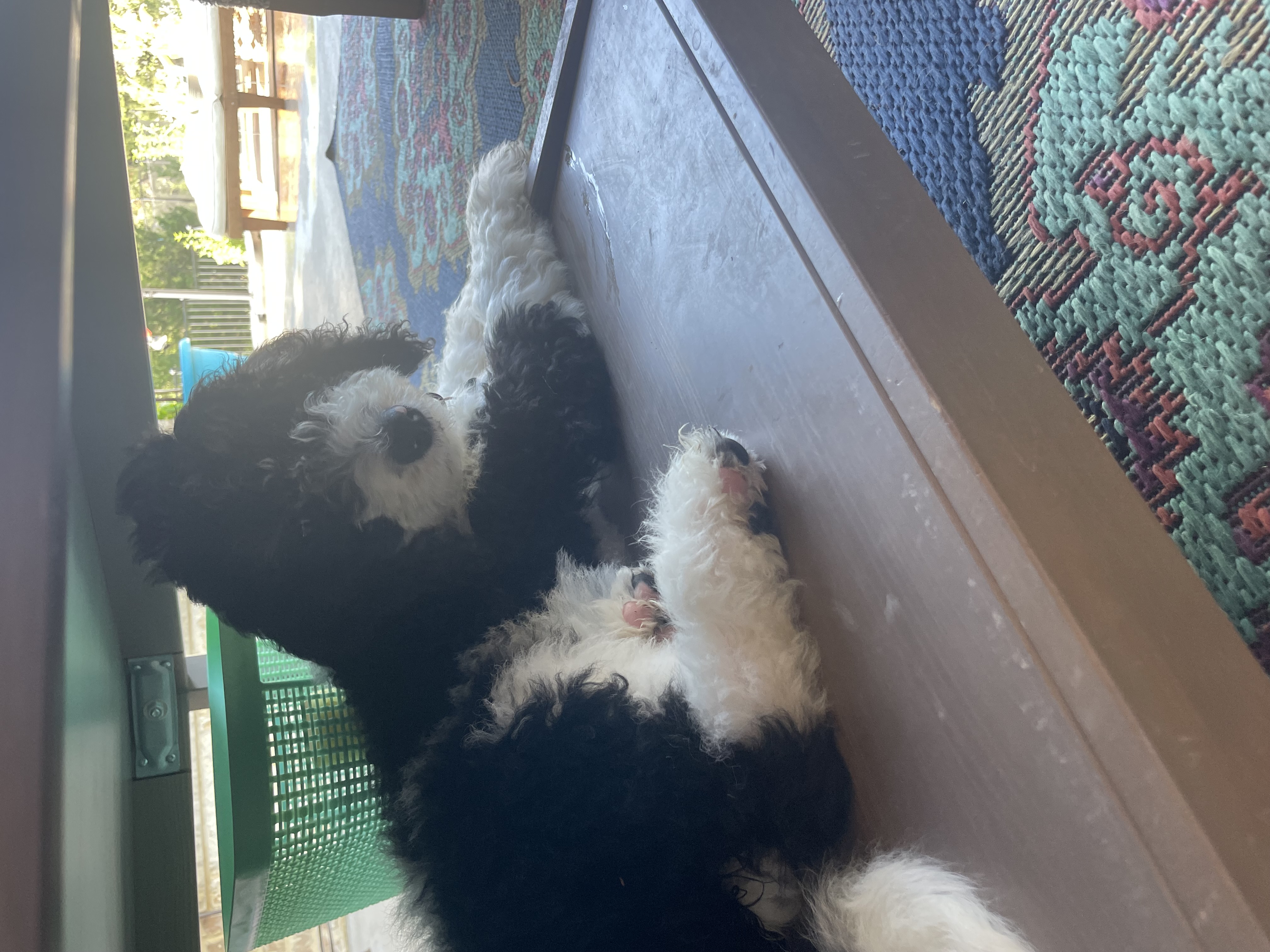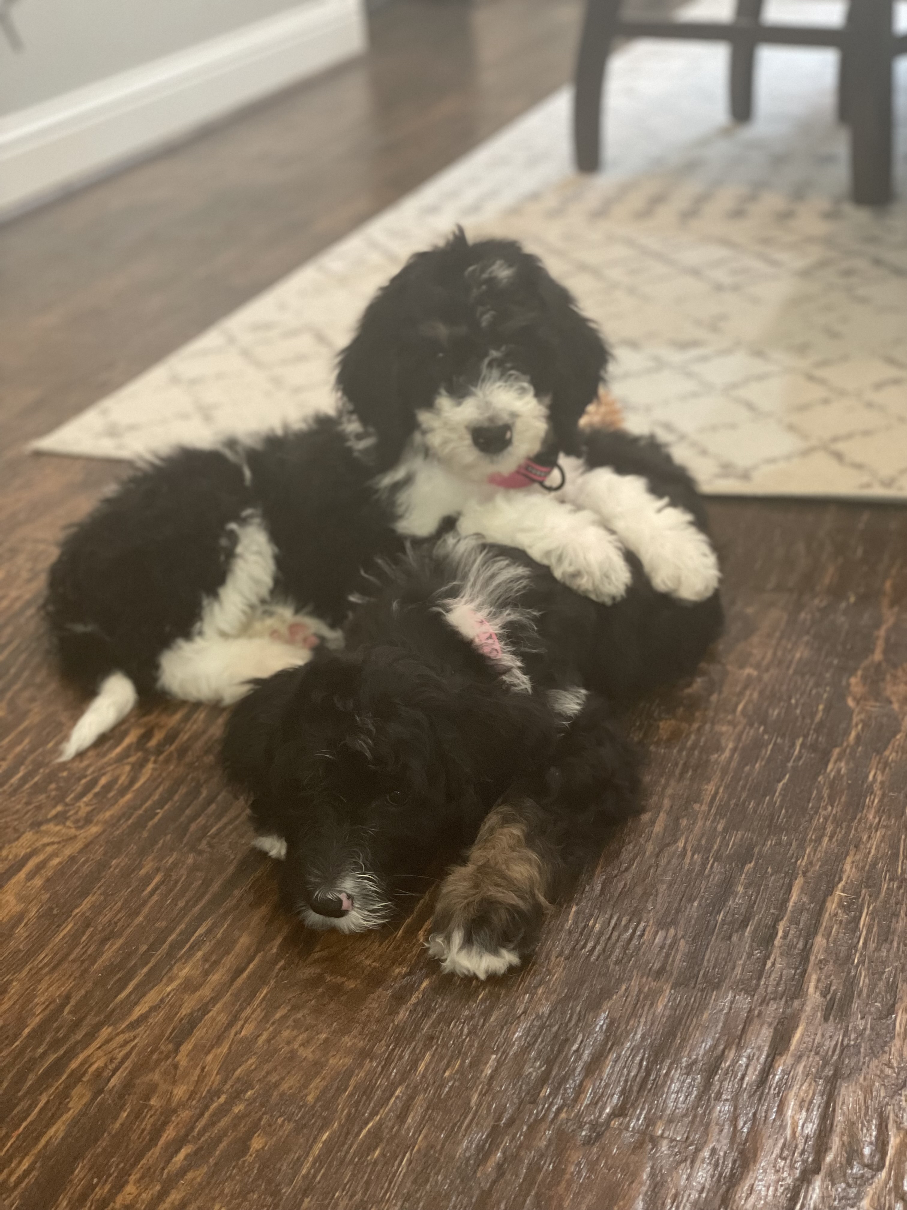 Hi my name is Mirabel and I am a 12 week old female Bernedoodle. I weight about 15 lbs now and will grow to be around 60-65lbs fully grown.