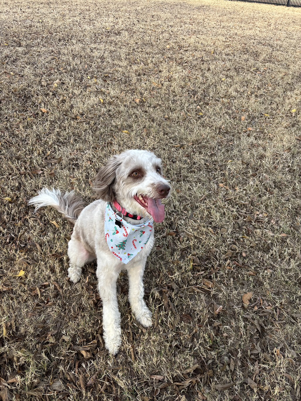 Hello, I’m Missy! I’m a 2.5-year-old Aussiedoodle, about 38 pounds, with a big personality and an even bigger love for playtime. If you ever see me walking around the house with a ball in my mouth, just know I’m politely (but very hopefully) asking for a game of fetch. I have lots of energy and absolutely love long walks, backyard zoomies, and free-running at the dog park. Getting my daily exercise helps me feel my best, and afterward I’m perfectly happy to relax nearby while you work or unwind—especially if belly rubs are involved.