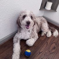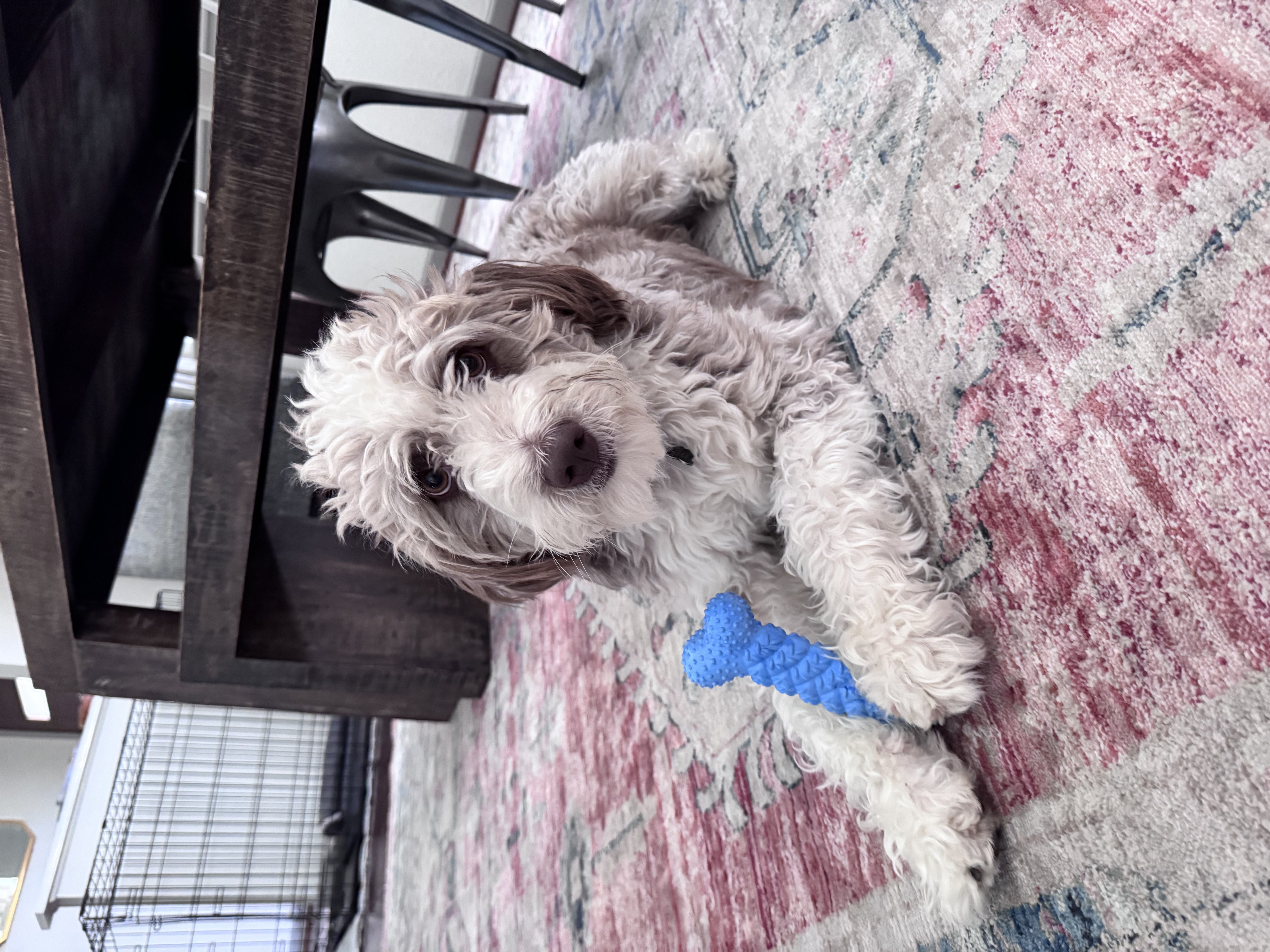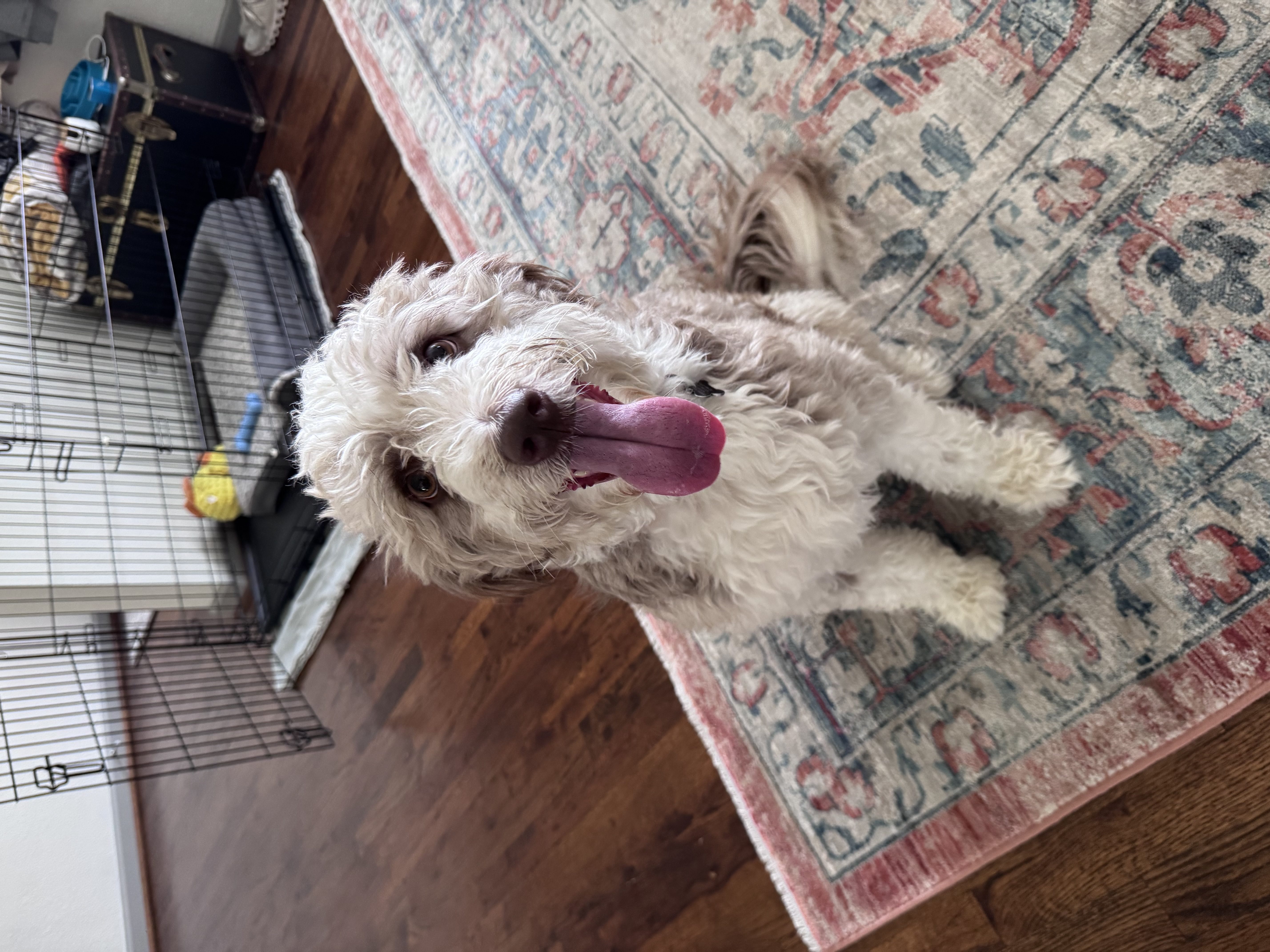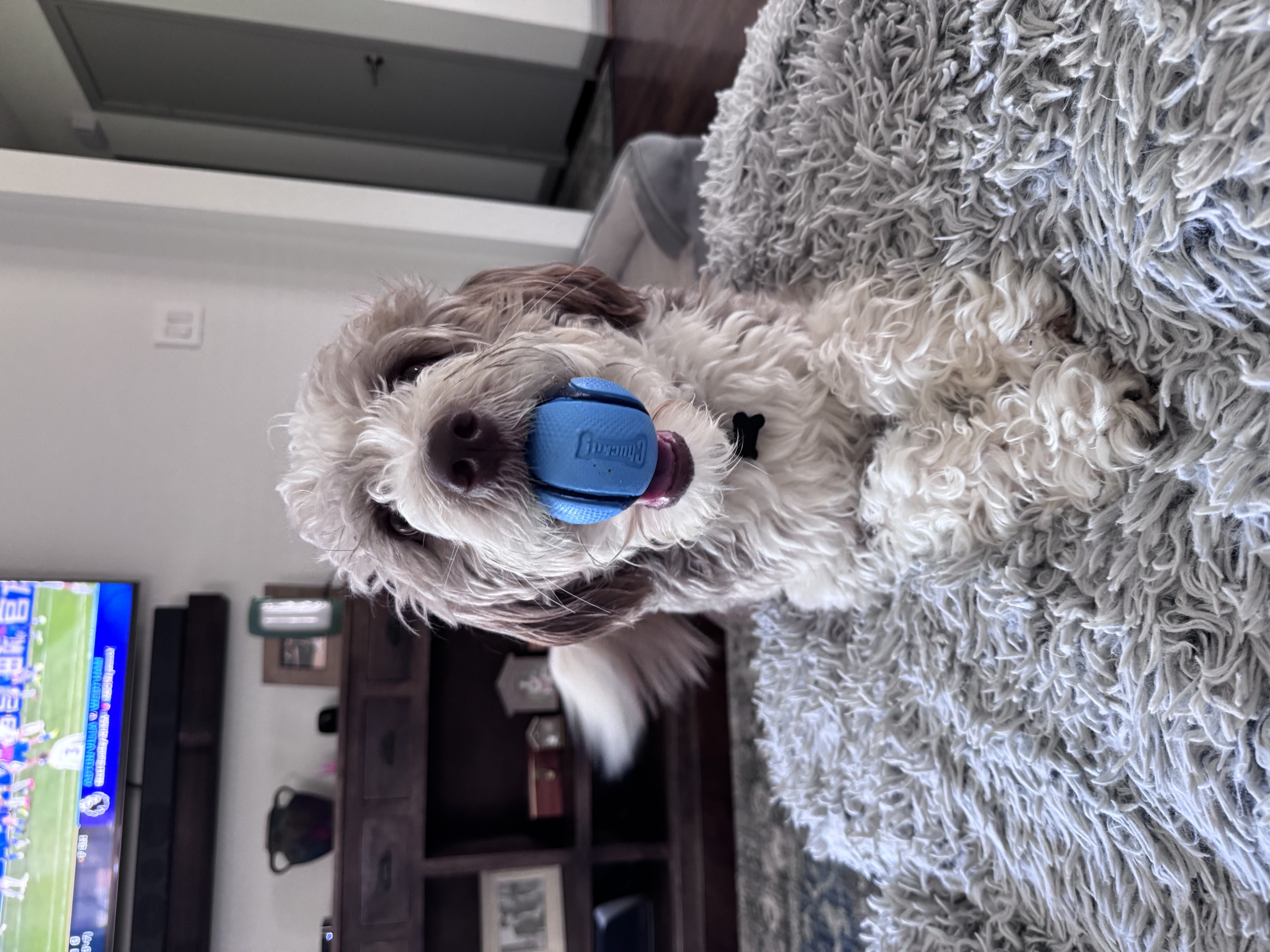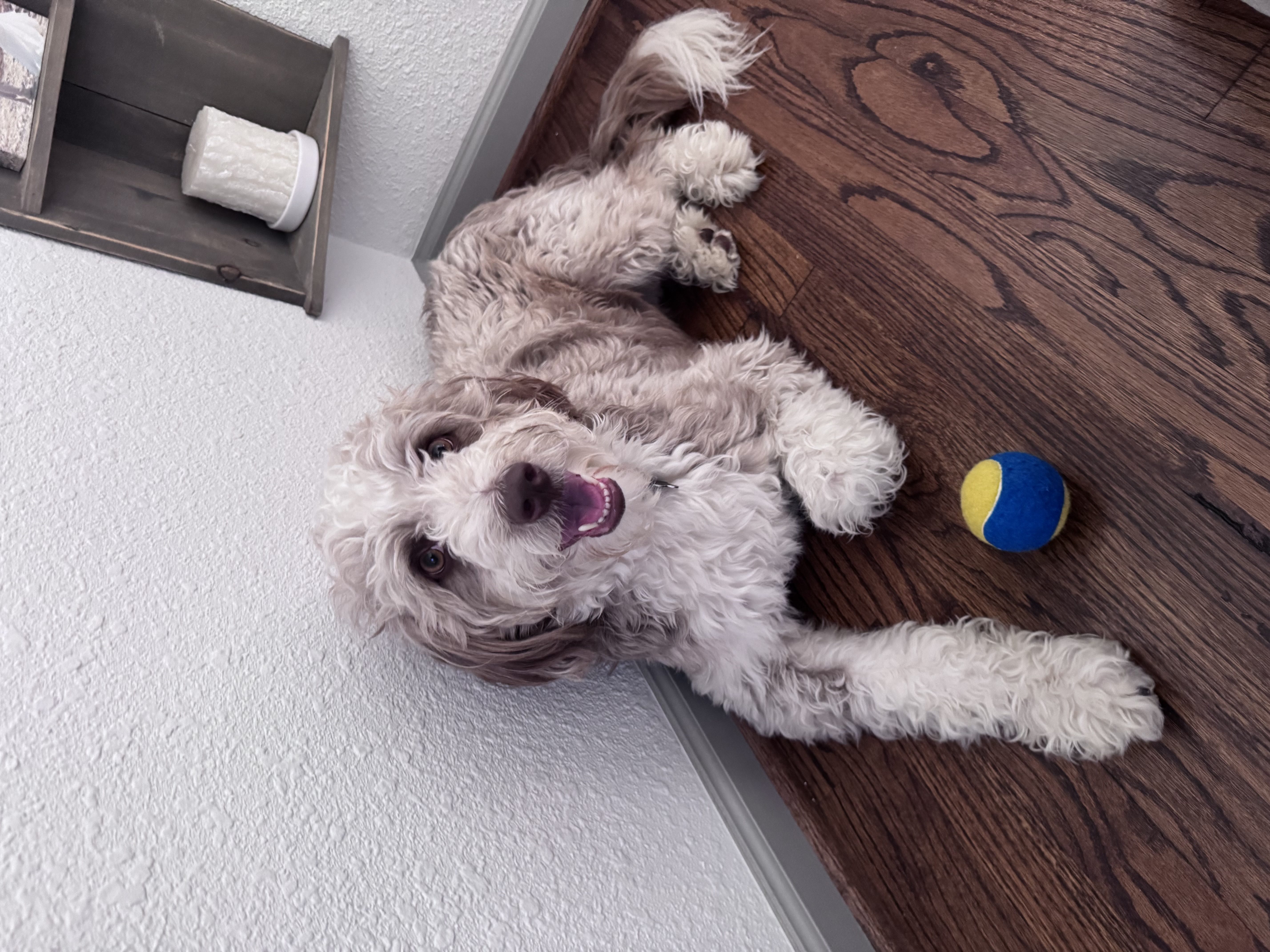 Hi, I’m Missy! I’m a 2.5 year old Aussiedoodle, about 38 pounds, with a big personality and an even bigger love for playtime. If you see me carrying around a ball, just know I’m politely asking for a game of fetch. I have lots of energy and absolutely love long walks, backyard zoomies, and running free at the dog park, so I’m looking for an active home that will include me in daily exercise and fun.