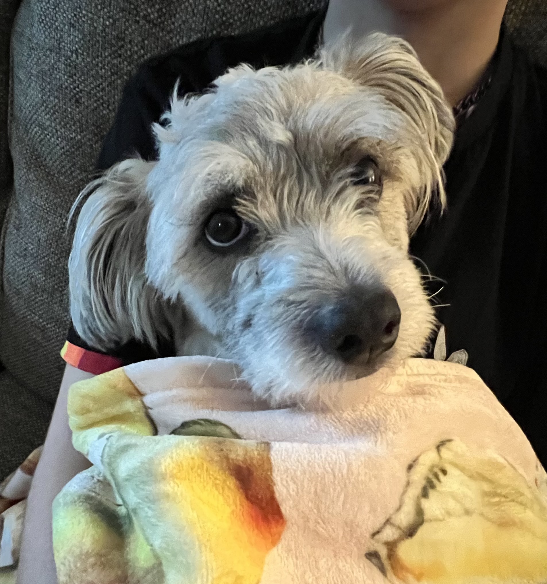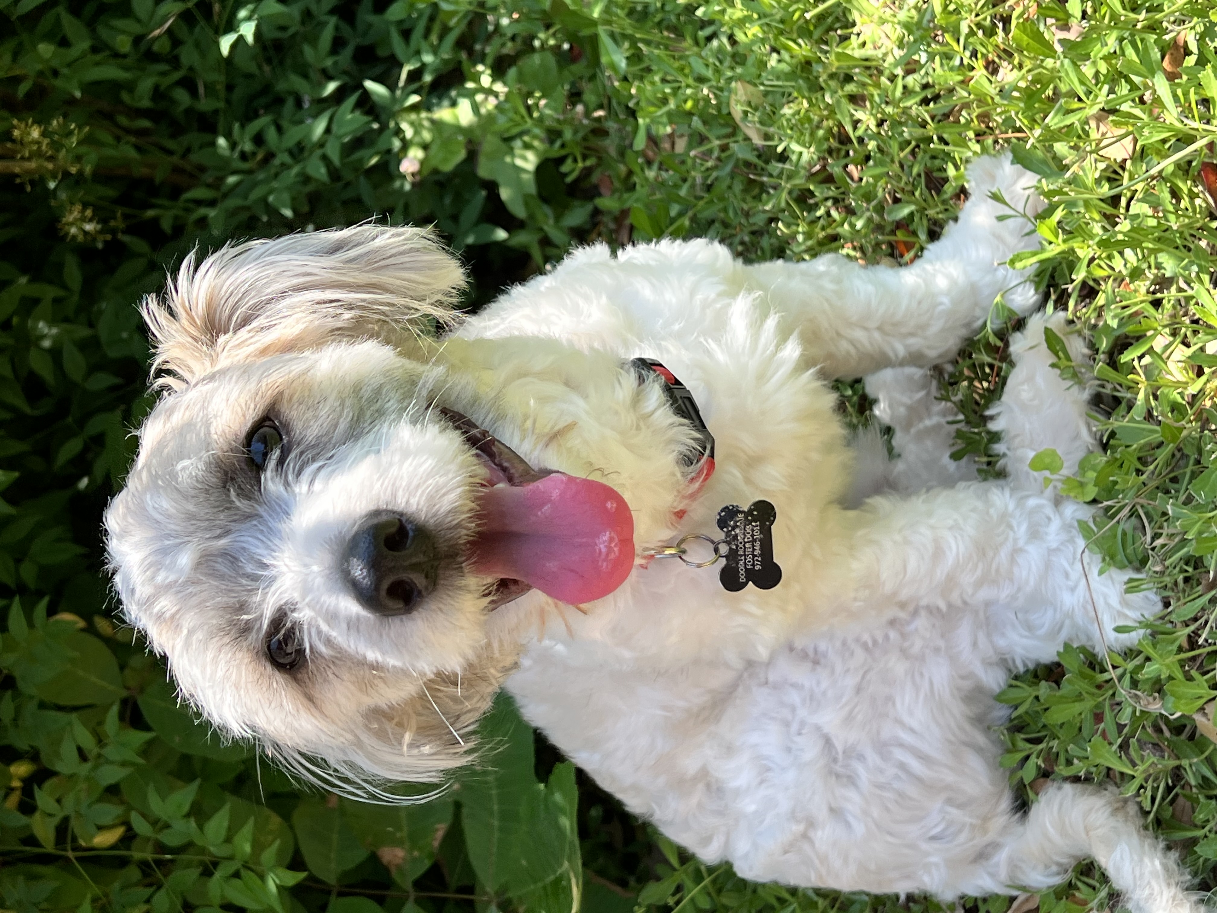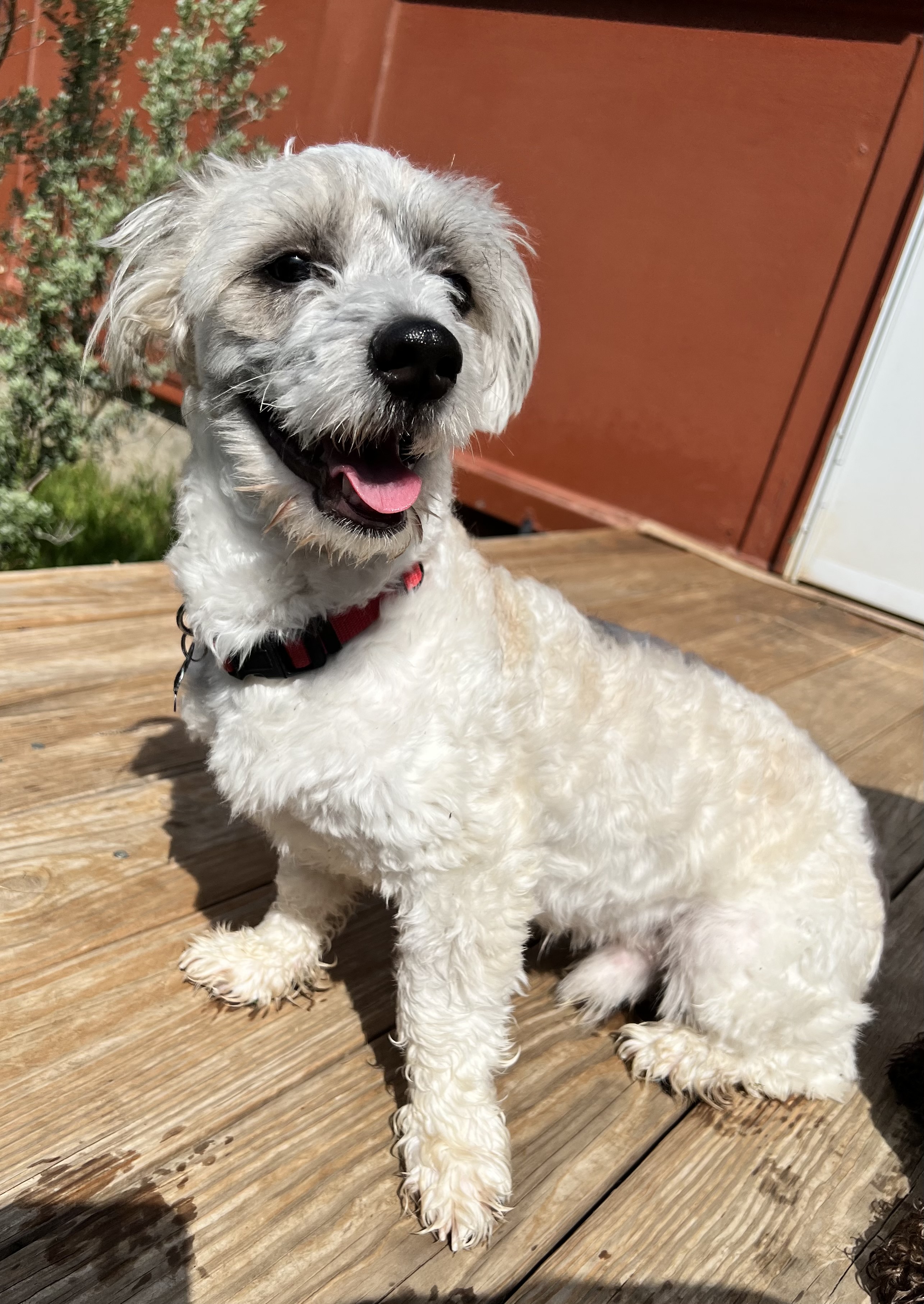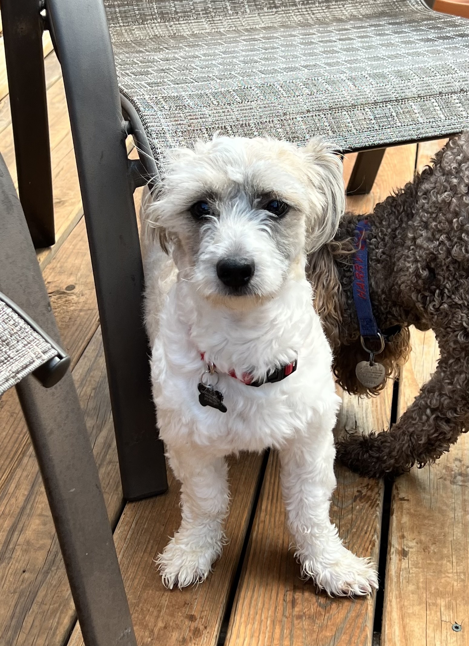 Hi, my name is Mortaimer! I'm am an 18-month-old, male Poodle Mix weighing in at 14lbs.