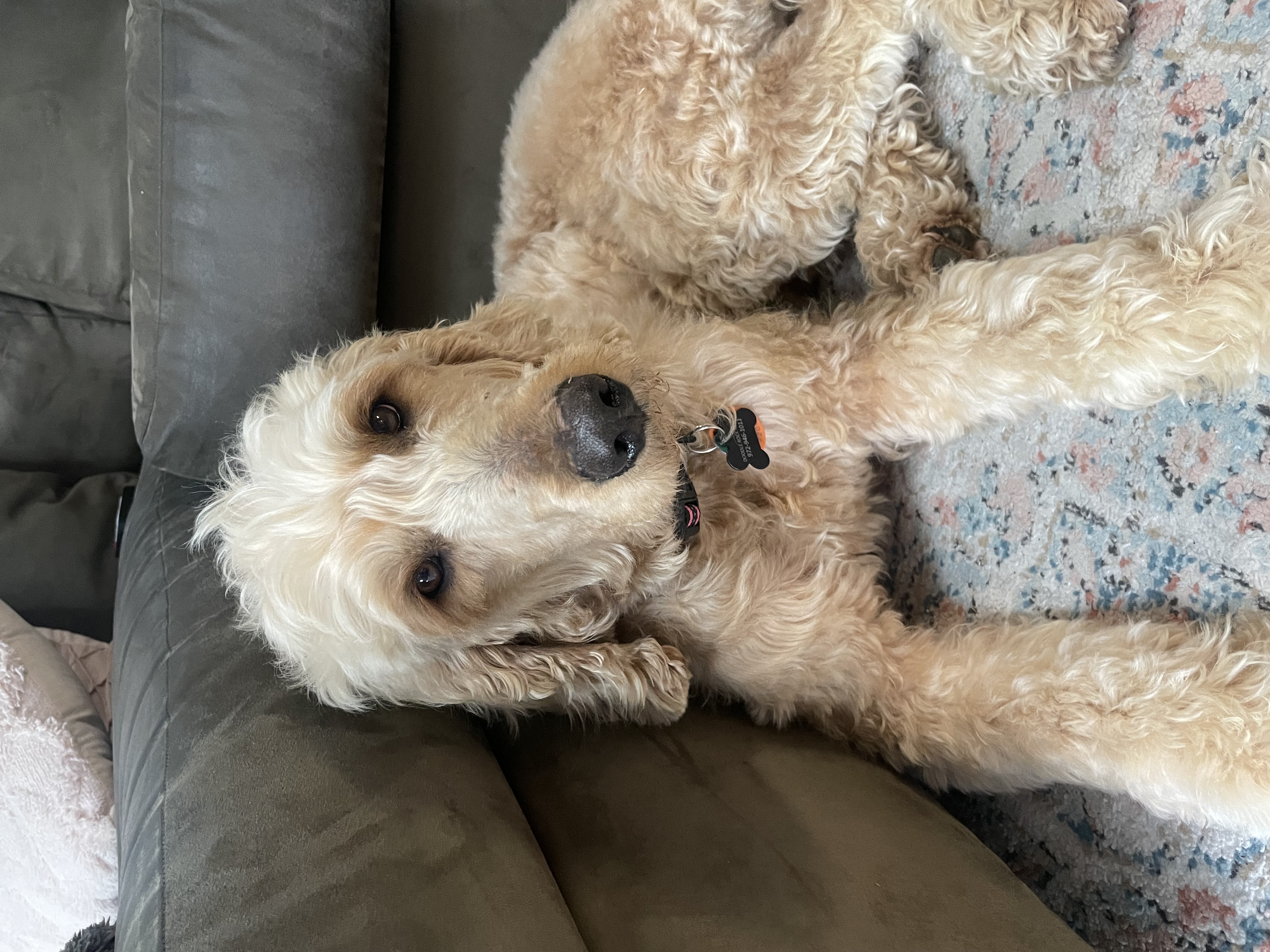 Hello friends! I’m Mozzarella, but my foster family calls me Belle, Bella, Bellie. I’m a Goldendoodle, female, about two years old, 49lbs and ready to find my fur-ever family!
