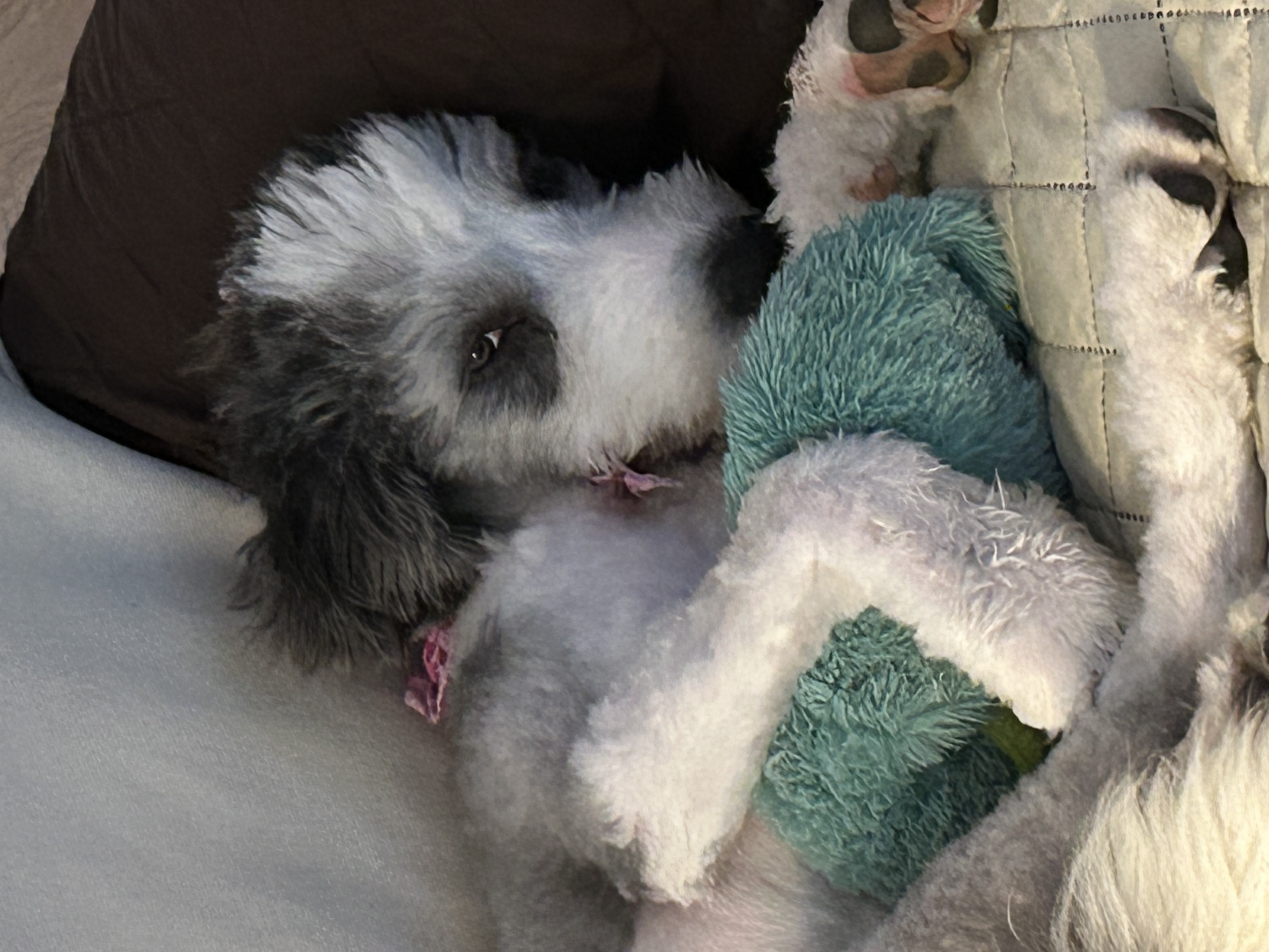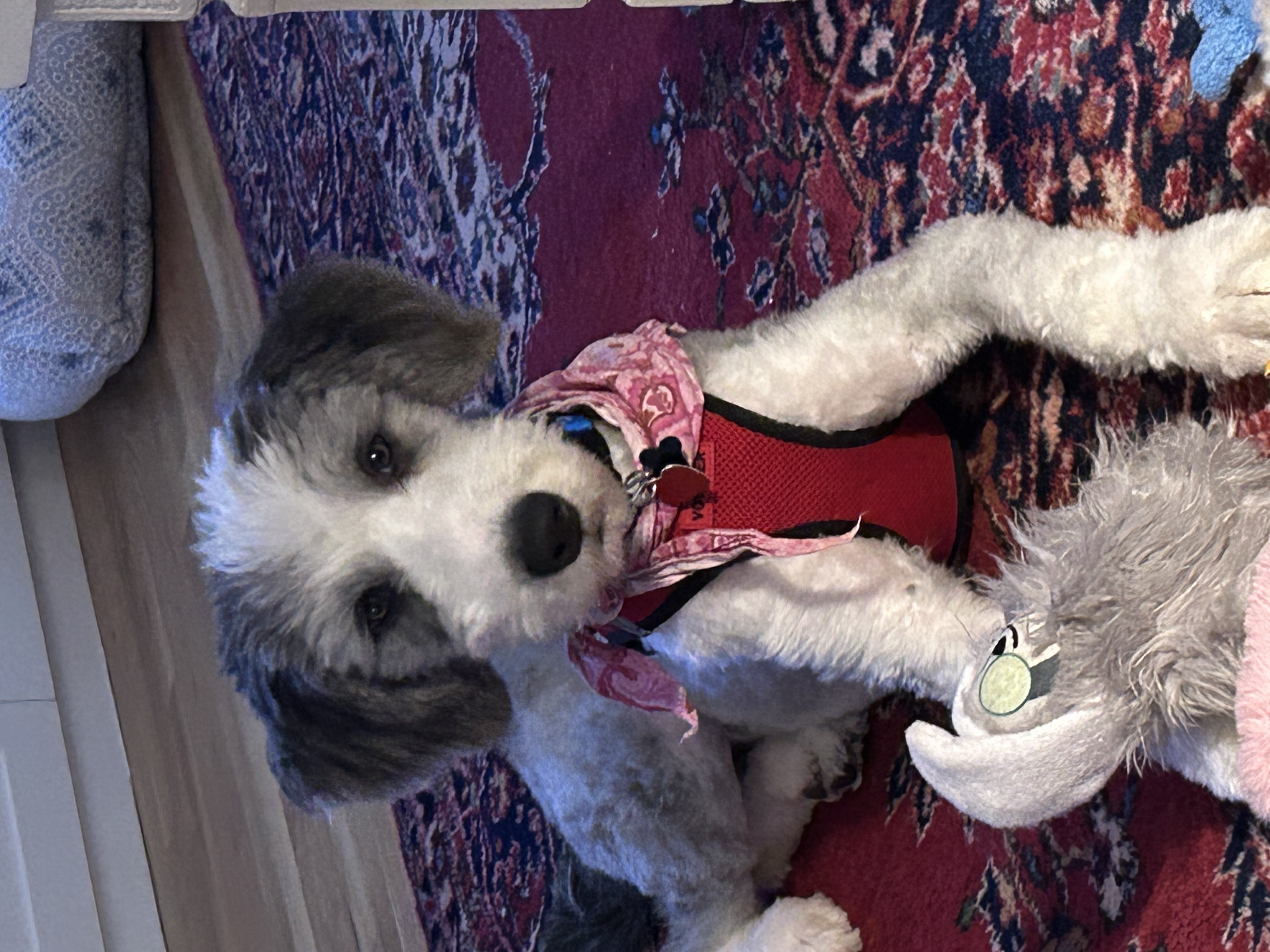 My Name is Mrs. Beauregard, affectionately know as BB or Boopers. I am an 11 month old Female Sheepadoodle. Weighing in at 40 lbs