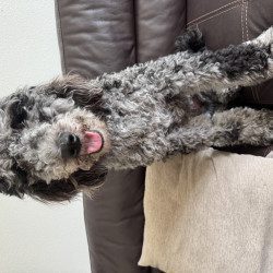 Hi!! I'm Mrs. Gloop, also known as Basil, a 9-month-old, 36 lb female labradoodle. I was dropped off by a breeder with my litter siblings, and I was in pretty rough shape. Right now, I'm a little more comfortable around dogs than humans, but I've slowly grown to love my foster parents! I'm so excited for a permanent home and a family.