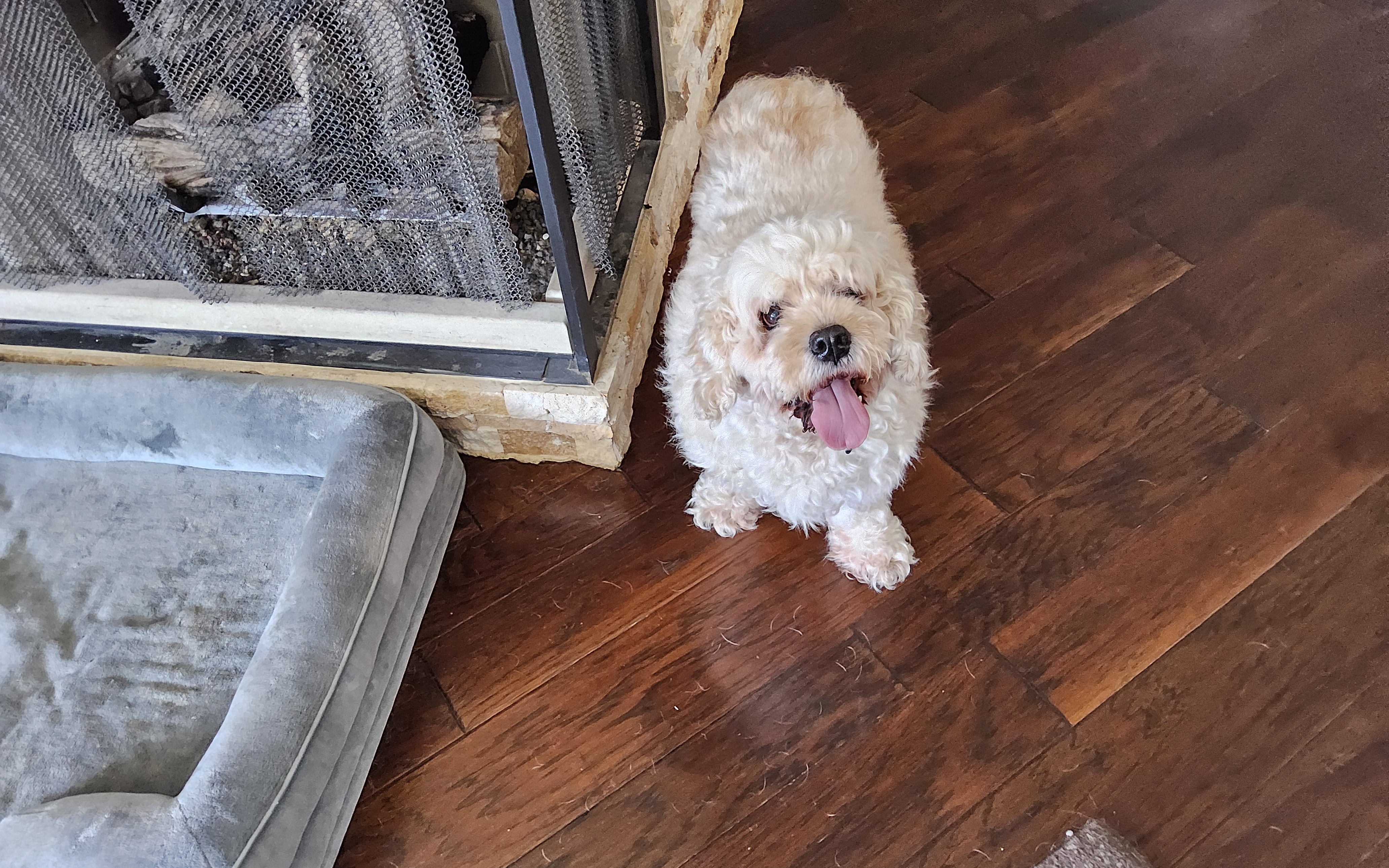 I’ve been told I’m a champion on the leash—I walk calmly right by your side and make every stroll a joy. At home, I settle easily into the routine: breakfast, outside time, a midday potty break, dinner, and another walk. I’ve never needed a crate here, but I’d likely do just fine with one if my new family wanted to use it.