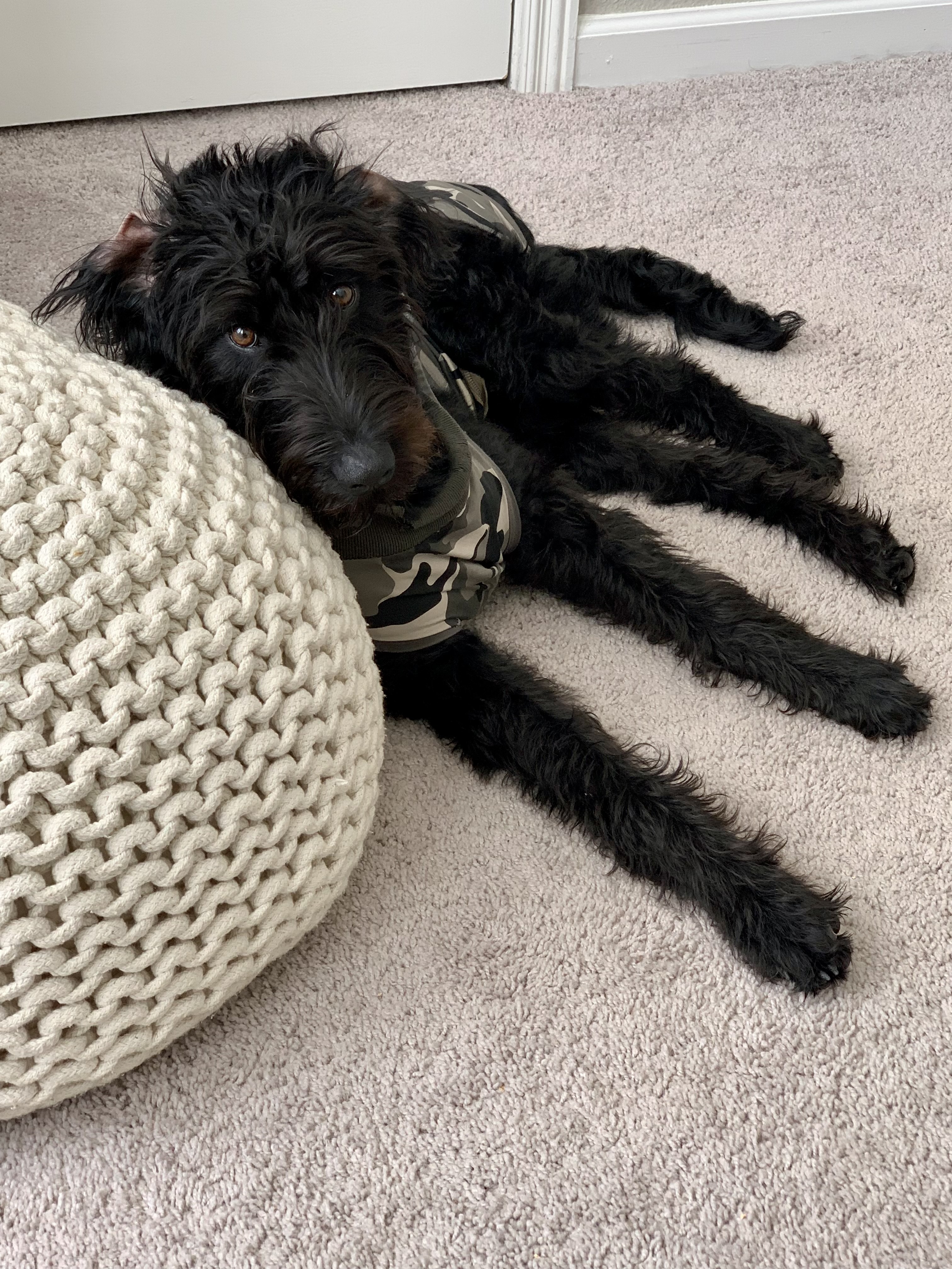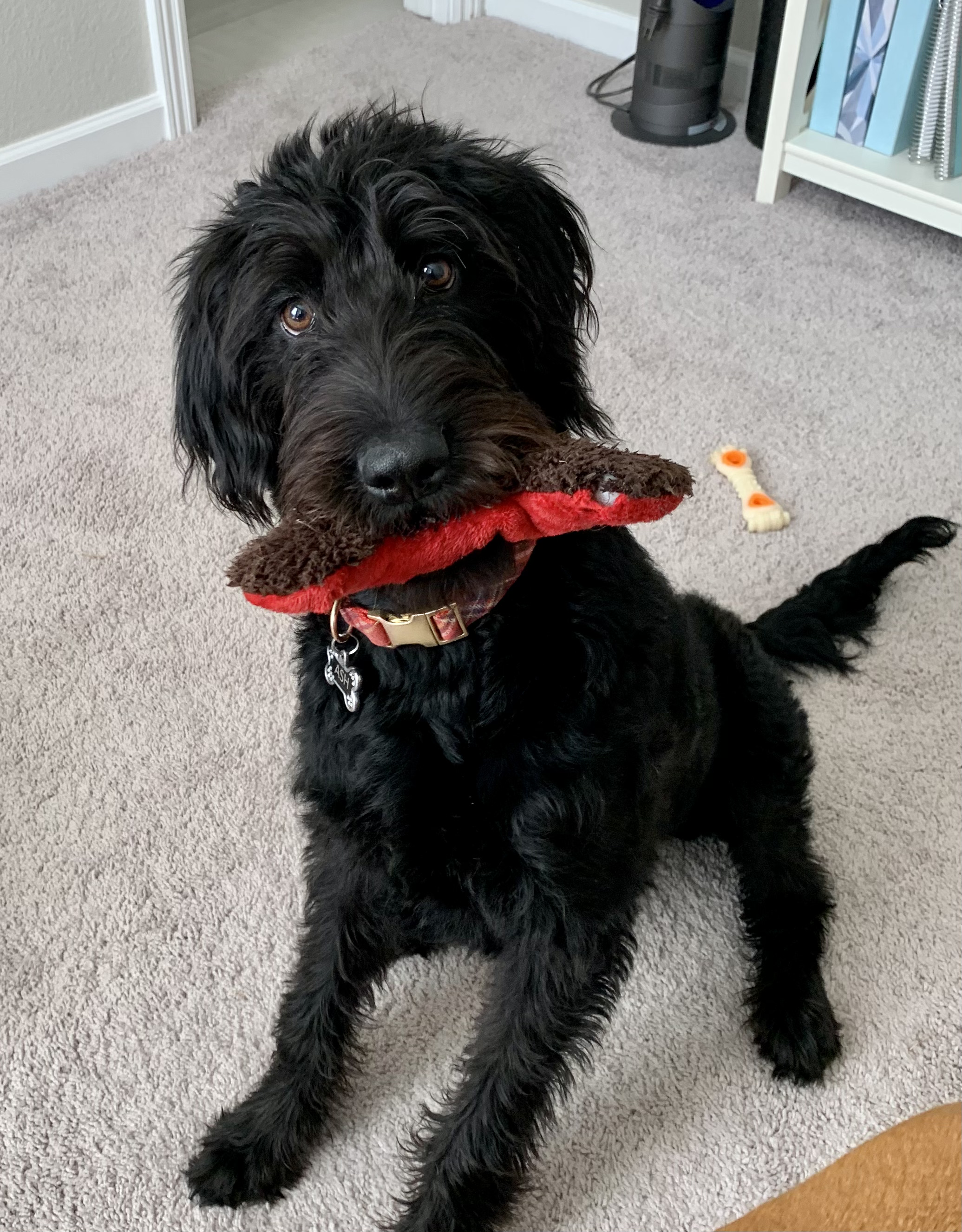 Hi I’m Nadia, a 7-month-old female Labradoodle and weigh over 55 lbs.