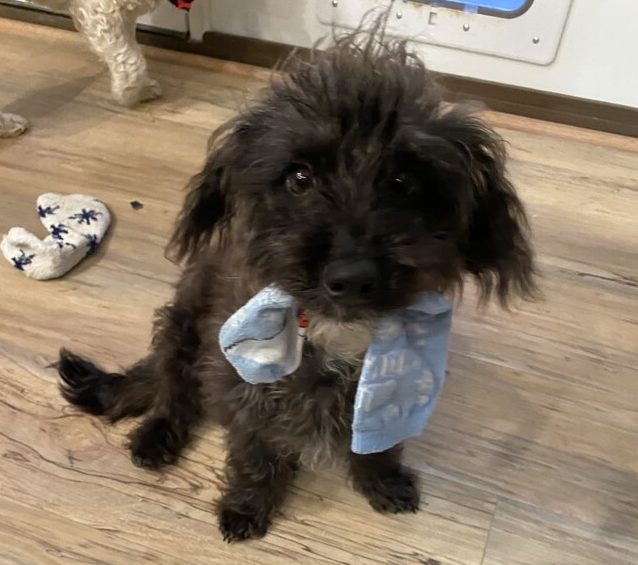 I'm pretty shy and tense up when people try to pick me up, so my forever family must be patient to let me acclimate. Once I’m comfortable, I’ll take all the snuggles and love you’ll give me - especially in your lap. I love socks, but don’t chew on them, I just like to show them off. I can be playful, yet super chill and just lounge with my human foster siblings. I do great with other dogs who are playful as long as they don’t have a dominant personality. I wouldn’t mind being the only fur baby either though - the more attention the better!