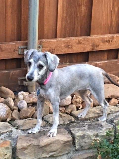 Hi, I’m Nikki a 1 year and 7 months old, 14-pound spunky poodle mix. My tail is always wagging because I am so excited and happy! I love to play and wrestle with my foster brother until I am ready for a nap. I am happy to nap in my crate, on the floor, or with you on the couch. Sometimes it takes me a while to warm up to new people but, once I know you I will love you furever. I love my people and love to be close with them. I am happy to follow you around while you work or hang out and keep an eye on you while you cook in the kitchen. If you play with me on the floor I will make sure you have lots of kisses. I am great on a leash and love to go for walks. I do like to say hello to people and pets while on a walk. I have found my voice and I am good at using it to communicate. The dog park is one of my favorite places to go! I am treat driven and already know how to sit. I would love a family to teach me lots of new tricks. I get so excited that I don’t sit for long but I know how to do it. I eat and sleep great. Once I go into my crate for the night I will protest a little and then fall asleep until I get to see you again in the morning. I am working on potty training but, every time I am let out I know to use the potty. I like to be let out often and then I can play outside with my foster brother. I love to protect my family. I would do great with a family with kids or another dog. An active family would be the best for me.