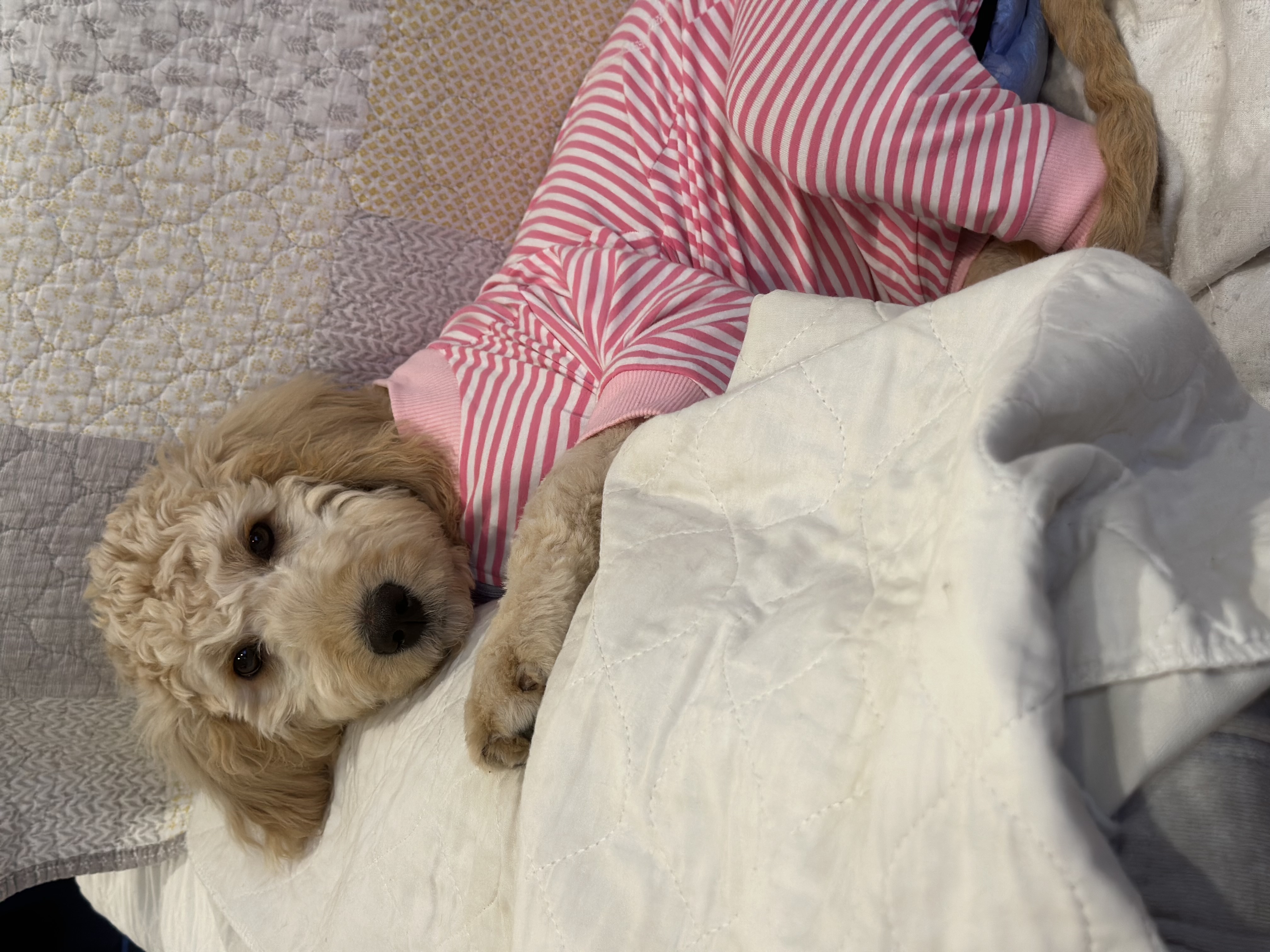 Life as a puppy is a joyous adventure for me. I'm all about playfulness and spreading happiness wherever I go. Whether it's interacting with fellow canines or humans, I thrive on companionship and cuddles. Speaking of cuddles, I'm a master snuggler and wouldn't mind becoming your designated "in your bed dog" if you're open to it. But hey, I'm flexible; sleeping on the floor works too! While I can tolerate a crate, being close to my humans is what truly makes me content.