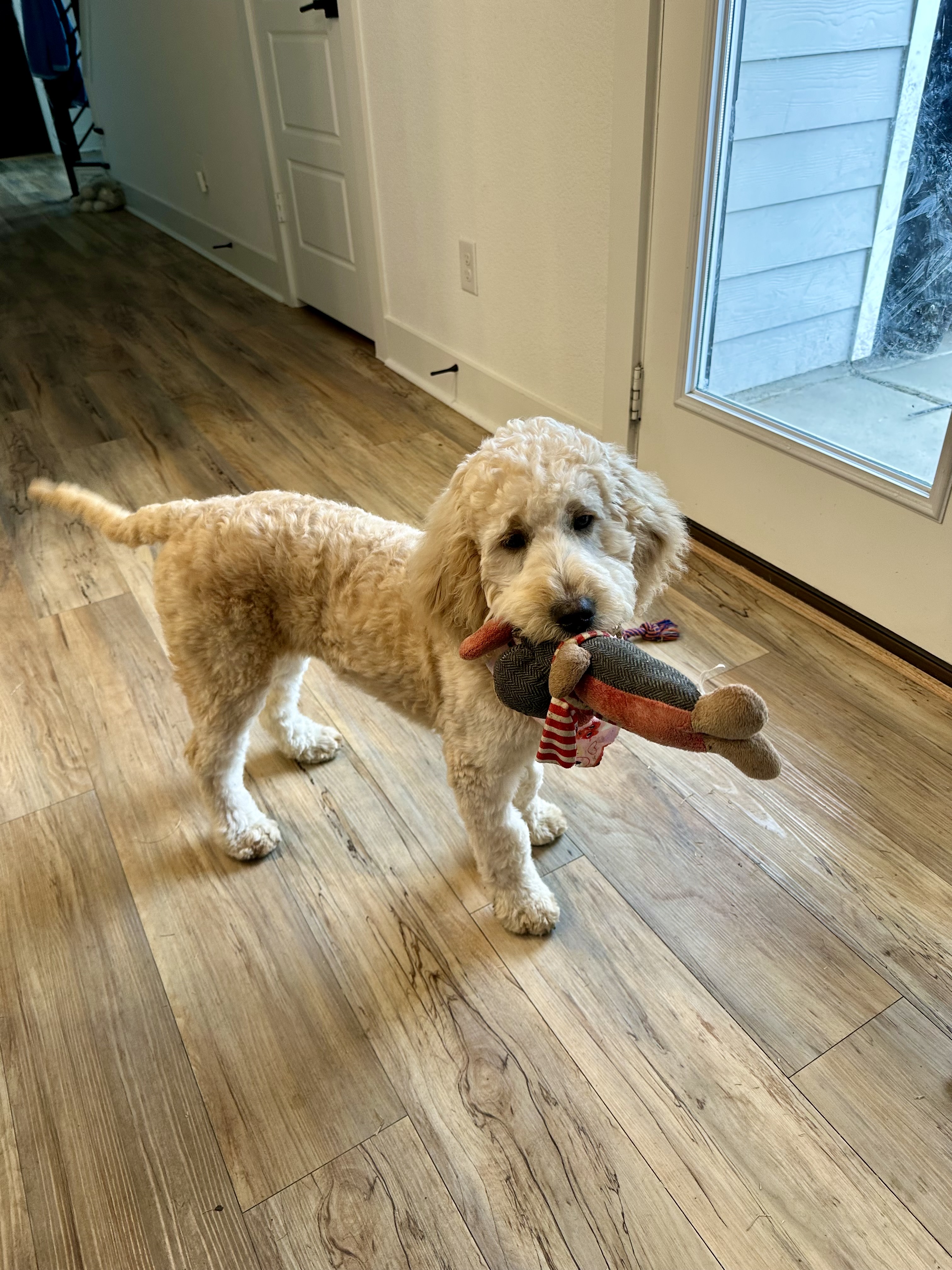 Hi there, I'm Noel, a spirited pup at 6 and a half months old, born on August 18, 2023. At this point, I weigh 26lbs and proudly identify as a Female Adoradoodle.